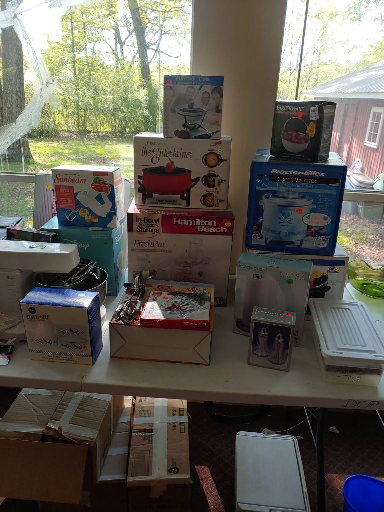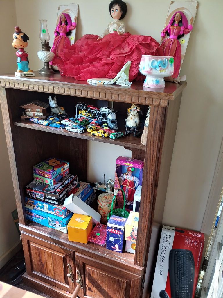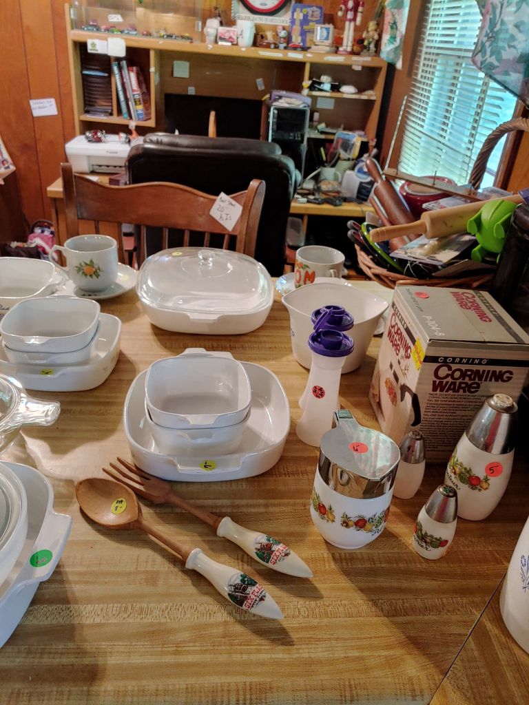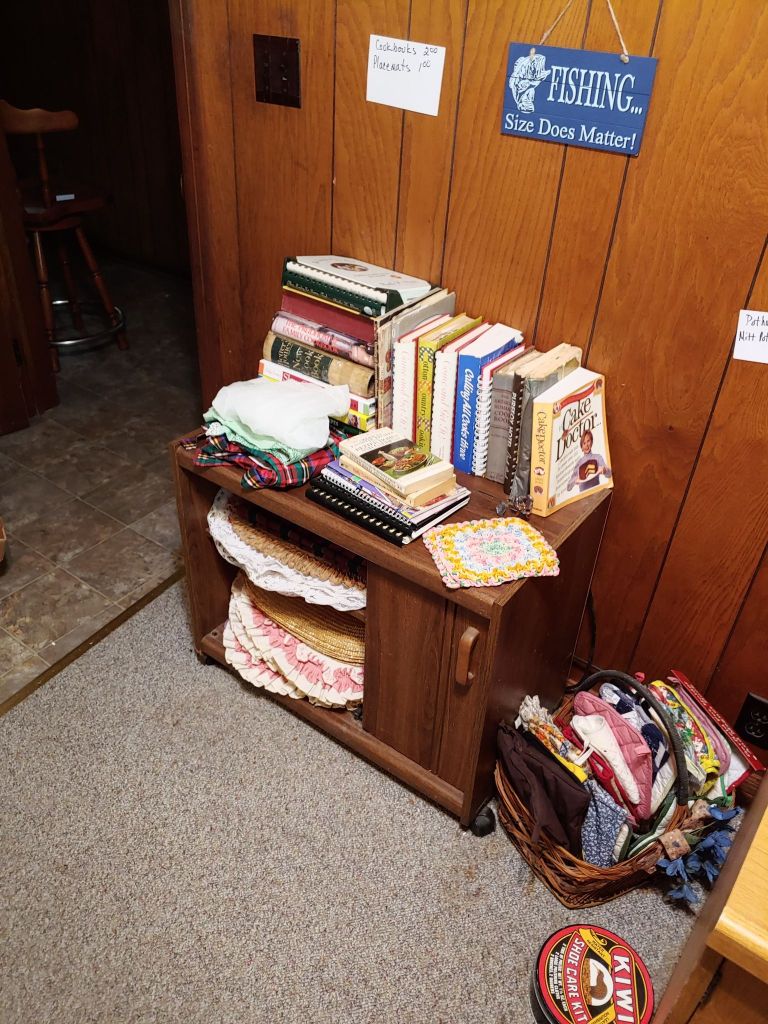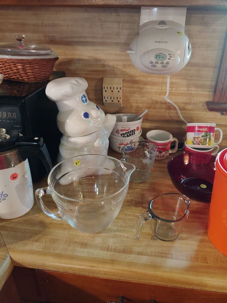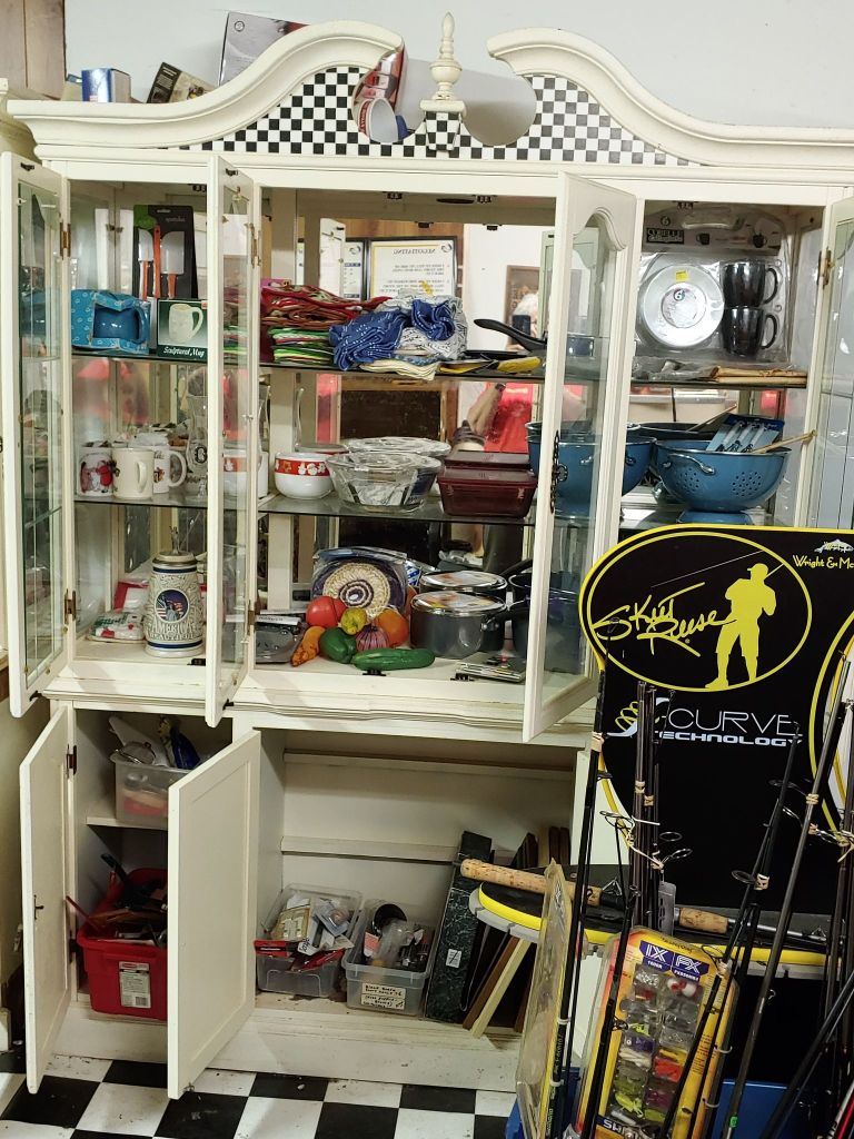 This sale has something for everyone….men come on you’ll love it too! Included will be…Sofa, Sofa Table, Lazyboy Recliner and another large Recliner, Several Curios…different styles, sizes and finishes, Early American Decor, Oak Table and 6 chairs, Oak China Cabinet, large collection of Pillsbury Doughboy, Cookbooks, Cast Iron, Pyrex, Corningware, new gadgets and utensils, vintage glassware, stocked kitchen, small black bench, Hummel figurines, Hummel small lamps(without shades), Queen Bedroom Suite, Small chaise, Large Raggedy Ann and Andy, Costume jewelry, several Jewelry Armoires, Men’s and Womens clothing, quilts, linens, Beanie Babies, Disney, Barbies, Pooh Bear and other toys, Sewing Machine, King Bed and mattress, Maple chest and dresser, assortment of different chests, Bar Stools, Washer, Dryer, Large Glass Top Dining Table, 4 patio chairs and matching glider, nice storage Hutch, Huge assortment of Fishing Equipment including rods, reels, lures and tackle and tackleboxes, Nascar, Storage and Display cabinets of assorted sizes, 3 white China/storage cabinets, all kind of tools, hand tools, garage tools, grinder, vice, set of 17 in Toyota rims that were new in the box, Auger Jiffy 30, blowers, weedeaters, Craftsman Radial Arm saw, table saw, air compressor and commercial router/planer and Belt and Disc Sander, Circular saws, many old hand saws Ryobi 10 in Drill Press, Makita Reciprocating Saw, and lots of other tools, small freezer and so much more! Don’t miss this one. See our website for pictures. Make plans to come and see us!