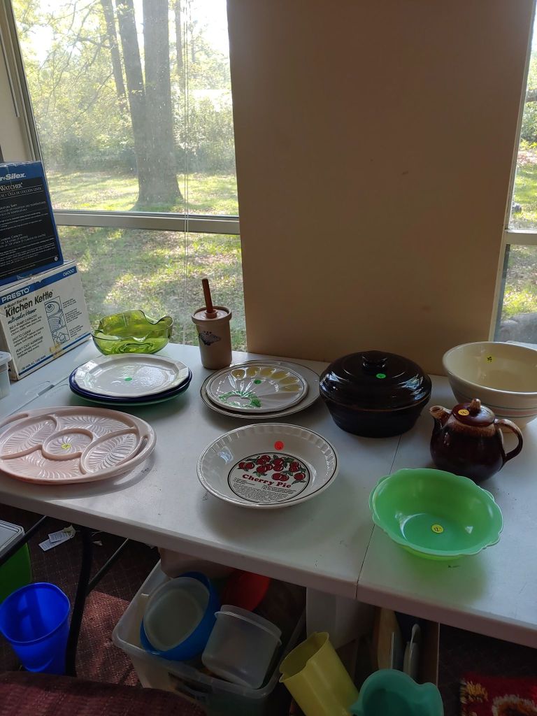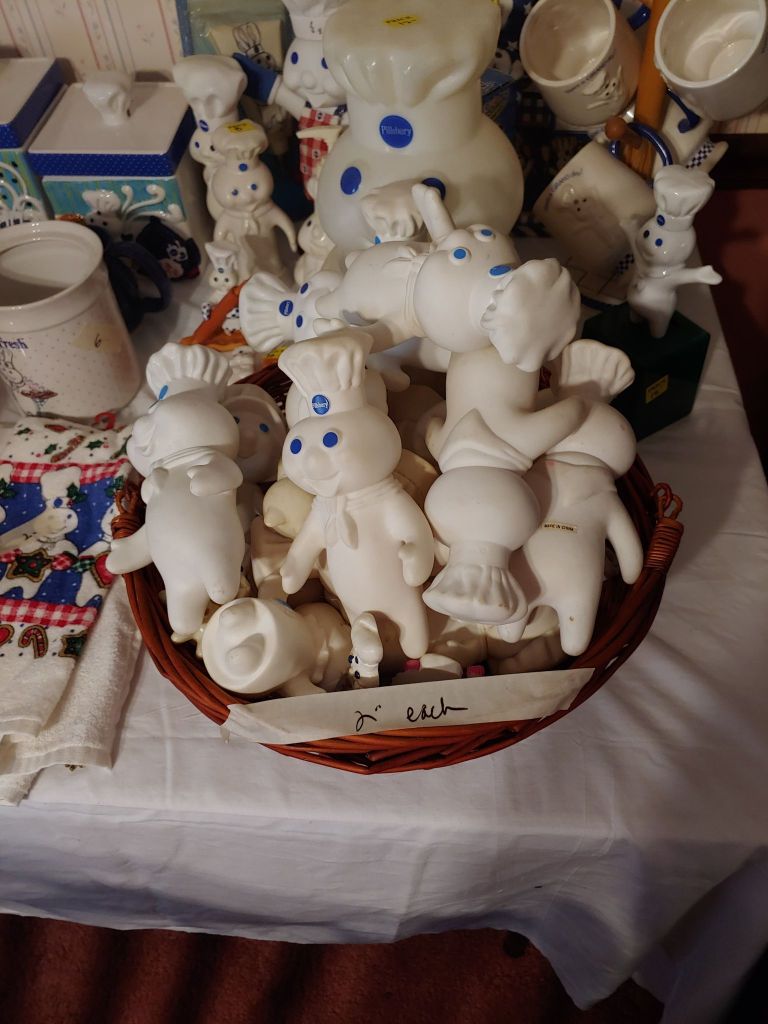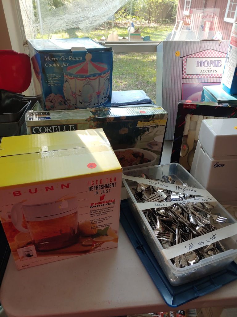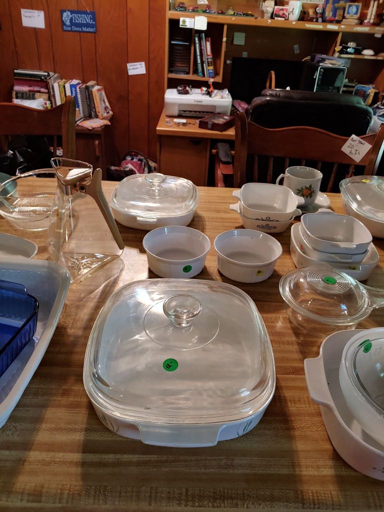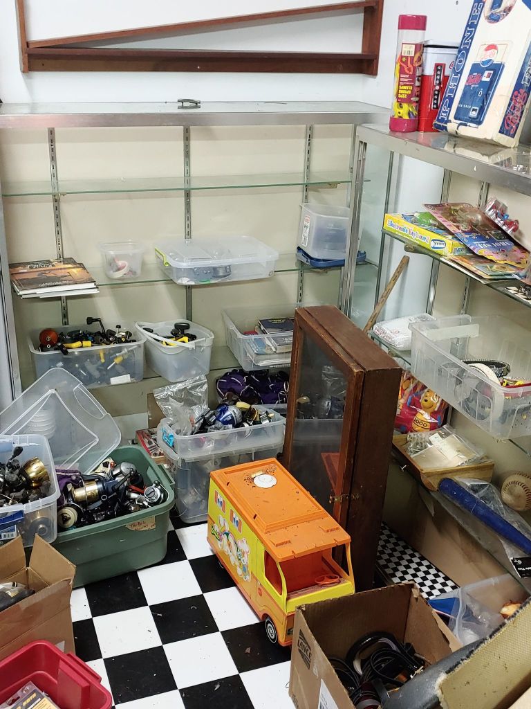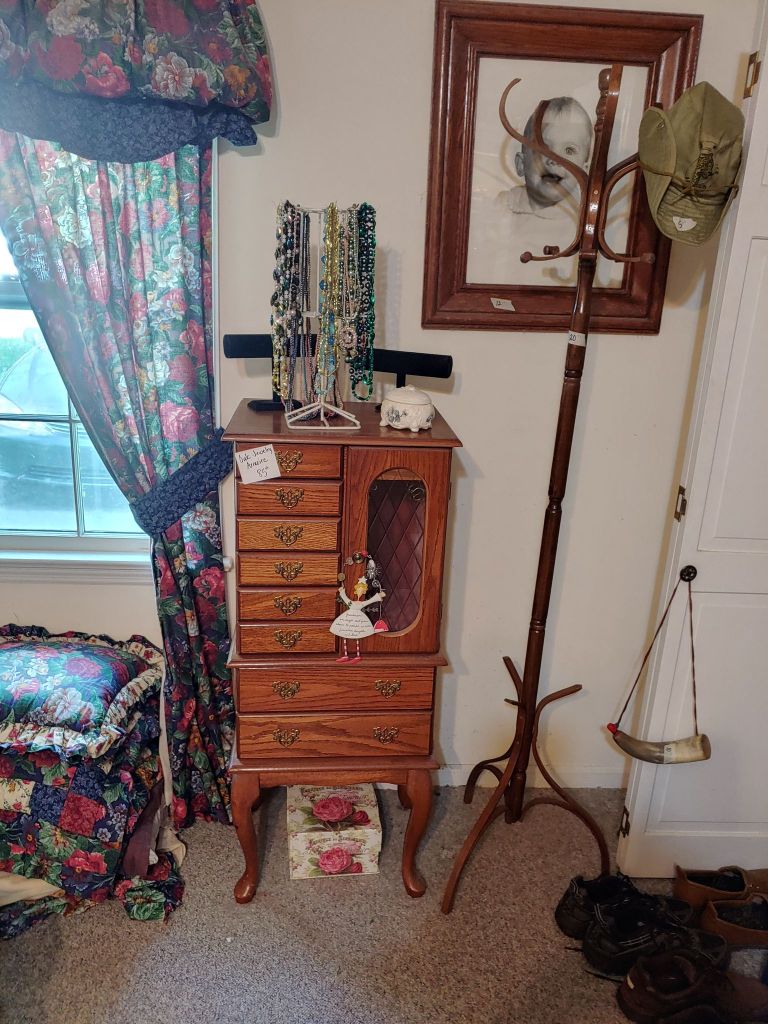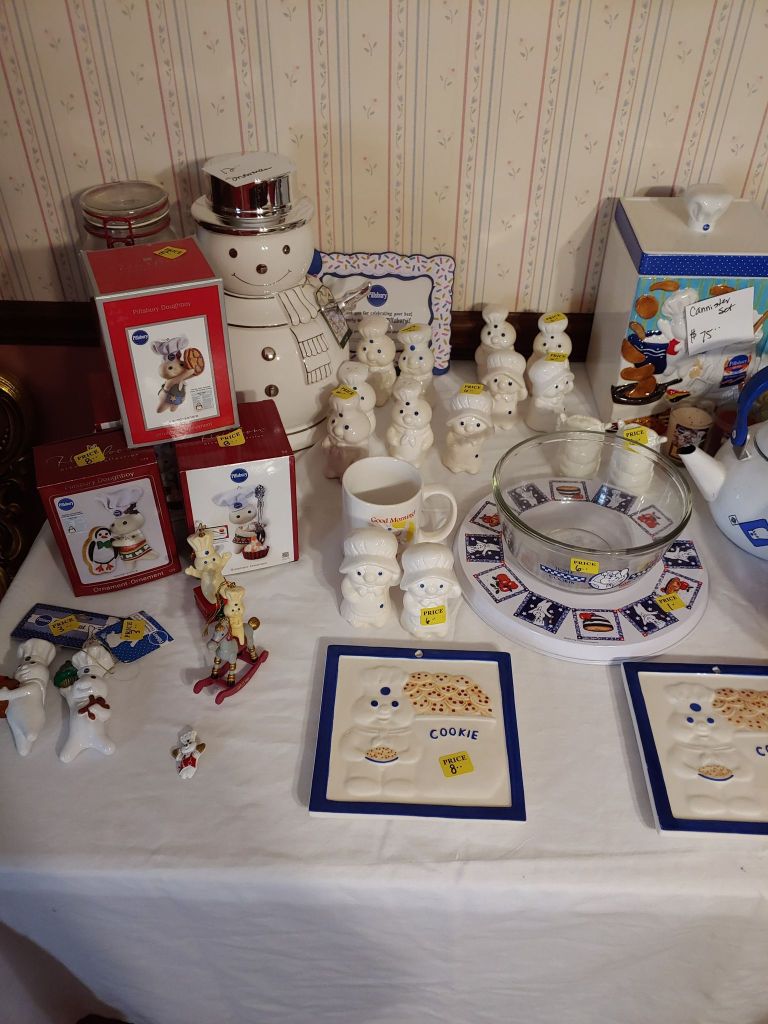 This sale has something for everyone….men come on you’ll love it too! Included will be…Sofa, Sofa Table, Lazyboy Recliner and another large Recliner, Several Curios…different styles, sizes and finishes, Early American Decor, Oak Table and 6 chairs, Oak China Cabinet, large collection of Pillsbury Doughboy, Cookbooks, Cast Iron, Pyrex, Corningware, new gadgets and utensils, vintage glassware, stocked kitchen, small black bench, Hummel figurines, Hummel small lamps(without shades), Queen Bedroom Suite, Small chaise, Large Raggedy Ann and Andy, Costume jewelry, several Jewelry Armoires, Men’s and Womens clothing, quilts, linens, Beanie Babies, Disney, Barbies, Pooh Bear and other toys, Sewing Machine, King Bed and mattress, Maple chest and dresser, assortment of different chests, Bar Stools, Washer, Dryer, Large Glass Top Dining Table, 4 patio chairs and matching glider, nice storage Hutch, Huge assortment of Fishing Equipment including rods, reels, lures and tackle and tackleboxes, Nascar, Storage and Display cabinets of assorted sizes, 3 white China/storage cabinets, all kind of tools, hand tools, garage tools, grinder, vice, set of 17 in Toyota rims that were new in the box, Auger Jiffy 30, blowers, weedeaters, Craftsman Radial Arm saw, table saw, air compressor and commercial router/planer and Belt and Disc Sander, Circular saws, many old hand saws Ryobi 10 in Drill Press, Makita Reciprocating Saw, and lots of other tools, small freezer and so much more! Don’t miss this one. See our website for pictures. Make plans to come and see us!