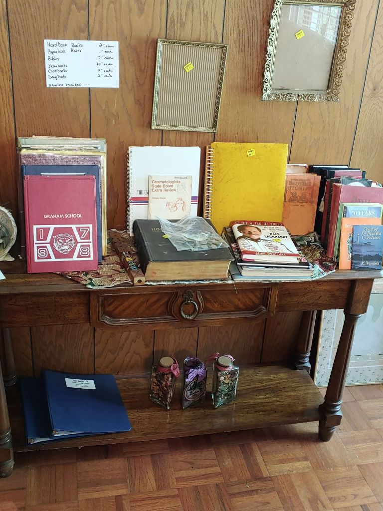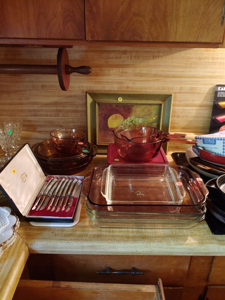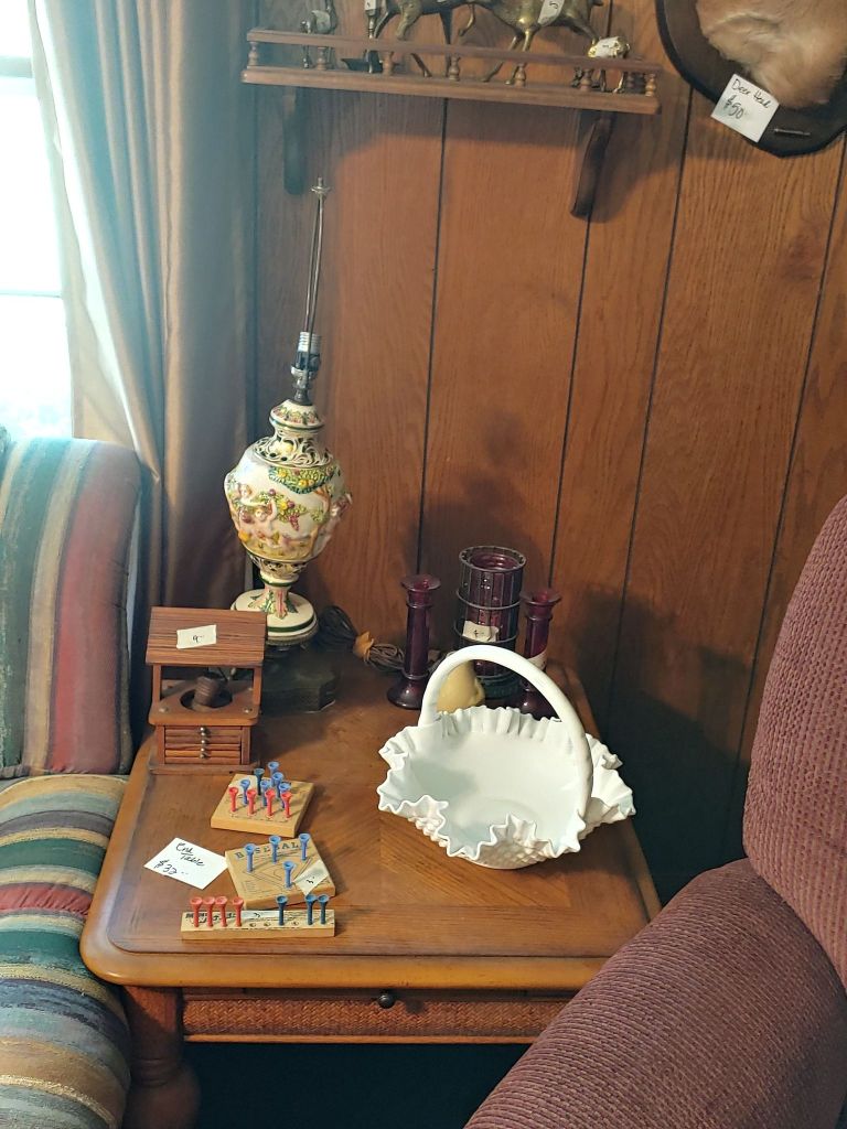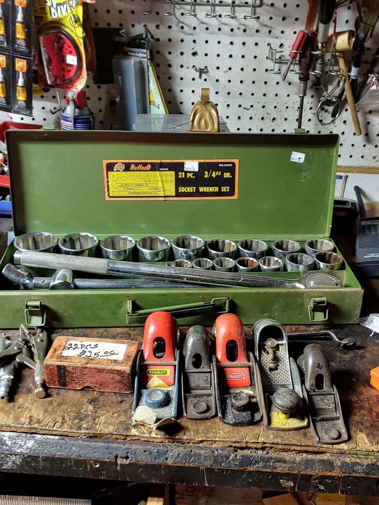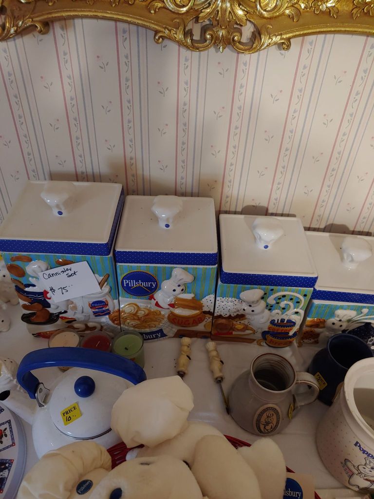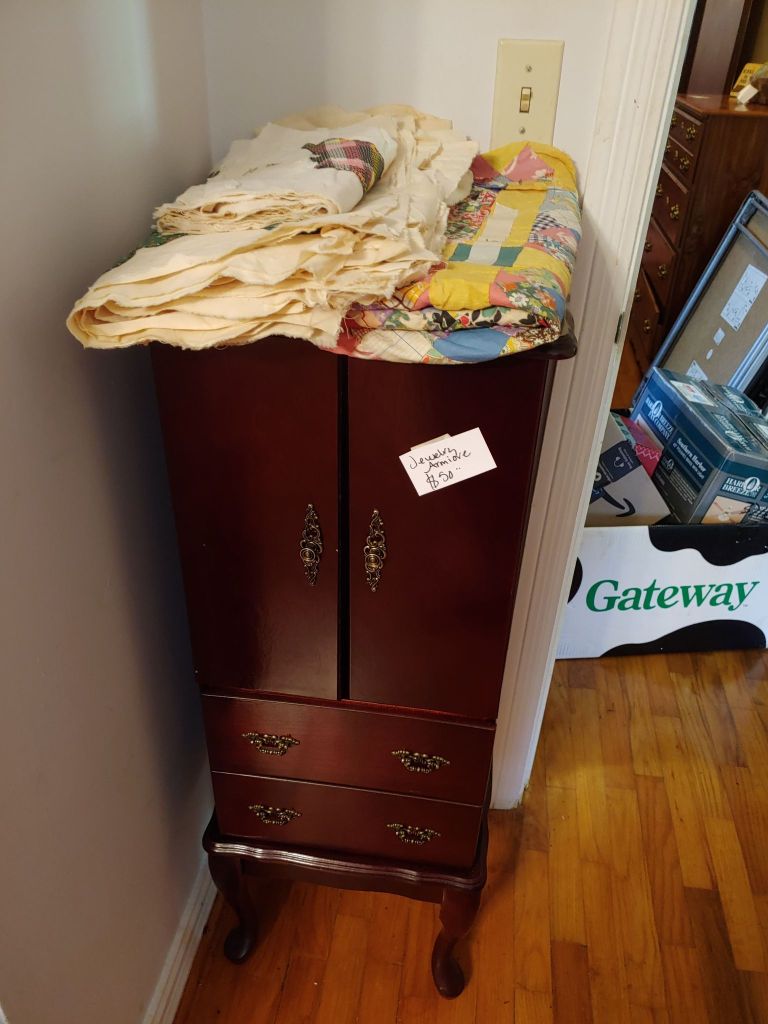 This sale has something for everyone….men come on you’ll love it too! Included will be…Sofa, Sofa Table, Lazyboy Recliner and another large Recliner, Several Curios…different styles, sizes and finishes, Early American Decor, Oak Table and 6 chairs, Oak China Cabinet, large collection of Pillsbury Doughboy, Cookbooks, Cast Iron, Pyrex, Corningware, new gadgets and utensils, vintage glassware, stocked kitchen, small black bench, Hummel figurines, Hummel small lamps(without shades), Queen Bedroom Suite, Small chaise, Large Raggedy Ann and Andy, Costume jewelry, several Jewelry Armoires, Men’s and Womens clothing, quilts, linens, Beanie Babies, Disney, Barbies, Pooh Bear and other toys, Sewing Machine, King Bed and mattress, Maple chest and dresser, assortment of different chests, Bar Stools, Washer, Dryer, Large Glass Top Dining Table, 4 patio chairs and matching glider, nice storage Hutch, Huge assortment of Fishing Equipment including rods, reels, lures and tackle and tackleboxes, Nascar, Storage and Display cabinets of assorted sizes, 3 white China/storage cabinets, all kind of tools, hand tools, garage tools, grinder, vice, set of 17 in Toyota rims that were new in the box, Auger Jiffy 30, blowers, weedeaters, Craftsman Radial Arm saw, table saw, air compressor and commercial router/planer and Belt and Disc Sander, Circular saws, many old hand saws Ryobi 10 in Drill Press, Makita Reciprocating Saw, and lots of other tools, small freezer and so much more! Don’t miss this one. See our website for pictures. Make plans to come and see us!