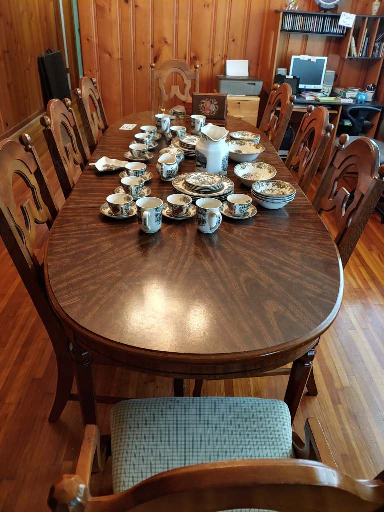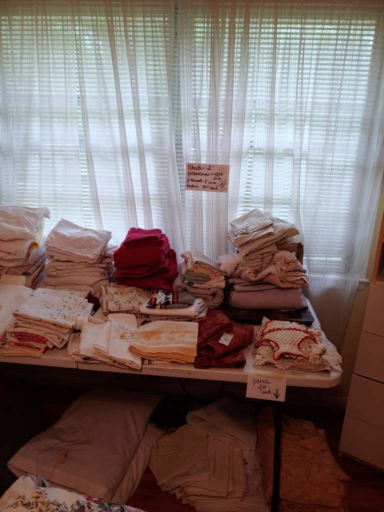 Contents of a spotless home including, Loveseat, Pride (almost new) Lift Chair, Lazyboy recliner and several other assorted chairs, Maple Table and 6 chairs with matching China cabinet, Large Dining Table and chairs with matching China cabinet (dark in color), Zenith console stereo, Desk/chest, Computer Desk, filing cabinets, Linens, quilts, Assorted chests and dressers and lamps throughout the house, Full Size Mattress set and frame, old Black Singer Sewing Machine, Cedar Chest, Full Size bed and frame, Small white Vanity, white 2 door chest, stocked kitchen, cast iron, small appliances, microwave, good cookware, Maytag Bravos Washer, Maytag Dryer, Upright Black Kurtzman Piano, Dorm Fridge, Yard tools, weedeater and blower, wheelbarrow, ladders, medical equipment, Christmas and more! Come see us!