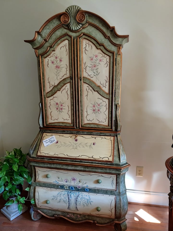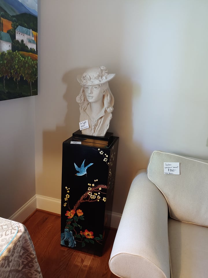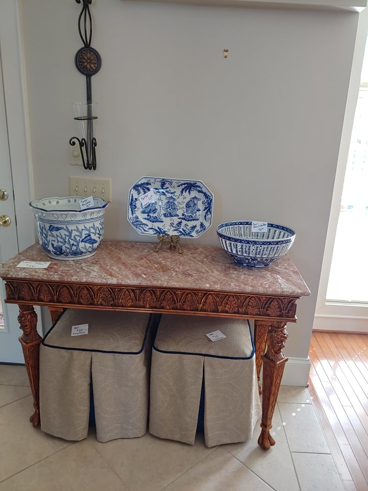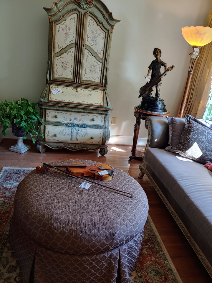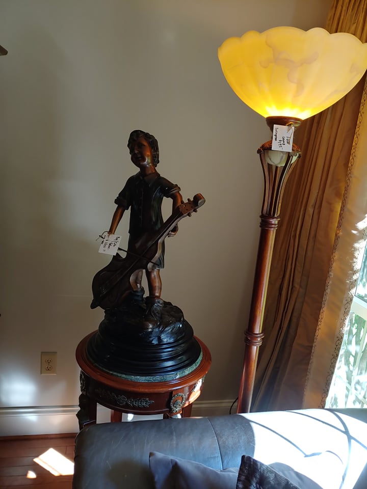 Bent Tree Farm, a French Manor home, contains beautiful furnishings and a mixture of traditional and antique pieces with a flair of the homeowners artistic talent. You will find: matching Thomasville leather/upholstery sofas, matching leather benches, many beautiful lamps, floor lamps, painted chests, rugs(Harchow and others), round table and 6 chairs, 2 oversize ottomans, large collection of Blue/White, 2 matching French marble top sofa tables, matching upholstered stools, stocked kitchen, bar stools, nice indoor/outdoor wicker sofas, chairs and table and 4 chairs, Cuisinart Gas Grill, Cast iron urns and benches, Savannah Girl and St. Francis Garden Statues and other garden pieces, one of a kind server with attached stain glass from Sussex, French gray leather/upholstery sofa by Schnadig, French country painted secretary, French arm chair, Violin, Waterford, Norwegian Art Glass by Hadeland, French rolled arm bench, upholstered settee, large Bronze on Marble Boy with Cello statue, 2 matching rocking/reclining loveseats, 4 matching leather bottom glider rockers, leather recliner, western movie posters such as John Wayne and Clint Eastwood, Large Remington Mountain Man statue, new Structures adjustable King Mattress and Base, several chaise lounge chairs, Flatscreen TVs, Loveseat, King Bedroom furniture, Q Wicker Bedroom Suite, Singer Sewing machine, Kenmore small freezer, small appliances, Christmas and seasonal decor, leather chair and ottoman, clothes, shoes, purses, oriental chest, large Armoire, art work by local artists, garage items, easels and so much more! Don’t miss this one!!