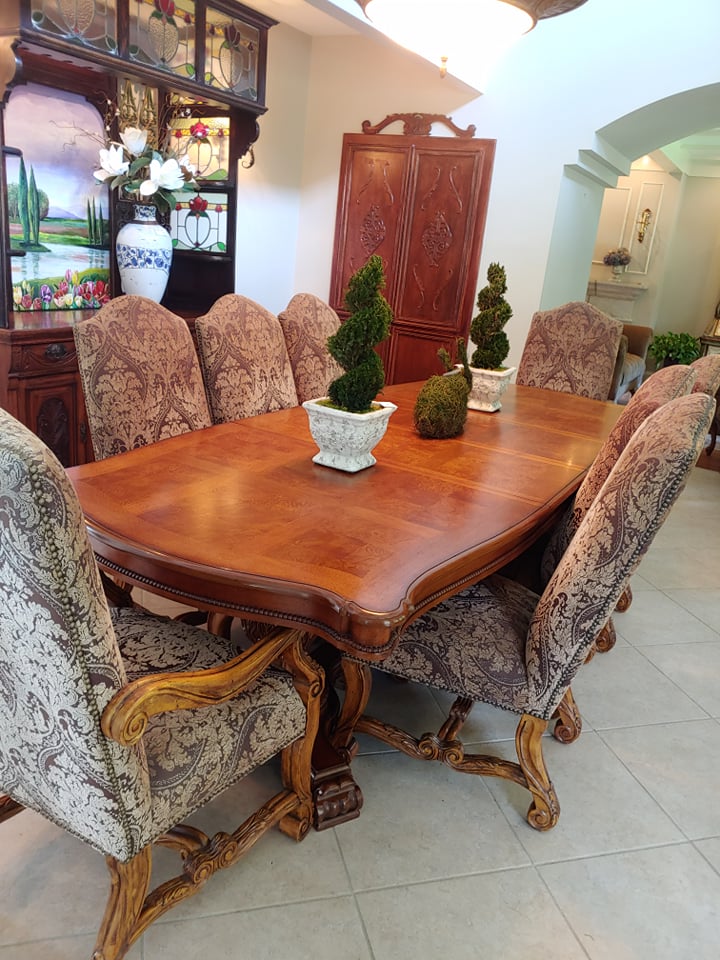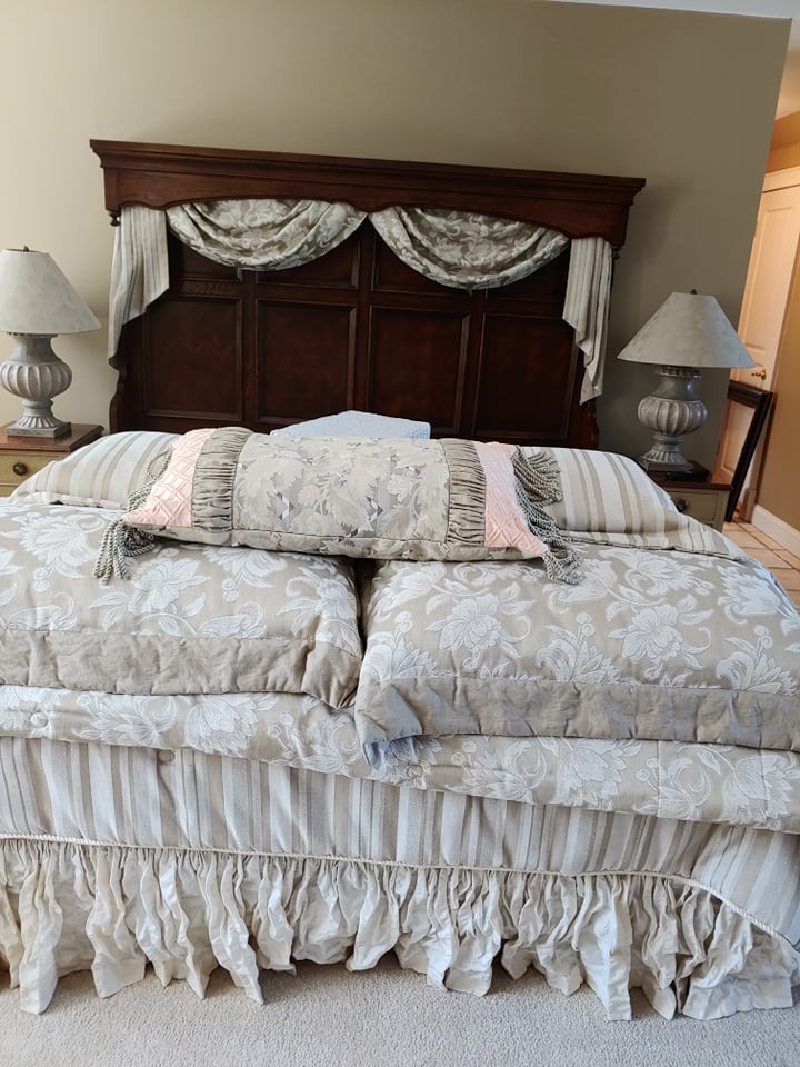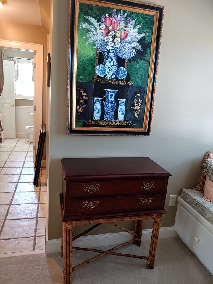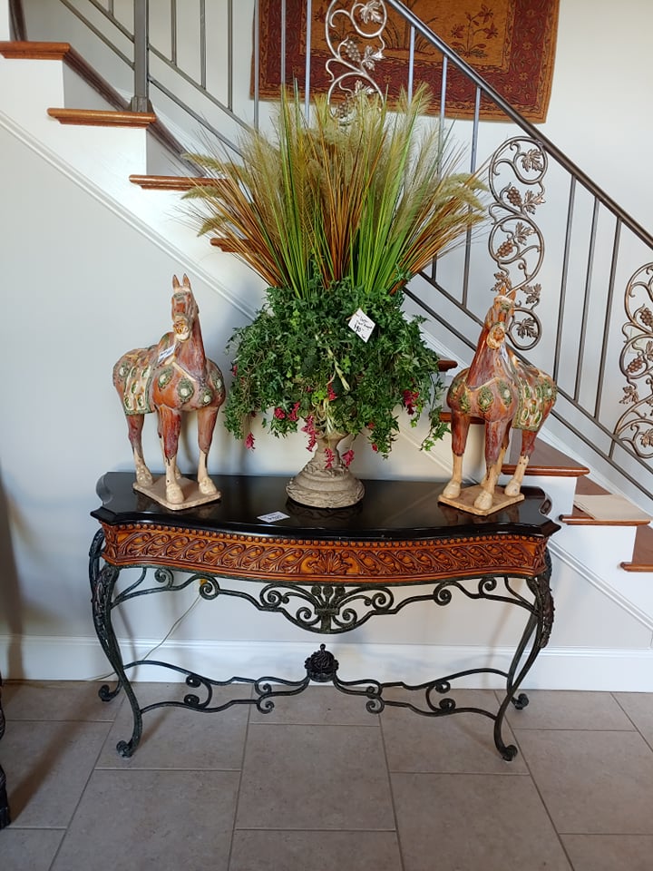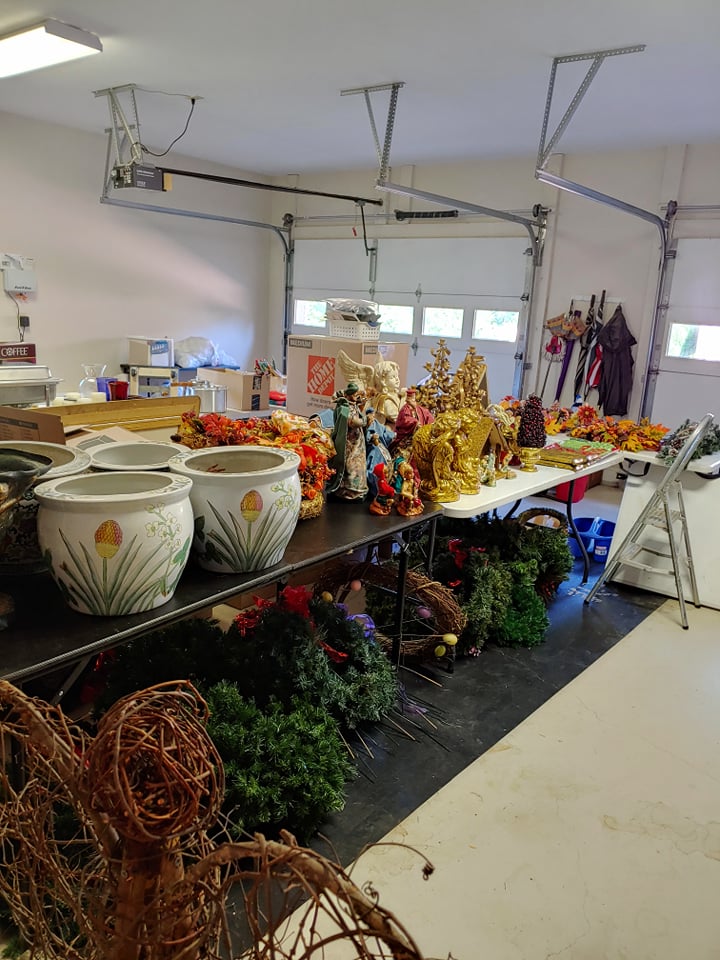 Bent Tree Farm, a French Manor home, contains beautiful furnishings and a mixture of traditional and antique pieces with a flair of the homeowners artistic talent. You will find: matching Thomasville leather/upholstery sofas, matching leather benches, many beautiful lamps, floor lamps, painted chests, rugs(Harchow and others), round table and 6 chairs, 2 oversize ottomans, large collection of Blue/White, 2 matching French marble top sofa tables, matching upholstered stools, stocked kitchen, bar stools, nice indoor/outdoor wicker sofas, chairs and table and 4 chairs, Cuisinart Gas Grill, Cast iron urns and benches, Savannah Girl and St. Francis Garden Statues and other garden pieces, one of a kind server with attached stain glass from Sussex, French gray leather/upholstery sofa by Schnadig, French country painted secretary, French arm chair, Violin, Waterford, Norwegian Art Glass by Hadeland, French rolled arm bench, upholstered settee, large Bronze on Marble Boy with Cello statue, 2 matching rocking/reclining loveseats, 4 matching leather bottom glider rockers, leather recliner, western movie posters such as John Wayne and Clint Eastwood, Large Remington Mountain Man statue, new Structures adjustable King Mattress and Base, several chaise lounge chairs, Flatscreen TVs, Loveseat, King Bedroom furniture, Q Wicker Bedroom Suite, Singer Sewing machine, Kenmore small freezer, small appliances, Christmas and seasonal decor, leather chair and ottoman, clothes, shoes, purses, oriental chest, large Armoire, art work by local artists, garage items, easels and so much more! Don’t miss this one!!