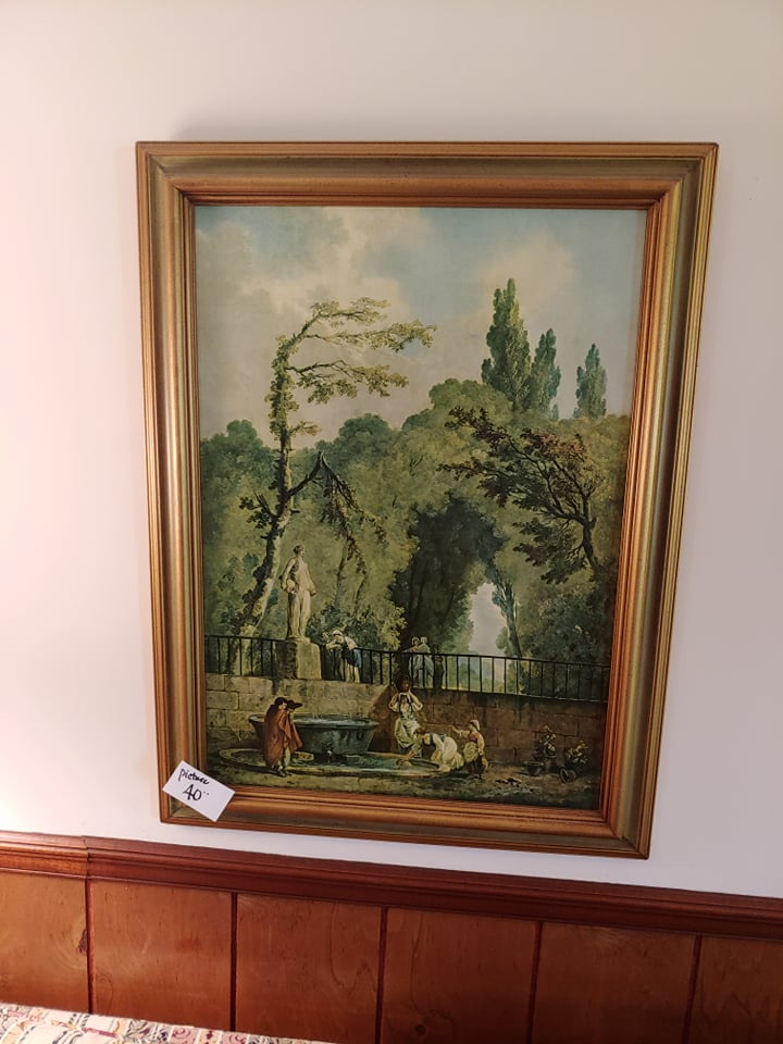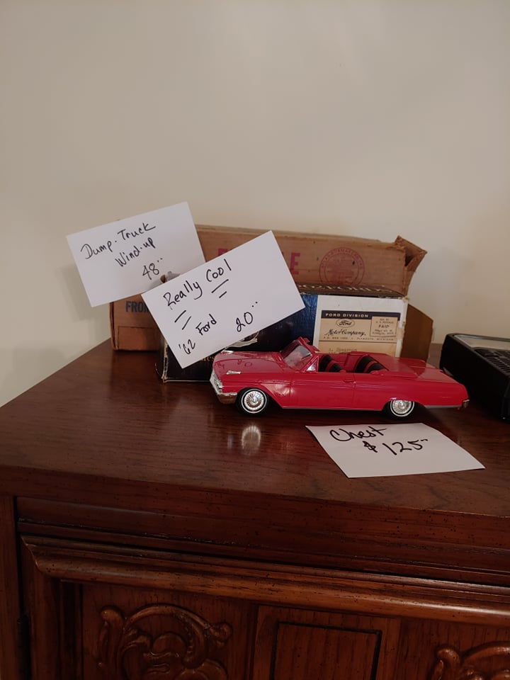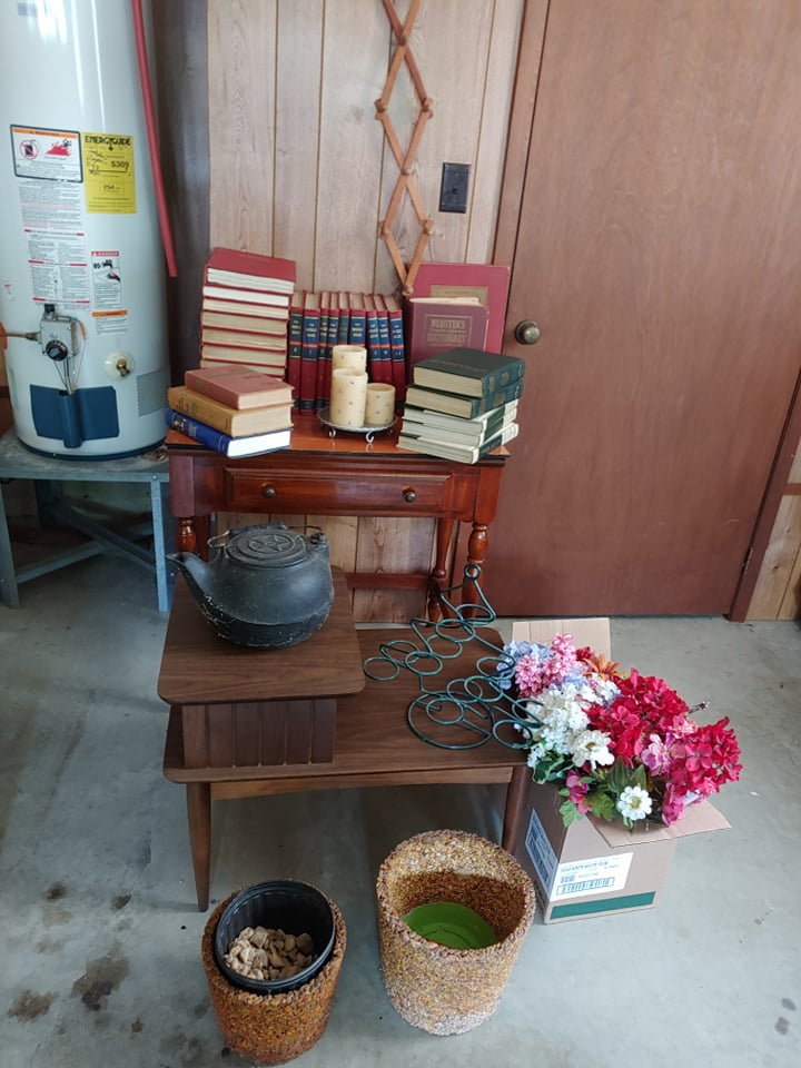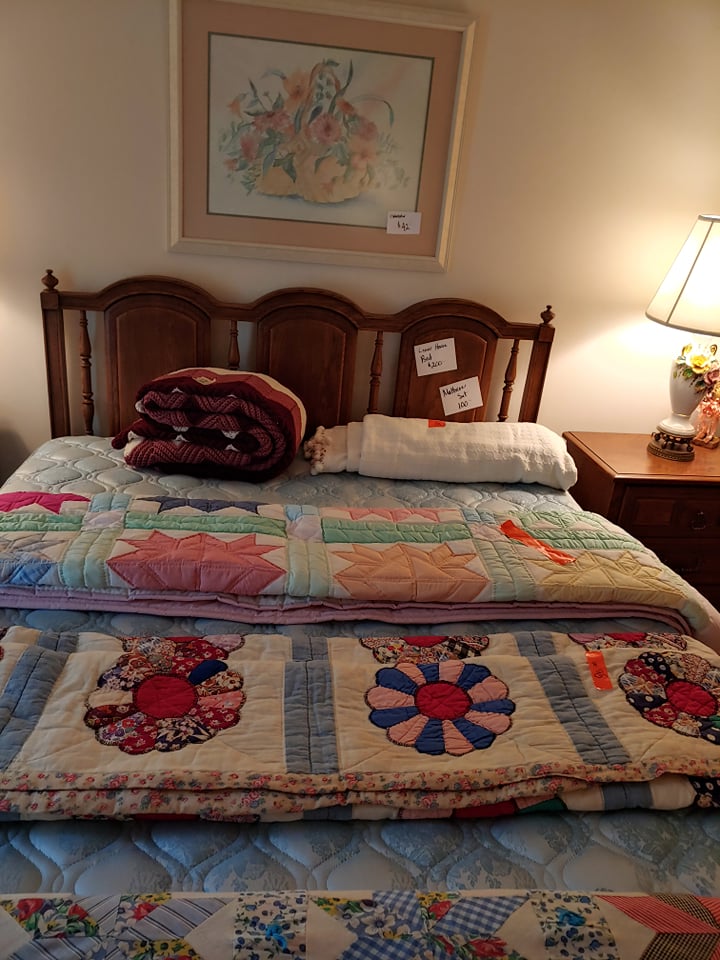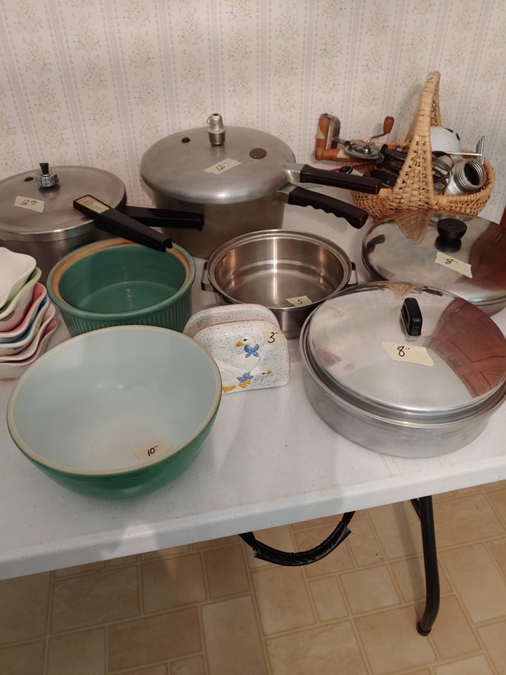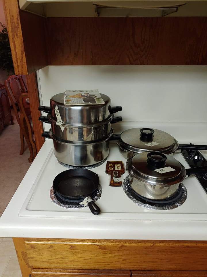 Lovely Brick home full of treasures….you will find 2 sofas, 2 Lazyboy recliners, lift chair, French Provincial End tables and coffee table, Mantle clock, TV and stand, assorted lamps, chests, and small tables, French Provincial Dining room suite and China cabinet, Harmony House Platinum Garland China, Pretty mirrors, stocked kitchen, Stainless Steel cookware, Pyrex, Corningware. Microwave, Oak round Clawfoot Table, 6 ladderback chairs, Washer/ Dryer, Vaccum cleaner, Sunbeam Stand Mixer, Small appliances, Medical Equipment, Card Table and padded chairs, Linens, Pressure Canner, Cast iron, hand tools, blower and trimmer, Small baby bed, Foyer table/mirror, F/Q Headboard and frame, several beautiful Quilts, Occasional chairs, Dresser, night stand, console storage cabinet, Lenoir House Q Bedroom Suite, King Bedroom Suite, Luggage, Wheel barrow, outside tools, washtubs, small red wagon, assorted lumber, Picnic table and so much more! See our website for pictures. Come see us!!