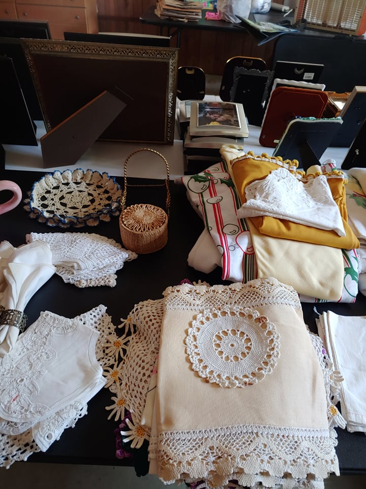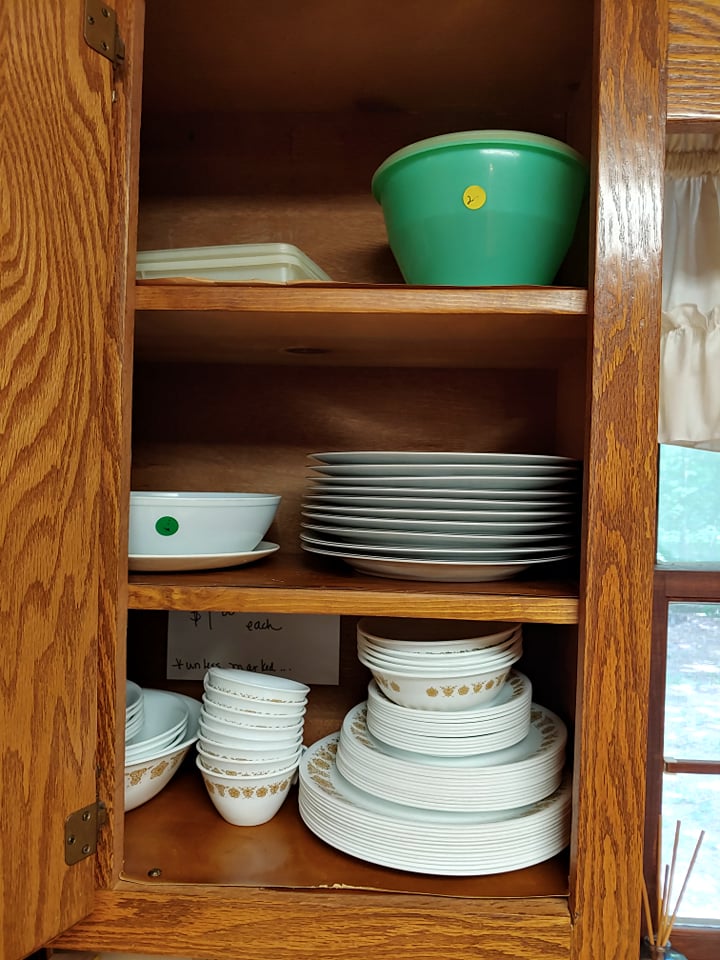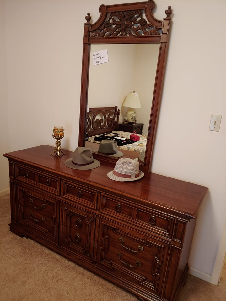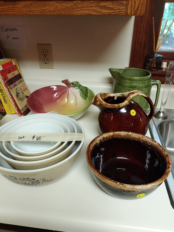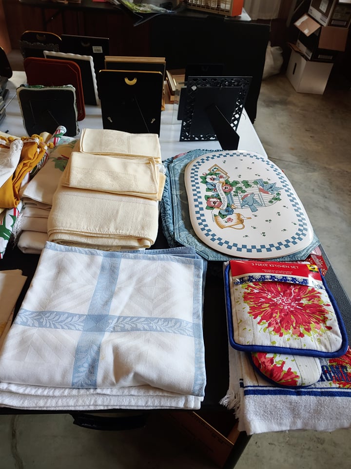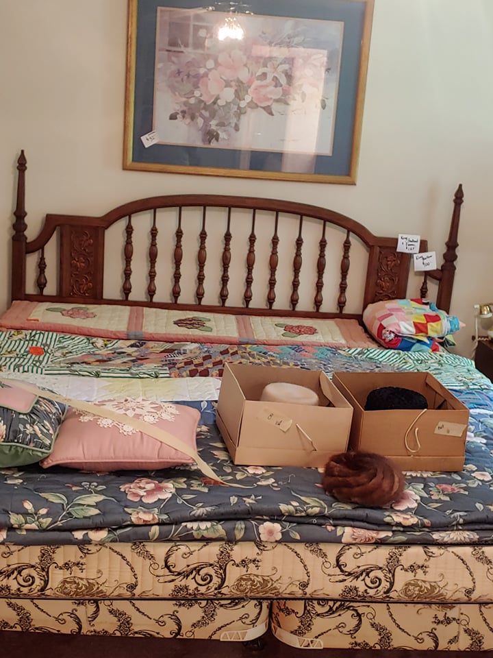 Lovely Brick home full of treasures….you will find 2 sofas, 2 Lazyboy recliners, lift chair, French Provincial End tables and coffee table, Mantle clock, TV and stand, assorted lamps, chests, and small tables, French Provincial Dining room suite and China cabinet, Harmony House Platinum Garland China, Pretty mirrors, stocked kitchen, Stainless Steel cookware, Pyrex, Corningware. Microwave, Oak round Clawfoot Table, 6 ladderback chairs, Washer/ Dryer, Vaccum cleaner, Sunbeam Stand Mixer, Small appliances, Medical Equipment, Card Table and padded chairs, Linens, Pressure Canner, Cast iron, hand tools, blower and trimmer, Small baby bed, Foyer table/mirror, F/Q Headboard and frame, several beautiful Quilts, Occasional chairs, Dresser, night stand, console storage cabinet, Lenoir House Q Bedroom Suite, King Bedroom Suite, Luggage, Wheel barrow, outside tools, washtubs, small red wagon, assorted lumber, Picnic table and so much more! See our website for pictures. Come see us!!