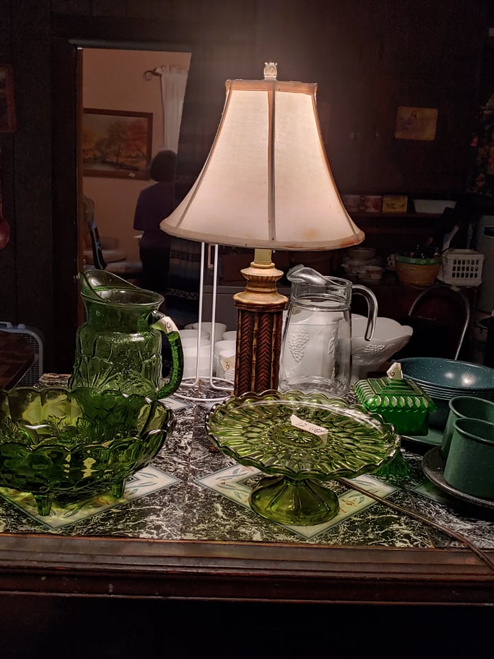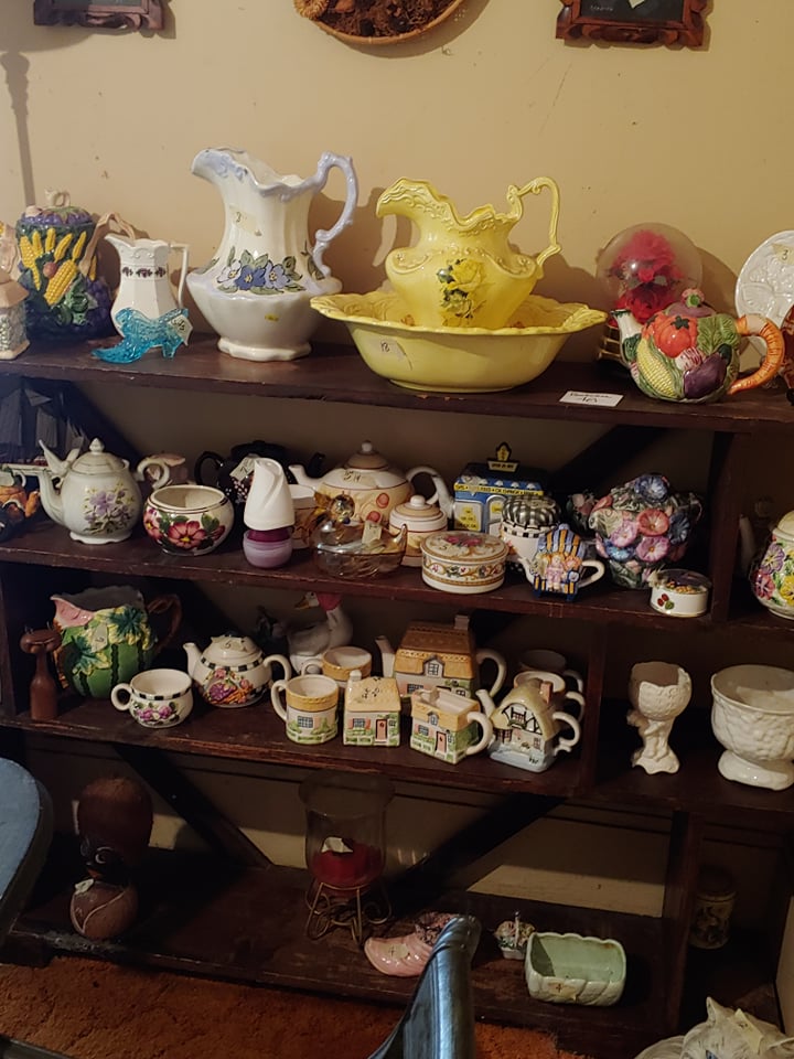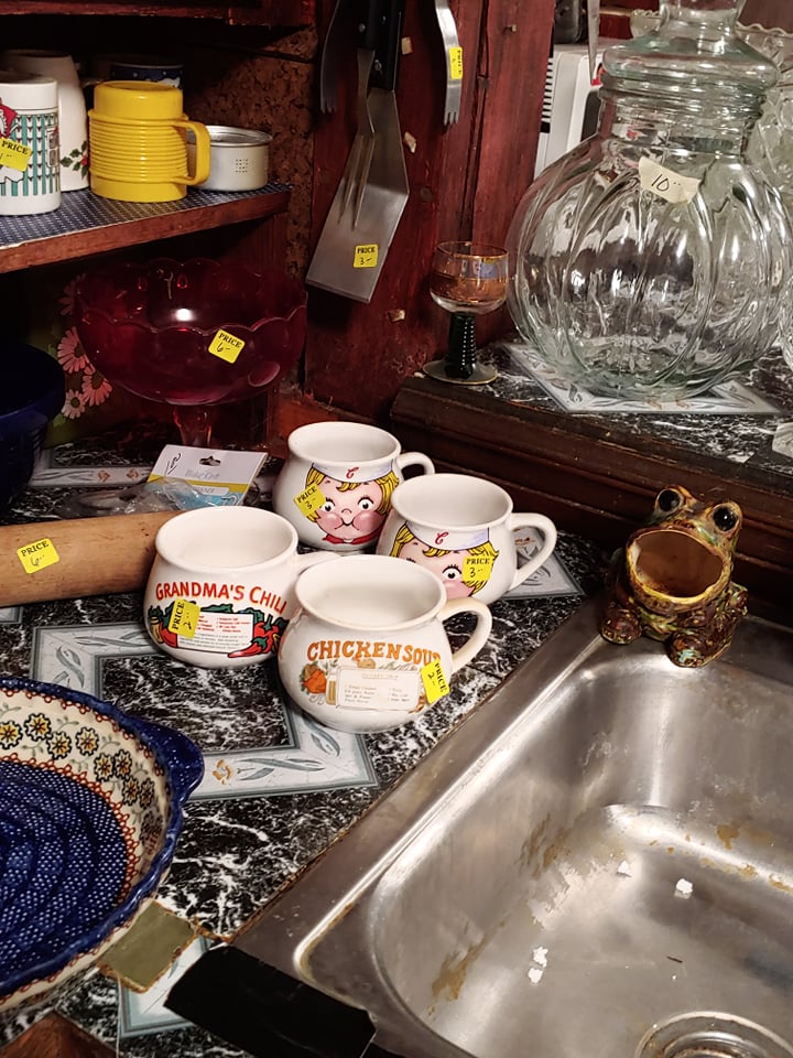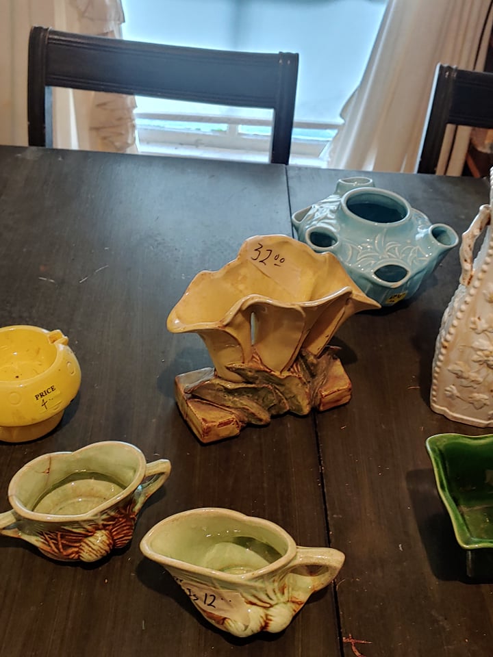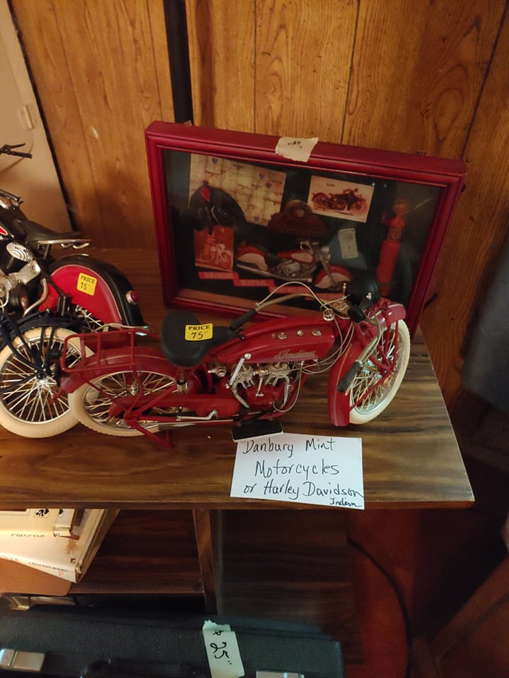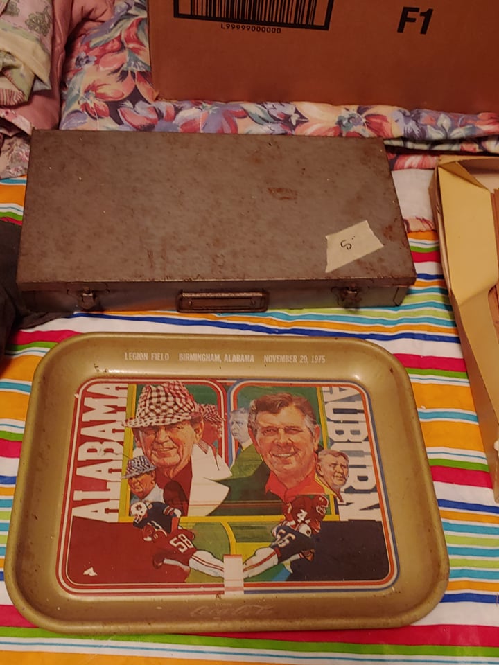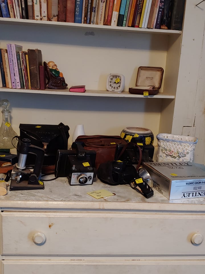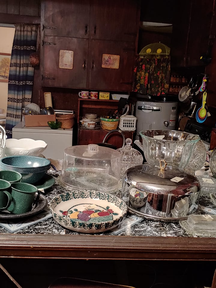 Old farmhouse filled with generations of stuff including many Handmade Primitive furniture pieces, McCoy Pottery, Milk Glass, Pyrex, Enamelware, Several Natural Gas space heaters, Eden Pure Heater, Pots and pans. assorted glassware and trinkets, Alabama memorabilia, Daniel Moore Goal Line Stand Print, many old books and magazines, old catalogs, Round Clock from Case Knife, knives, Lift Chair, 2 window Air Conditioners, handmade inside and cabinet doors, Washer/Dryer, Water Heater, Old Indian and Harley Davidson replicas, Leather Jackets, large air compressor, vanities and assorted chests and other furniture pieces, Bow, push mowers, Cattle Gates, Cast Iron. Costume Jewelry, Baseball cards and a building for plundering. See our website for photos. Come see us!