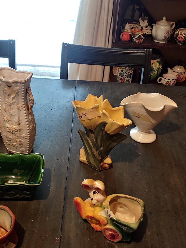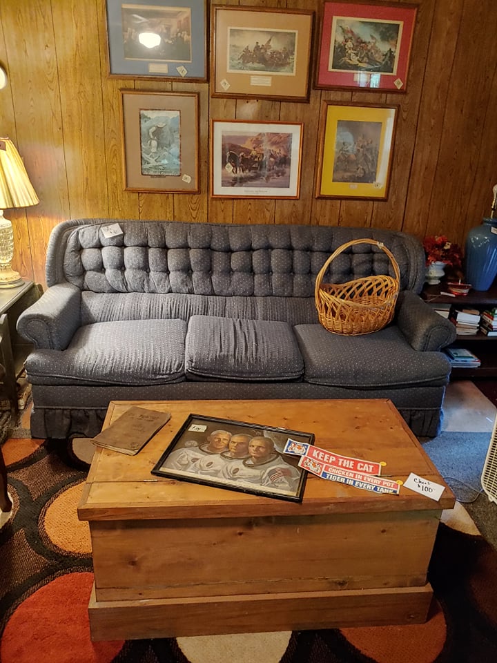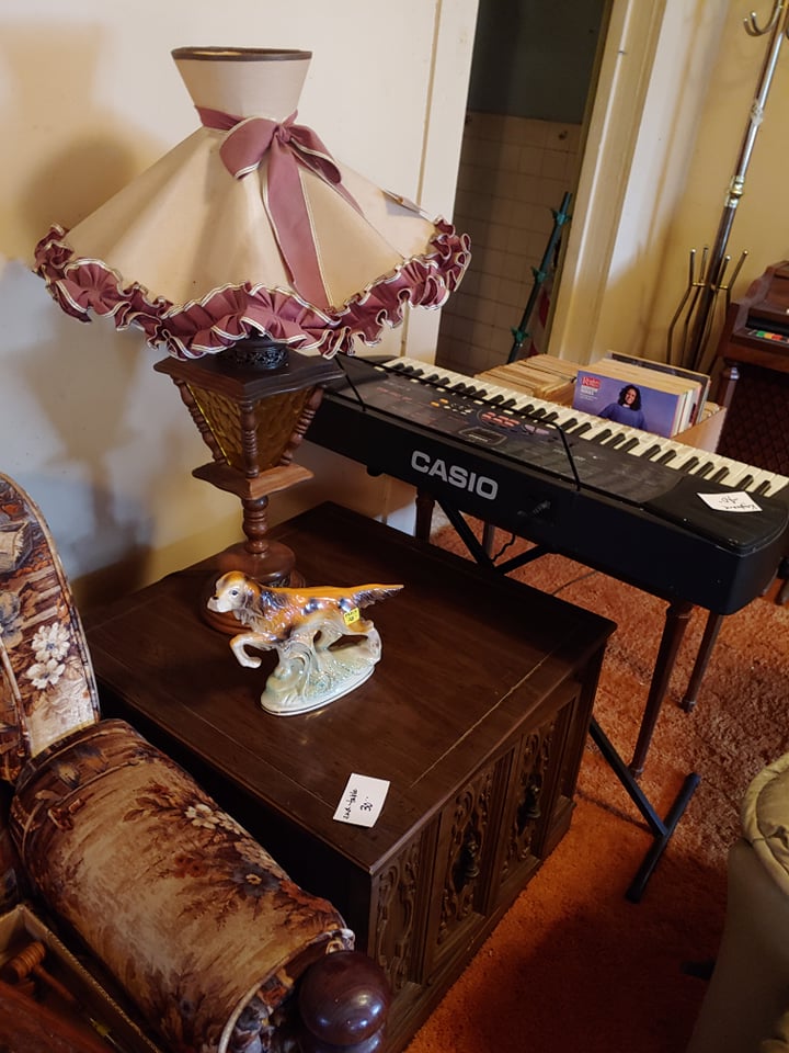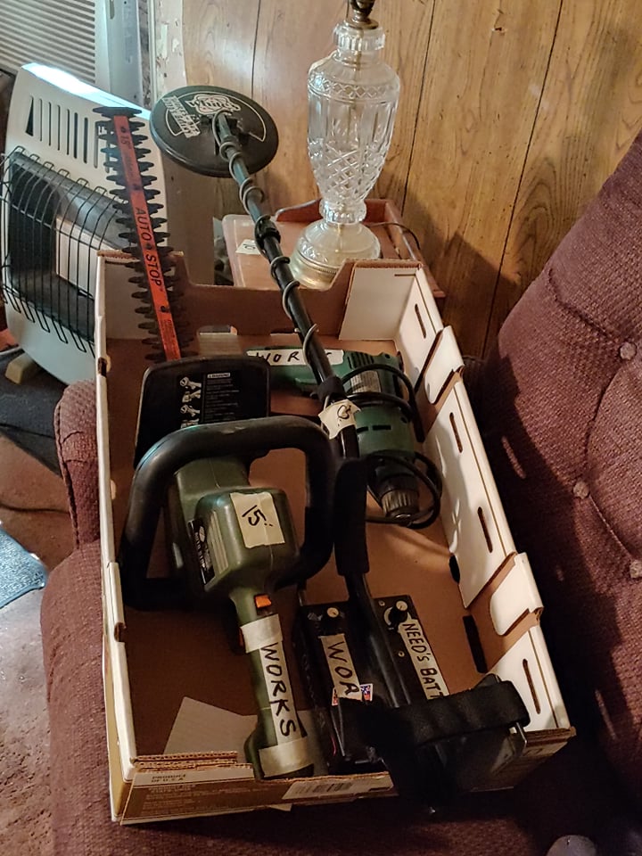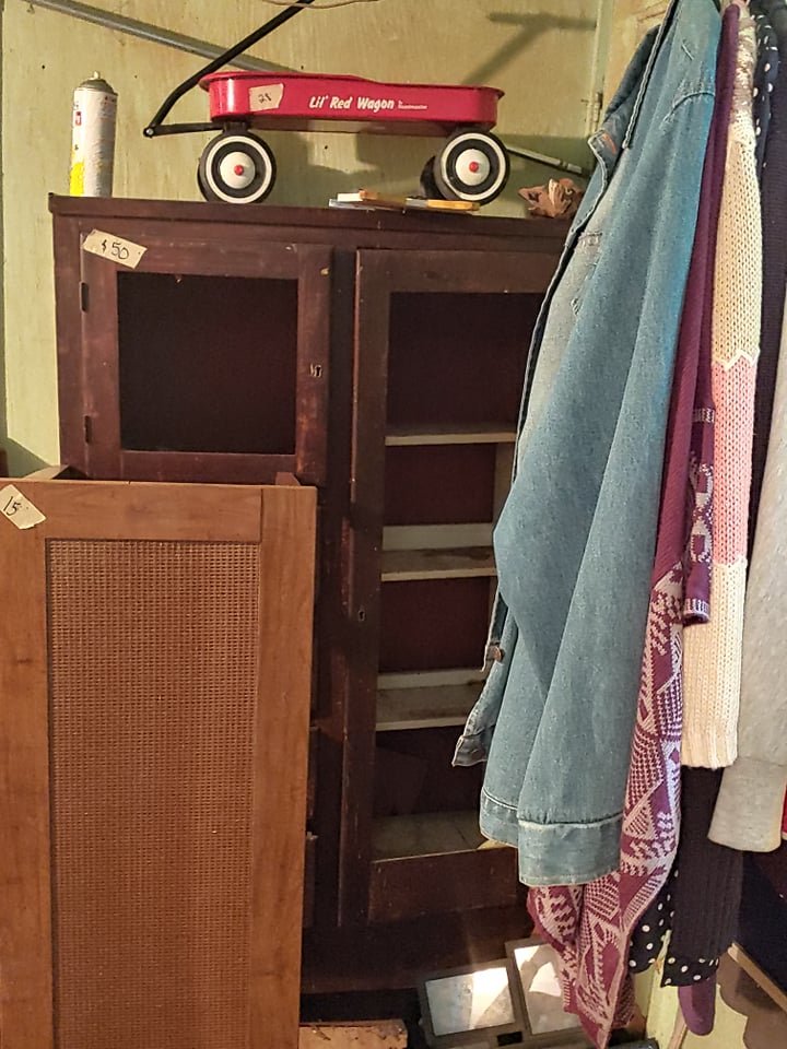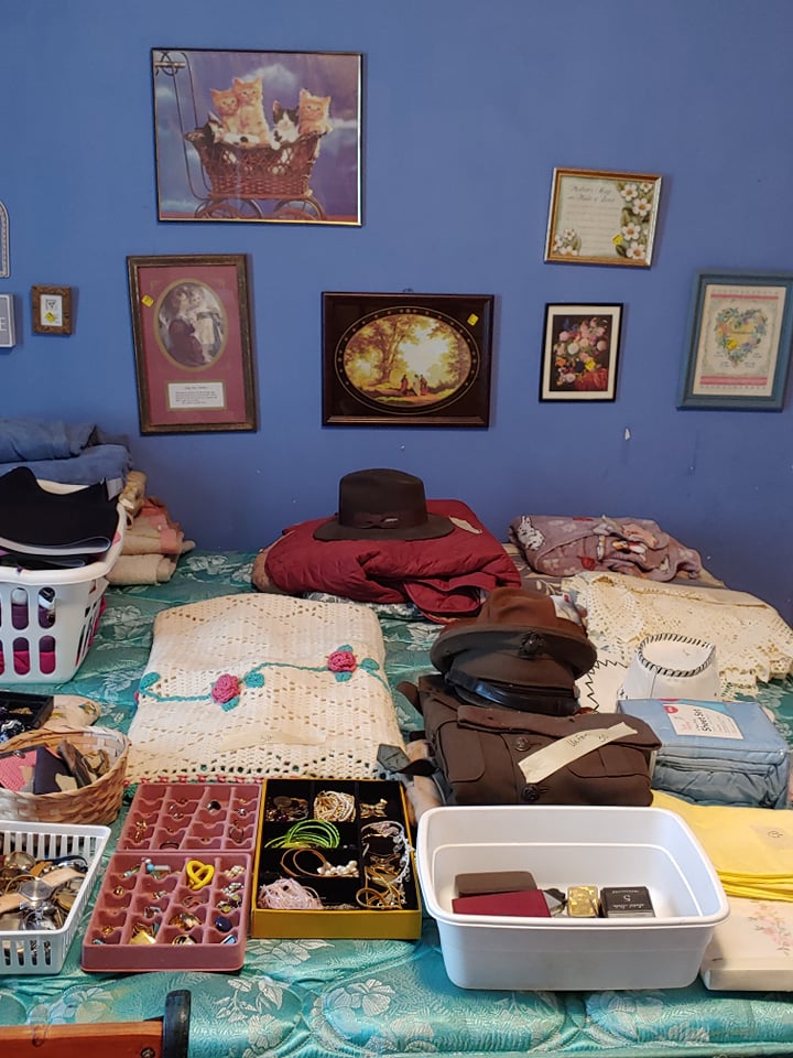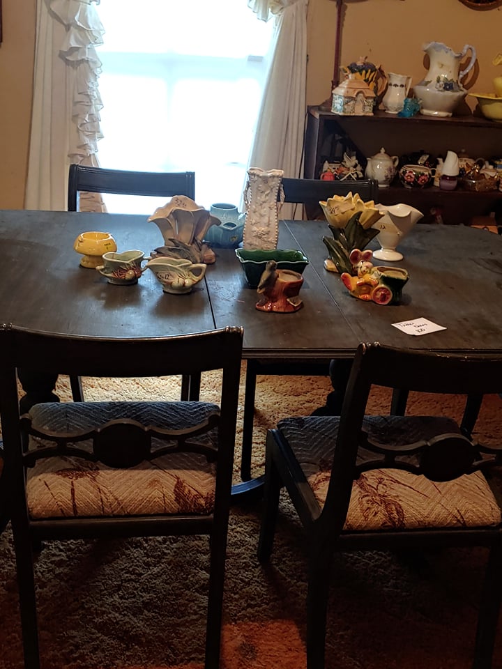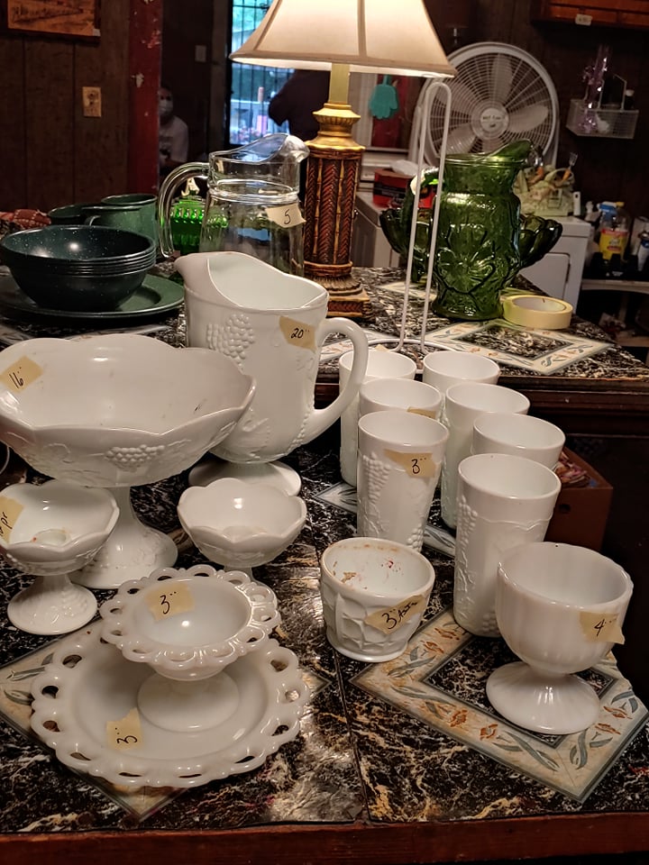 Old farmhouse filled with generations of stuff including many Handmade Primitive furniture pieces, McCoy Pottery, Milk Glass, Pyrex, Enamelware, Several Natural Gas space heaters, Eden Pure Heater, Pots and pans. assorted glassware and trinkets, Alabama memorabilia, Daniel Moore Goal Line Stand Print, many old books and magazines, old catalogs, Round Clock from Case Knife, knives, Lift Chair, 2 window Air Conditioners, handmade inside and cabinet doors, Washer/Dryer, Water Heater, Old Indian and Harley Davidson replicas, Leather Jackets, large air compressor, vanities and assorted chests and other furniture pieces, Bow, push mowers, Cattle Gates, Cast Iron. Costume Jewelry, Baseball cards and a building for plundering. See our website for photos. Come see us!