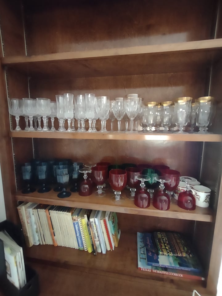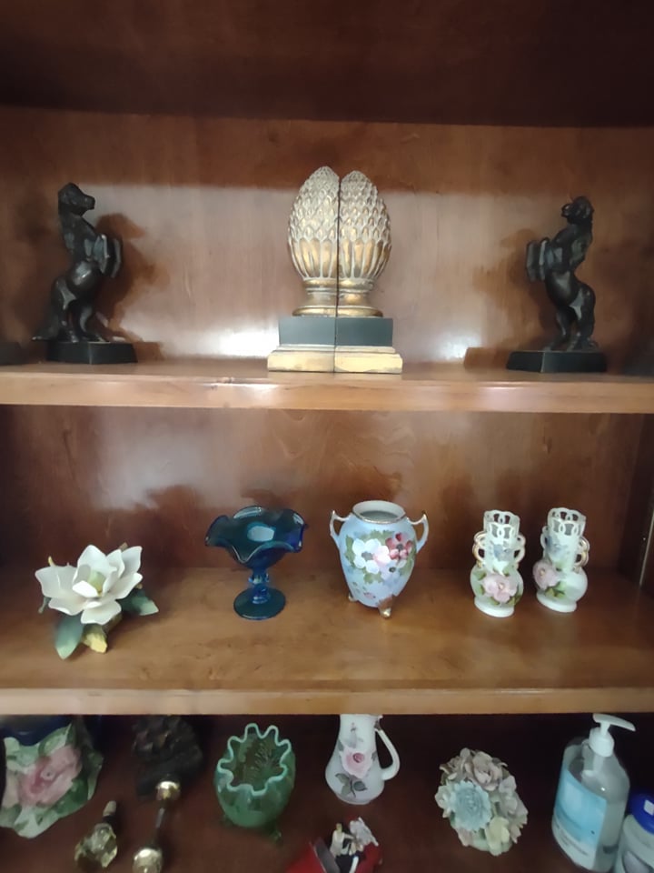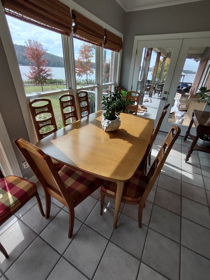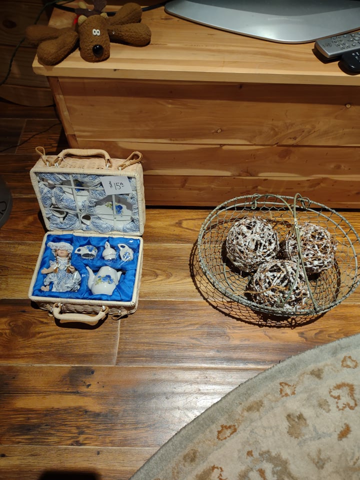 Beautiful waterfront home, you will find King size Bedroom Suite, Mid Century Modern Dining Room Suite with 8 chairs, matching arm chairs, tall cedar chest, large farm table, 6 ft old school table with drawers, Futon, Custom made storage cabinet, Oak Hutch, Large TV Entertainment center with bookcases, White Wicker, Hampton Bay Chairs with side tables (outdoor), Lenox Rutledge China (service for 12), Fitz/Floyd English Garden, Blue cream soups by Pirken-Hammer, Brass and Marble Mantel Clock and Candlebras, beautiful desk, Garage Fridge and Dorm size Fridge, Freezer, Hand tools, Glass top end tables, Lamps, Lots of Christmas decor, Charlie Brown Christmas tree and other trees also, TVs, Linens and bedding, Assorted large outdoor pots, Table saw, Small Propane heater, Old Coca Cola Cooler, Lifejackets, Large rolling Battery charger, Large oak Columns and some other lumber, ladders, Floating Ice Chests, Beach and outdoor chairs, Old Reel go reel tape player, Rods/reels, sink top and so much more!! Come and see us.