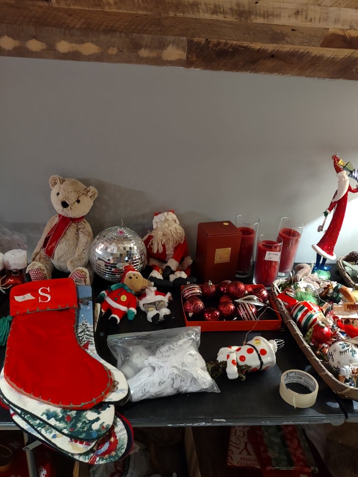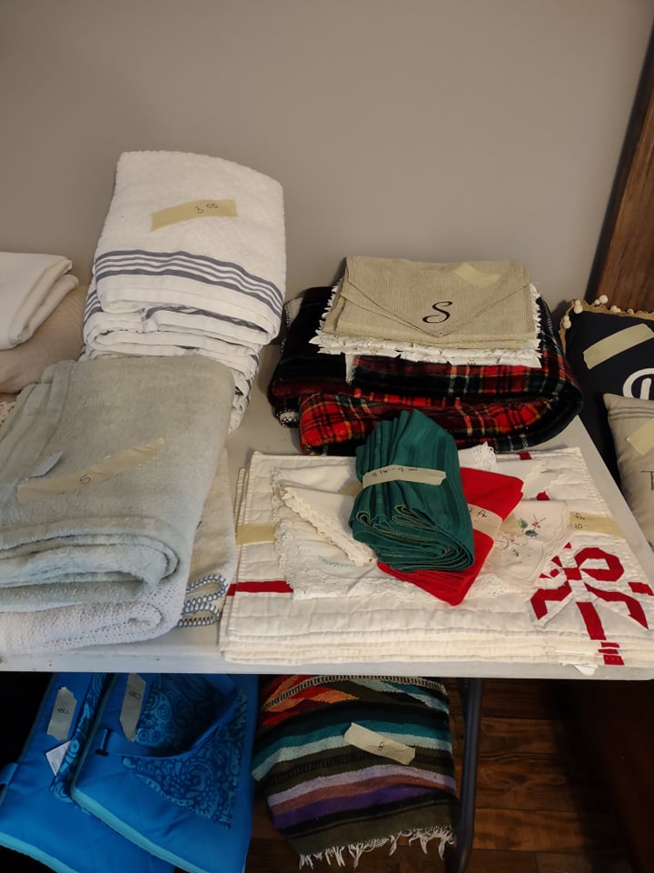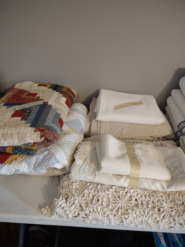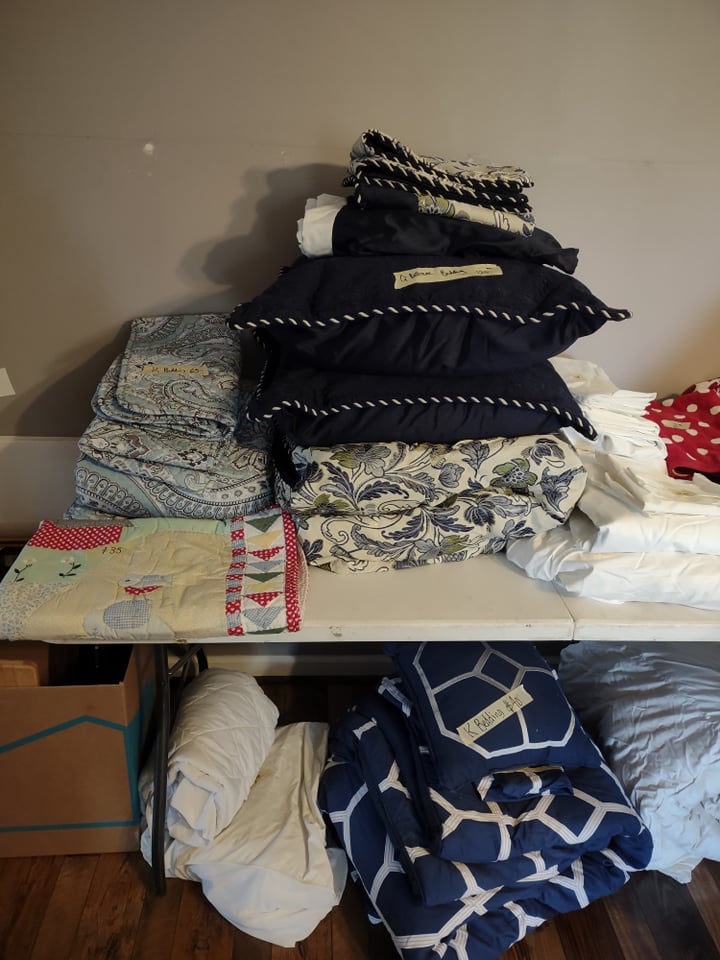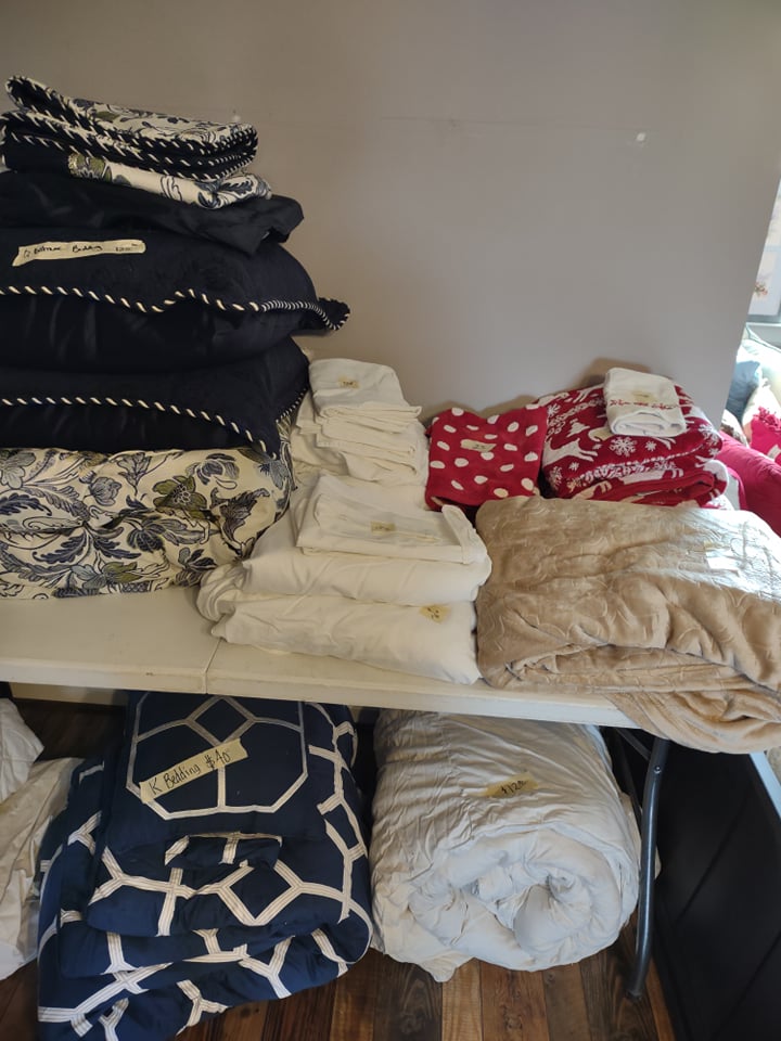 Beautiful waterfront home, you will find King size Bedroom Suite, Mid Century Modern Dining Room Suite with 8 chairs, matching arm chairs, tall cedar chest, large farm table, 6 ft old school table with drawers, Futon, Custom made storage cabinet, Oak Hutch, Large TV Entertainment center with bookcases, White Wicker, Hampton Bay Chairs with side tables (outdoor), Lenox Rutledge China (service for 12), Fitz/Floyd English Garden, Blue cream soups by Pirken-Hammer, Brass and Marble Mantel Clock and Candlebras, beautiful desk, Garage Fridge and Dorm size Fridge, Freezer, Hand tools, Glass top end tables, Lamps, Lots of Christmas decor, Charlie Brown Christmas tree and other trees also, TVs, Linens and bedding, Assorted large outdoor pots, Table saw, Small Propane heater, Old Coca Cola Cooler, Lifejackets, Large rolling Battery charger, Large oak Columns and some other lumber, ladders, Floating Ice Chests, Beach and outdoor chairs, Old Reel go reel tape player, Rods/reels, sink top and so much more!! Come and see us.