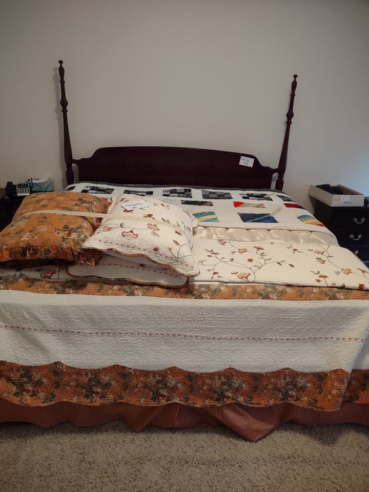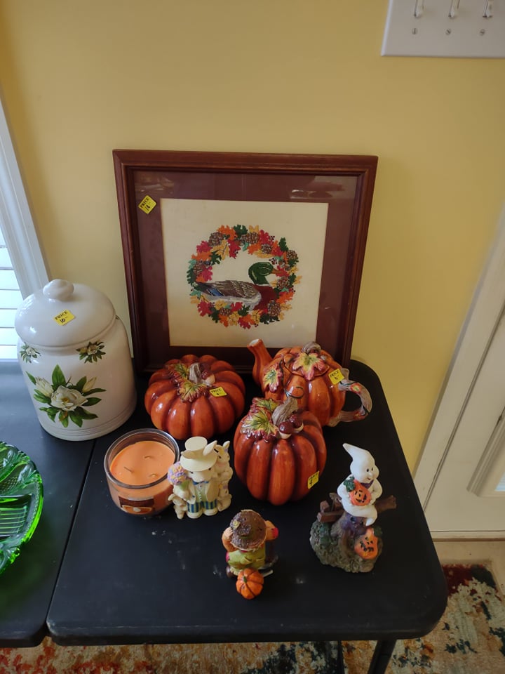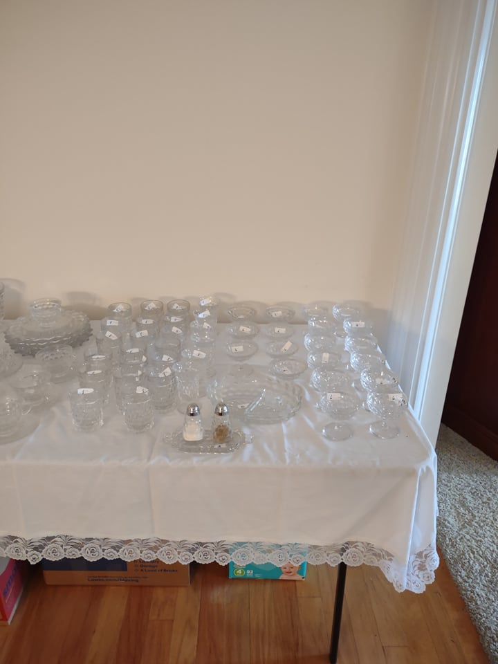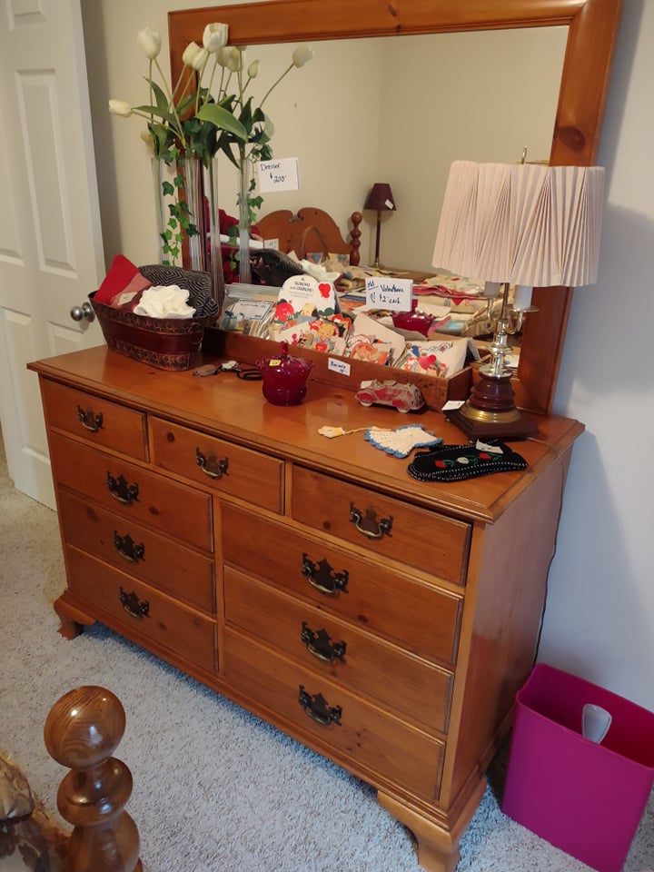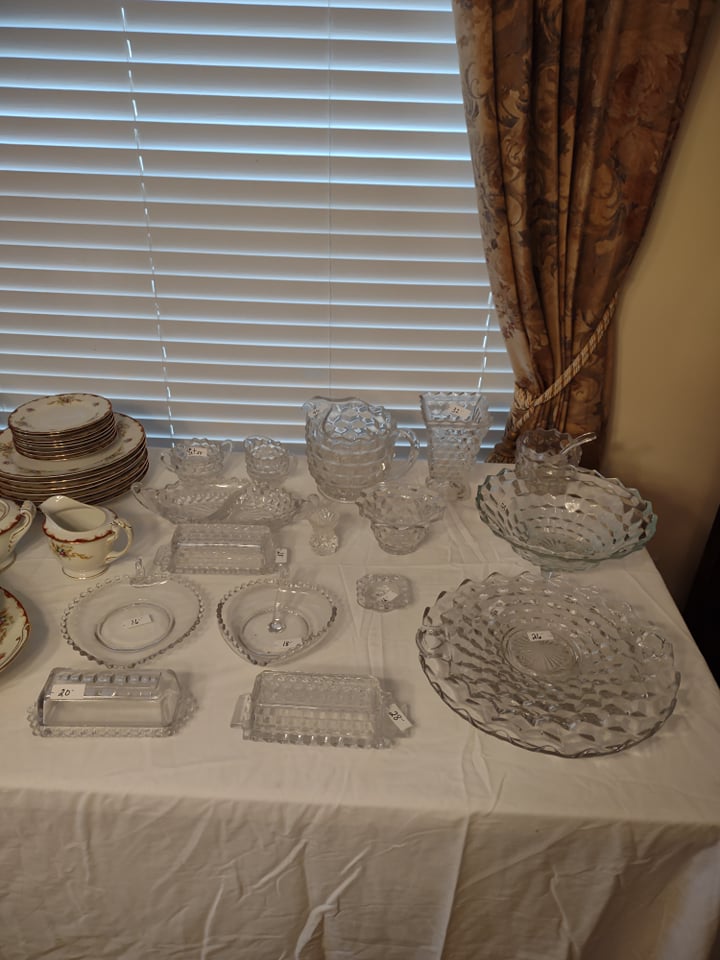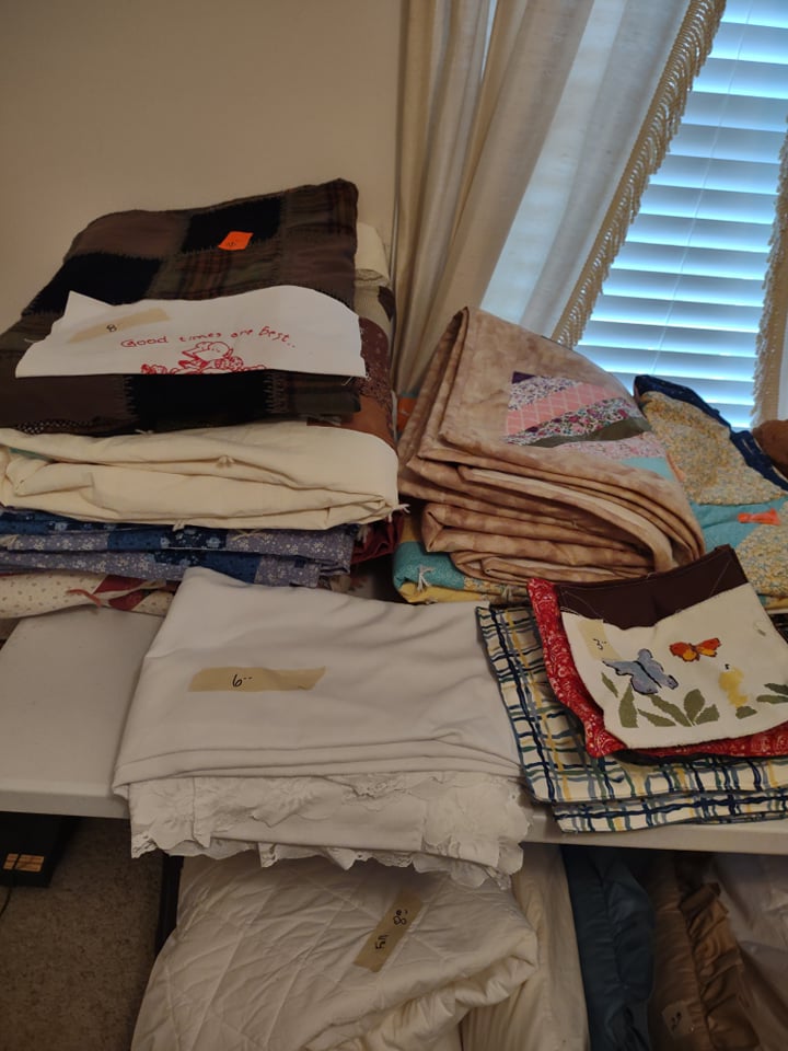 This is an immaculate home with beautiful things.  You will find a King size Bedroom Suite, a King Mattress and box springs, a Full  Size Bedroom suite and Full size Mattress and Box Springs, Drop Leaf Dining Room Table and 6 chairs, Corner Curio Cabinet, Metal and Wood Foyer Table, Whirlpool Washer and Dryer, Upright Freezer, Large collection of Tom Clark Figurines, Fostoria American including the Punch Bowl, Red Wing Large Jug, Churn and other pottery pieces, Pink Hull Pottery Tea and Cream and Sugar, Old Trunk,  Christmas Decor, Harp Table, Chocolate Set. Sofa, Harmony House China Wembly Pattern, Blue and White China, Metal Shelf, a few handtools, Computer desk, Kitchen Aid Mixer, McCoy Cookie Jar, Antique Coffee Grinders, Small appliances, White Wicker Rocking Chairs, Wrought Table and chairs, Metal Swing, Childrens Iron Bench, Grill, Beautiful quilts and quilt tops and quilt top pieces, Assorted fabric pieces and sewing notions, Janome sewing machine, Tiny Tears Doll ( from the 1950s) and clothes. Linens, Bedding, Vintage Valentines, Vintage handmade items, Costume Jewelry, Wingback chairs, Purses, Handmade King size quilts and King Bedding, Ladies clothing and more!  Come see us.  Just off the Beltline in Decatur.