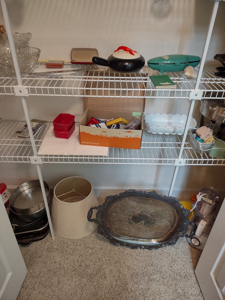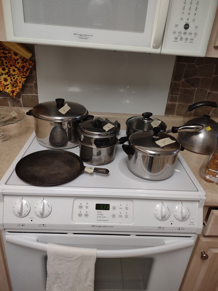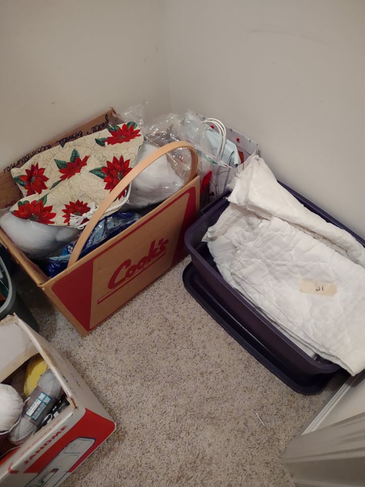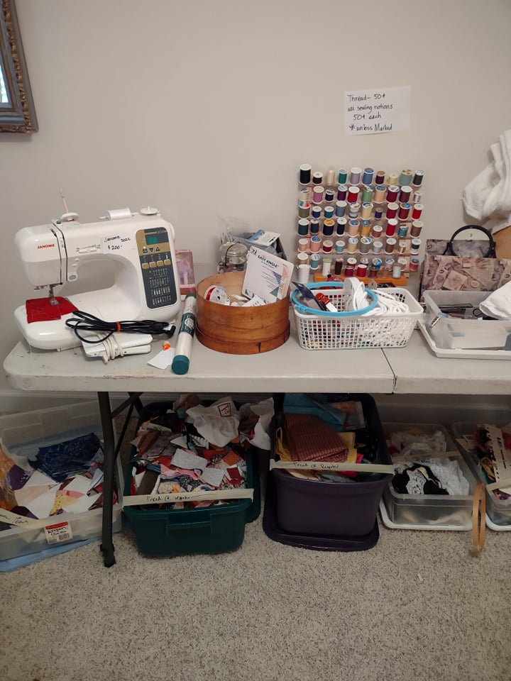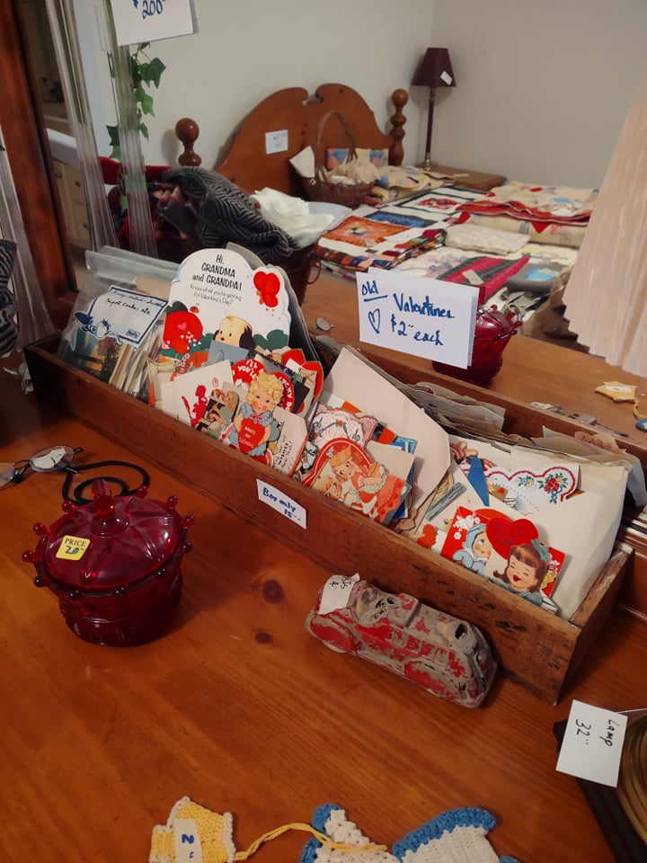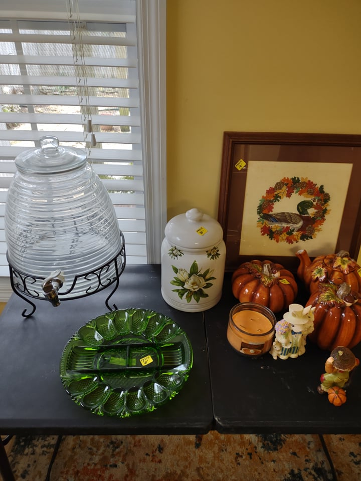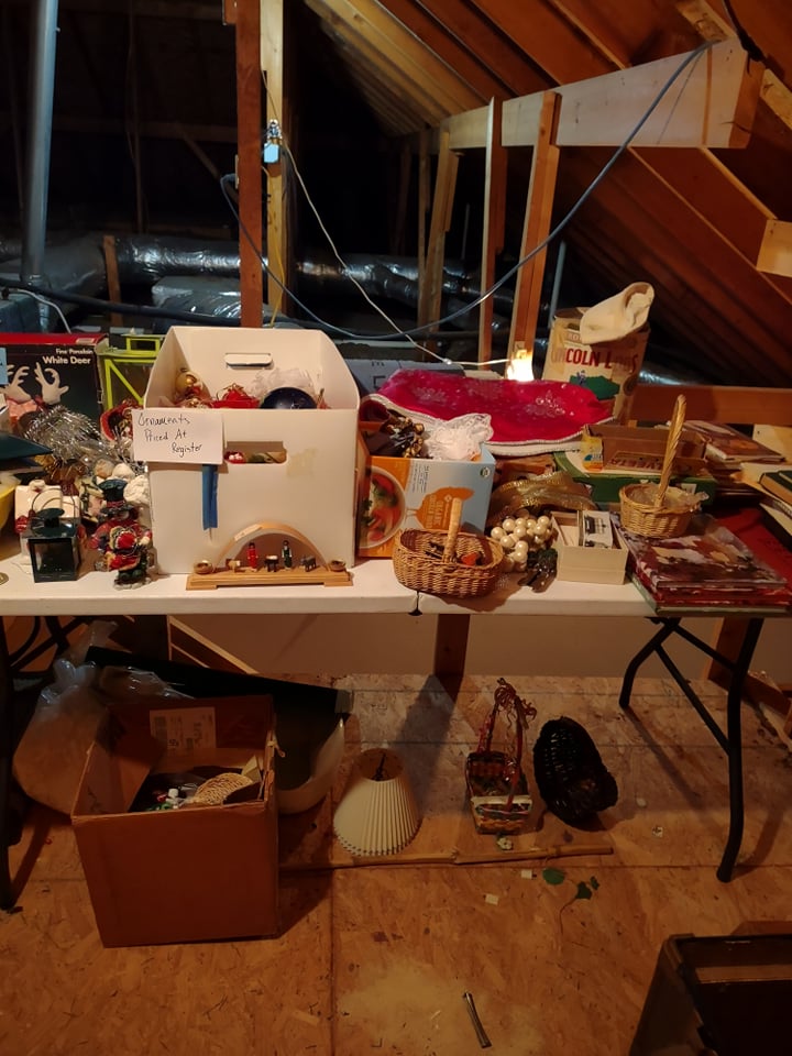 This is an immaculate home with beautiful things.  You will find a King size Bedroom Suite, a King Mattress and box springs, a Full  Size Bedroom suite and Full size Mattress and Box Springs, Drop Leaf Dining Room Table and 6 chairs, Corner Curio Cabinet, Metal and Wood Foyer Table, Whirlpool Washer and Dryer, Upright Freezer, Large collection of Tom Clark Figurines, Fostoria American including the Punch Bowl, Red Wing Large Jug, Churn and other pottery pieces, Pink Hull Pottery Tea and Cream and Sugar, Old Trunk,  Christmas Decor, Harp Table, Chocolate Set. Sofa, Harmony House China Wembly Pattern, Blue and White China, Metal Shelf, a few handtools, Computer desk, Kitchen Aid Mixer, McCoy Cookie Jar, Antique Coffee Grinders, Small appliances, White Wicker Rocking Chairs, Wrought Table and chairs, Metal Swing, Childrens Iron Bench, Grill, Beautiful quilts and quilt tops and quilt top pieces, Assorted fabric pieces and sewing notions, Janome sewing machine, Tiny Tears Doll ( from the 1950s) and clothes. Linens, Bedding, Vintage Valentines, Vintage handmade items, Costume Jewelry, Wingback chairs, Purses, Handmade King size quilts and King Bedding, Ladies clothing and more!  Come see us.  Just off the Beltline in Decatur.