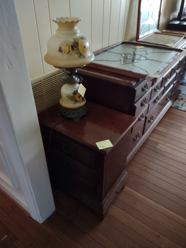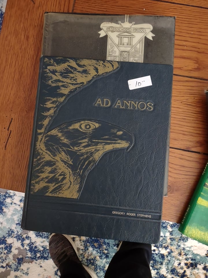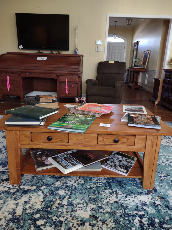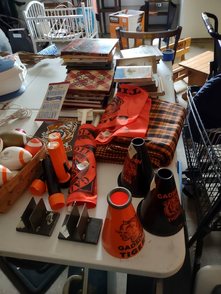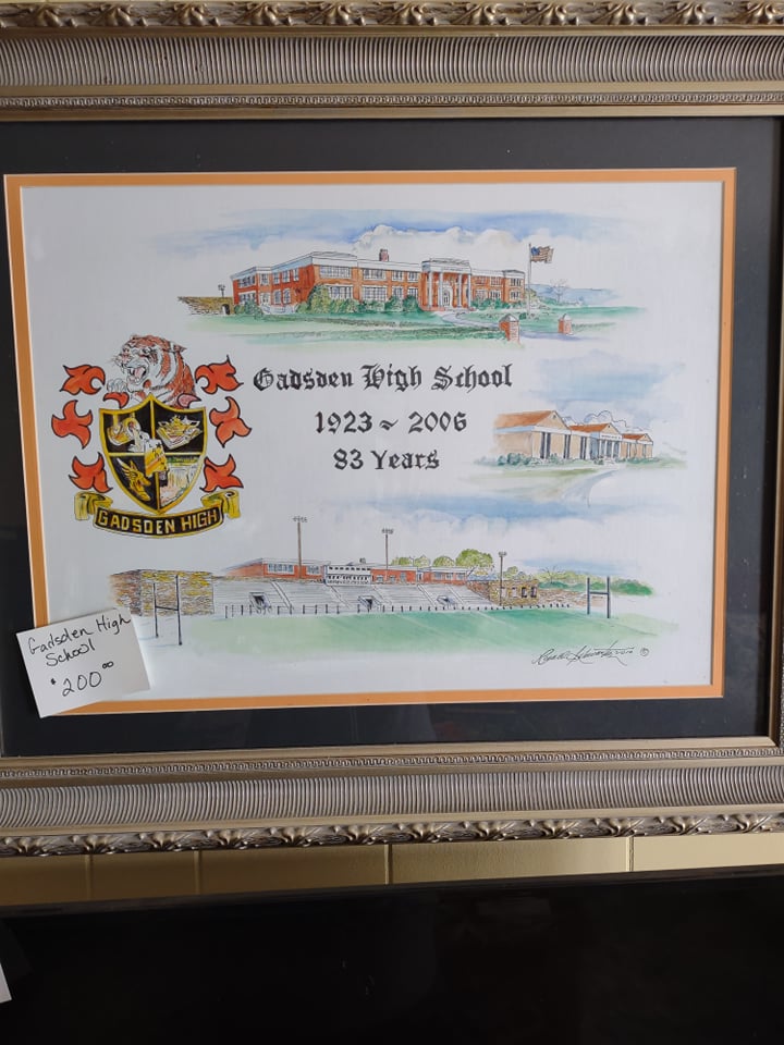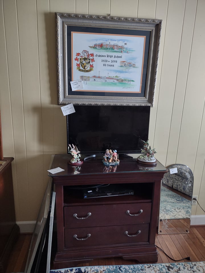 Beautiful home containing many lovely antique pieces such as an Antique Sofa, Wing back chairs, 2 China Cabinets, Pump Organ, nice Lamps, 2 Antique Windsor tables one with marble top, Hall Tree, Blanket Cedar Chest, Quilts, Lots of Glassware, Corner China Cabinet, Stocked kitchen including Saladmaster cookware, Kenmore Washer and Dryer, 2 garage refrigerators, Gadsden High memorabilia including yearbooks from the 1920s, small hand tools, yard tools, ladders, Brinkman Grill, Smoker, old kids Schwinn Bike, Small old Coca Cola Cooler, 2 small Lazyboy Recliners, 2 leaded glass windows, Assorted Dressers, Chests, nightstands, mirrors and tables, Large Coffee Table, Blue/white sofa, Framed Gadsden High print from 2011, metal /glass end tables, Painted Firescreen, many Wild Turkey Decanters, Linens and handmade goods, Wood/Metal Daybed, large Model Airplanes and all kinds of parts to build with, clothes, shoes, purses, costume jewelry, File cabinets, Medical equipment, Brother Laser Printer, Bose Companion III series II speakers, Small writing desk, lots of Christmas, yarn and all sorts of started projects, old Dolls, Singer Sewing Machine, Rocking Chair, Lingerie Chest, Shop Vac, Portable Planner by Delta, 10 in Bench Saw, Grinder and lots more. Come see us!!