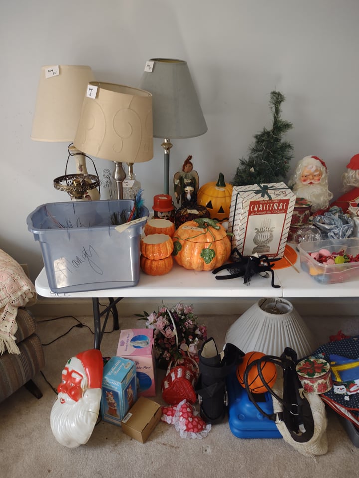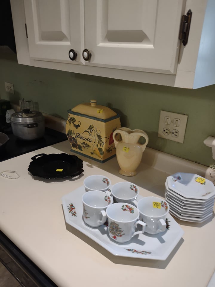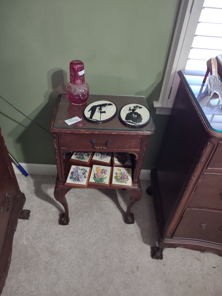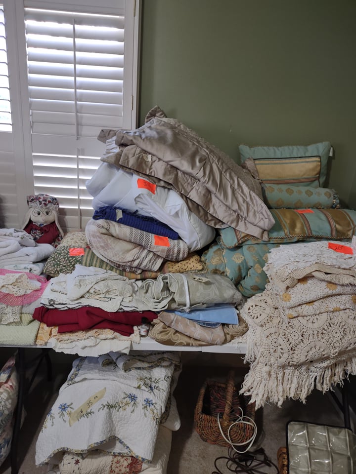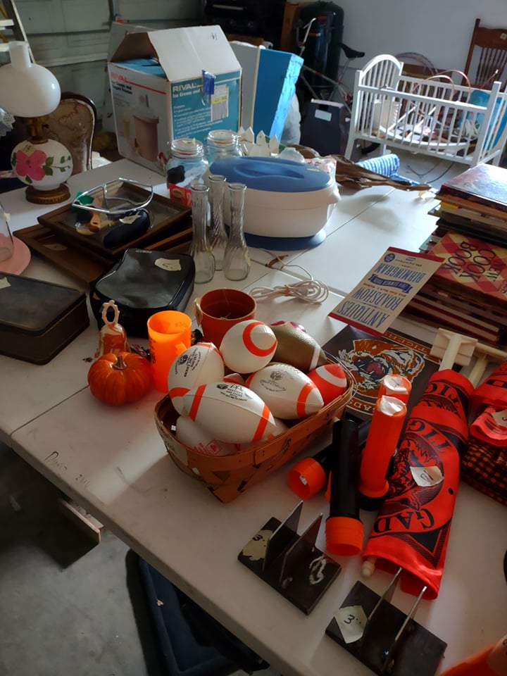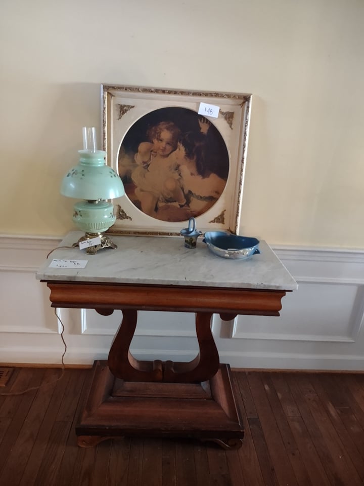 Beautiful home containing many lovely antique pieces such as an Antique Sofa, Wing back chairs, 2 China Cabinets, Pump Organ, nice Lamps, 2 Antique Windsor tables one with marble top, Hall Tree, Blanket Cedar Chest, Quilts, Lots of Glassware, Corner China Cabinet, Stocked kitchen including Saladmaster cookware, Kenmore Washer and Dryer, 2 garage refrigerators, Gadsden High memorabilia including yearbooks from the 1920s, small hand tools, yard tools, ladders, Brinkman Grill, Smoker, old kids Schwinn Bike, Small old Coca Cola Cooler, 2 small Lazyboy Recliners, 2 leaded glass windows, Assorted Dressers, Chests, nightstands, mirrors and tables, Large Coffee Table, Blue/white sofa, Framed Gadsden High print from 2011, metal /glass end tables, Painted Firescreen, many Wild Turkey Decanters, Linens and handmade goods, Wood/Metal Daybed, large Model Airplanes and all kinds of parts to build with, clothes, shoes, purses, costume jewelry, File cabinets, Medical equipment, Brother Laser Printer, Bose Companion III series II speakers, Small writing desk, lots of Christmas, yarn and all sorts of started projects, old Dolls, Singer Sewing Machine, Rocking Chair, Lingerie Chest, Shop Vac, Portable Planner by Delta, 10 in Bench Saw, Grinder and lots more. Come see us!!