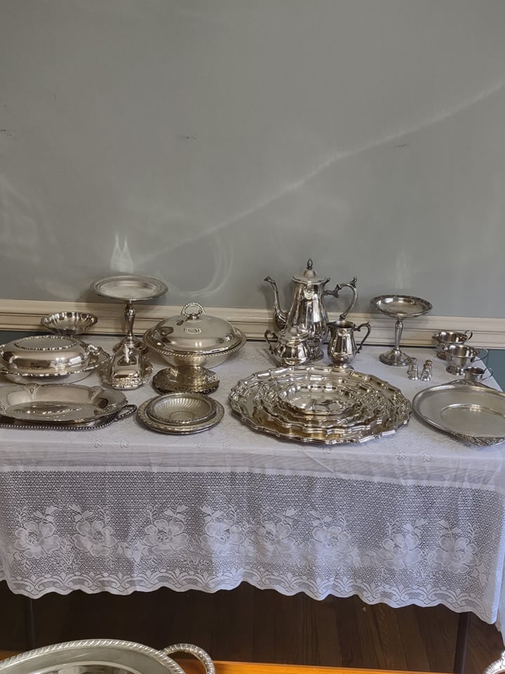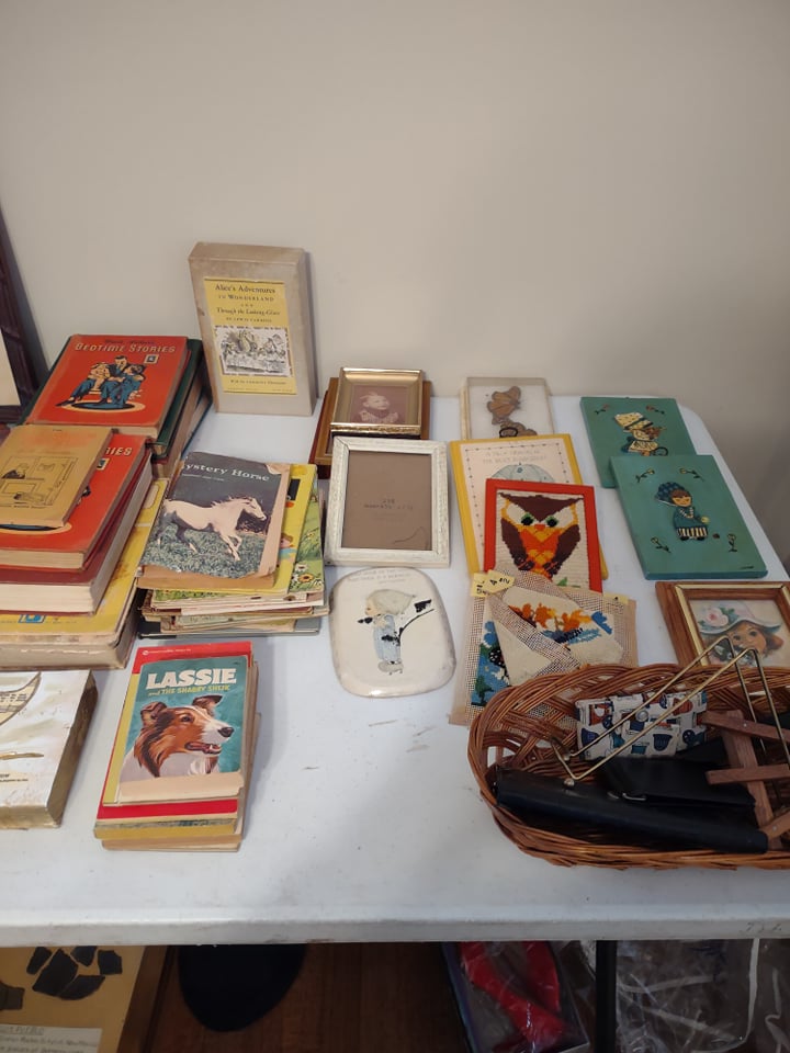 In this beautiful Mountain Brook home you will find antique furniture, Oak Clawfoot table and 6 chairs, Fostoria American including the big Punch Bowl, Lenox China Romance and Harvest patterns, Johnson Brothers Summer Chintz pattern, Kings Crown Glassware, Beautiful Pump Organ, Reed and Barton Tara Hill Silver Service, Whirlpool Washer and an older Kenmore Dryer, Whirlpool upright Freezer, Princess Feather lamps, Sterling Candle Sticks, Pair of Rattan chairs, Gateleg table, Small Round Marble top table, Large outdoor urns, Tempur-Pedic Full size Mattress, Schwab Fire proof file cabinets, ladders, Hand Tools, Linens, old sheet music and song books..some very old, Vintage Womans and children’s clothing, Designer clothing by Jodi Arnold a NYC designer, Vintage clothing and costumes and purses, assorted chairs, rugs, wooden Ice Chest, Antique Iron Bed, Wicker rocker, Bedding, Antique twin bed, Antique play pen and high chair, old Children’s Books and toys, Beautiful Antique 4 piece Fullsize Bedroom Suite, Dolls and Doll furniture, Wooden rocker, child’s rocker, Baby quilts, Wing back Chair, recently recovered Loveseat, Red Desk, set of 6 T back Chairs, Mantle Clocks, Wooden swing, Round wrought iron table and chairs, Wrought iron Chaise and chair, Cherry Drop Leaf Table and 6 chairs, Antique Child’s chair, Haviland Apple Blossom, Rugs, Sterling and Silverplate, Yamaha PSR 500 and PF 2000 Keyboards, Desk/Secretary, Guitaro, Sofa, End Tables, Lift top small desk. Wall Art, Mirrors, Singer Sewing machine, Lenox Village, Stuart Server, huge collection of sheet music and song books…some very old, Cameras, Kitchen Aide side by side white Fridge, Schwinn Stationary Bike, Eliptical, Honda Push Mower, Yard tools, Husky Powerwasher 1650, Troy Built Pressure Washer 3100PSI, Stihl weedeater Blower and trimmer (electric), Craftsman Chainsaws, Lots of Books, Luggage and lots more. Come see us!