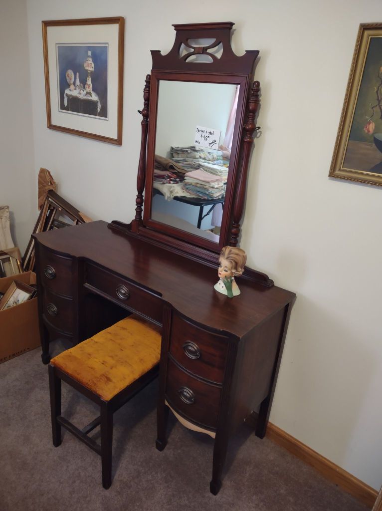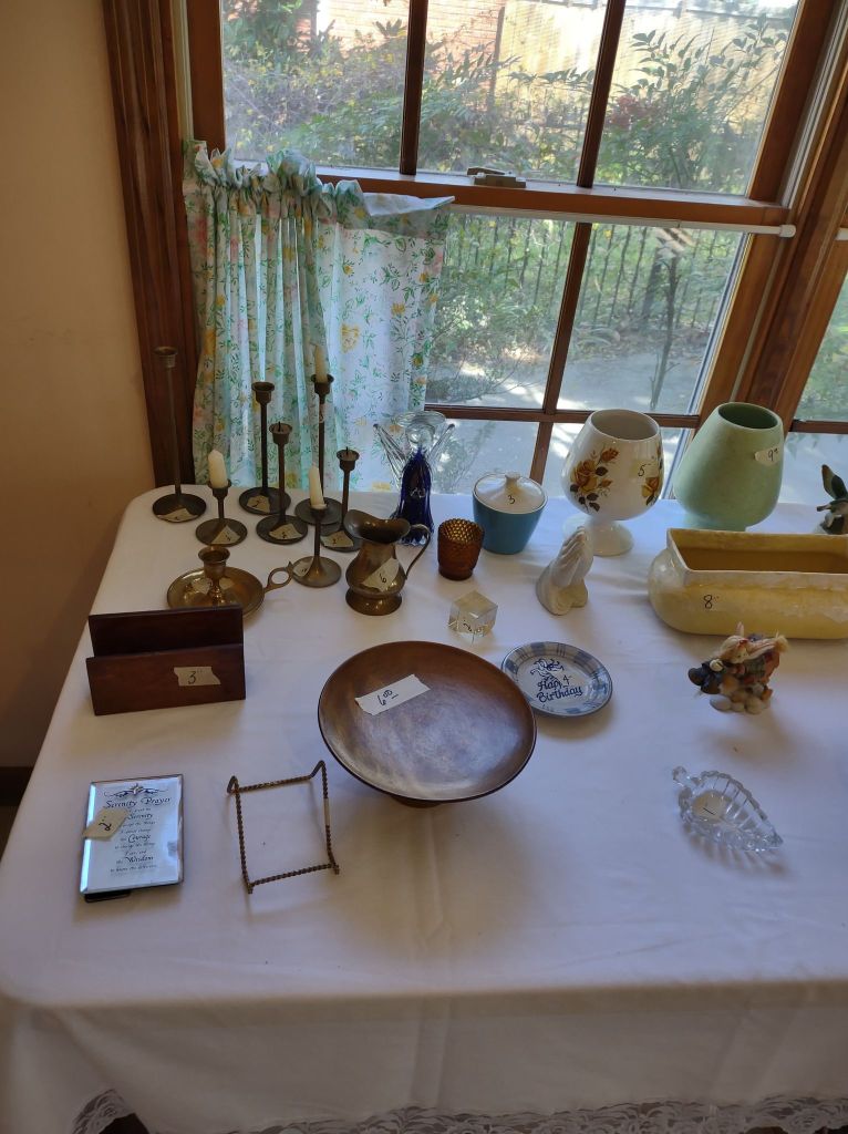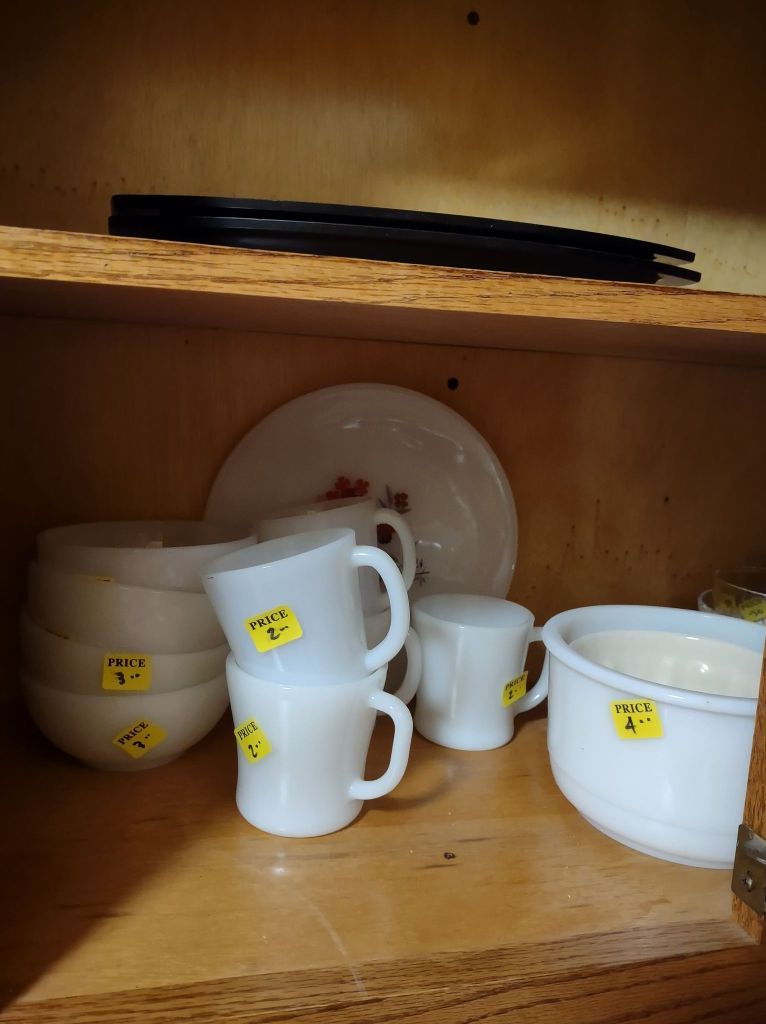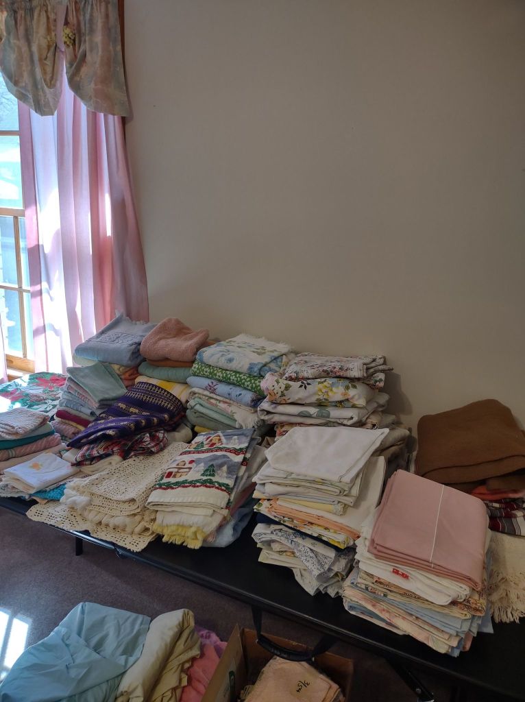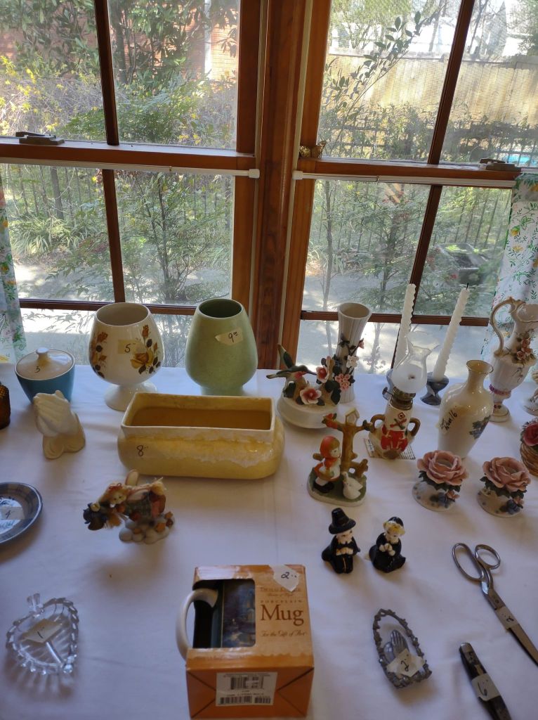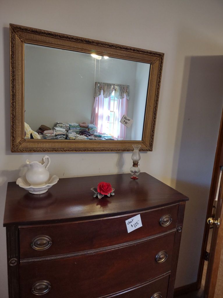 Cute brick house in Ashville where you will find a Mahogany Dining table and chairs, a Breakfast Room table and 4 rolling and upholstered chairs, Cookware, Florenteen China, Assorted glassware and vases, Canning Jars, some Fireking pieces, Totally Christmas Dishes, Keurig, Toaster Oven, Corningware, Cast Iron, Panosonic Microwave, Noritake Ivyne China, Stripe Chair, Mahogany China Cabinet, Mikado Ingrid Chaina (large collection), Sofa, 2 Bookcases, End Tables, lamps, White Ceramic Christmas Tree, Mirrors, Whirlpool Washer and Dryer, French Provincial Bedroom Suite, Console Stereo, Sewing Machine Cabinet and chair, Medical Equipment, Mahogany Bed, Chest and Vanity, Linens, sheets , towels, couple of quilts, Outside pots, Outside storage container and so much more! Come see us!