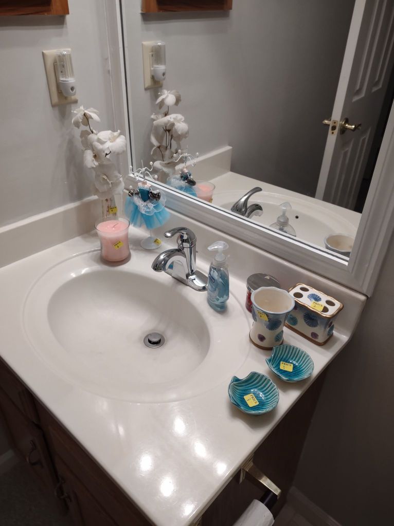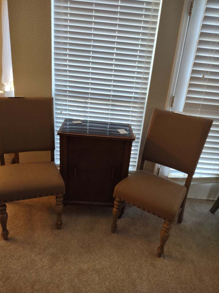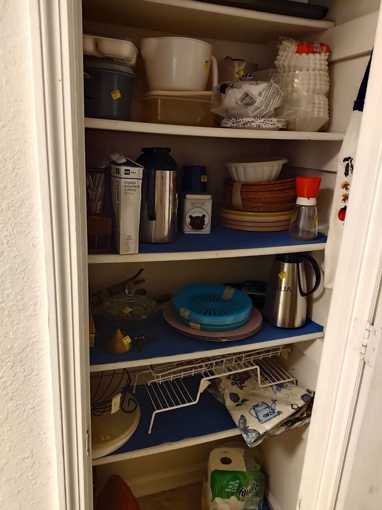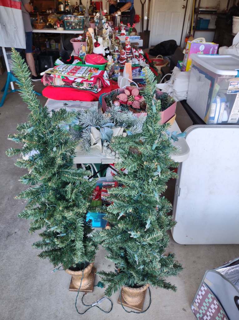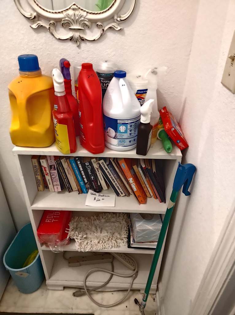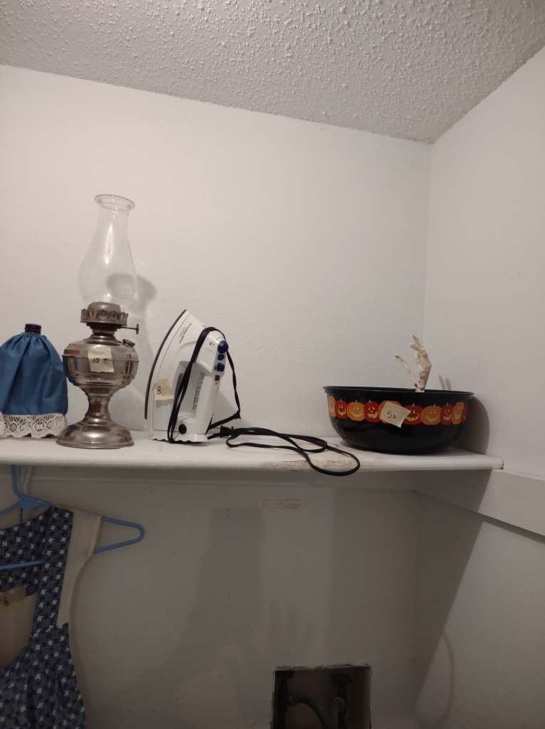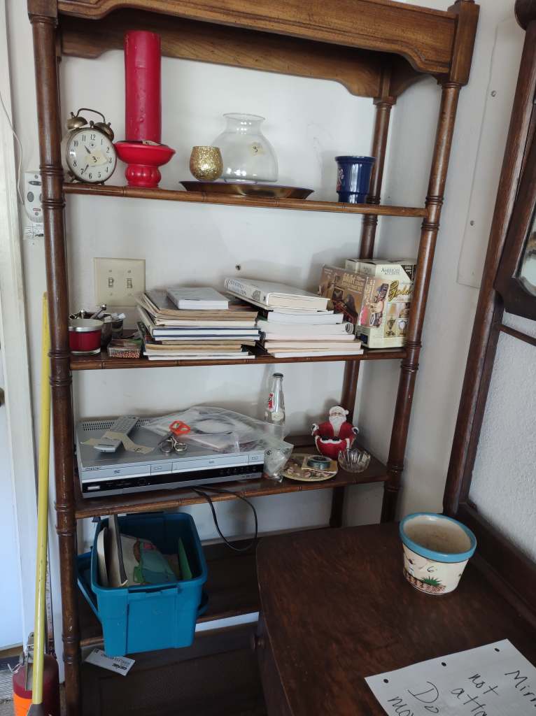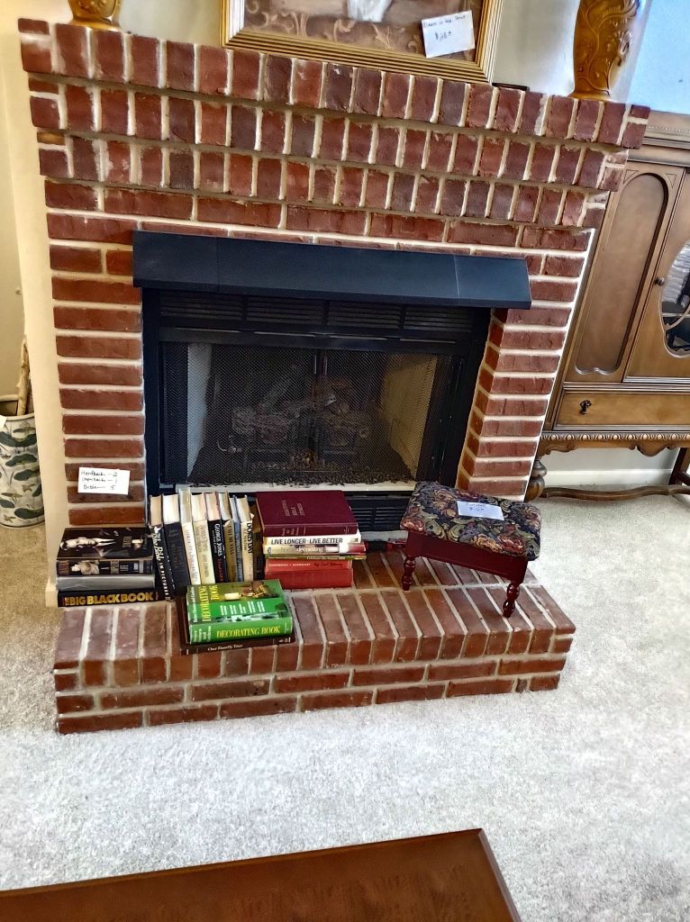 This house is full! You will find a Broyhill sofa and matching love seat, end tables, coffee table, Jacobean Dining table and 6 chairs, large buffet, server and China cabinet, bar stools, 4 Taupe colored Parsons chairs, Barrister Bookcase (2 stack), round small empire table, stocked kitchen, cast iron, small appliances, Notitake Vineyard China, few Depression glass pieces, costume jewelry, King Bedroom suite and Mattress and Box Springs, Full size bed and chest with ship on it, Antique Iron bed, oak wash stand, oak dresser, Bedding of all sizes, Christmas decor, oil paintings and prints, Antique Oak Mantle clock, Antique wall clock, Assorted lamps, small writing desk and chair, small display case and so much more! Come see us !
