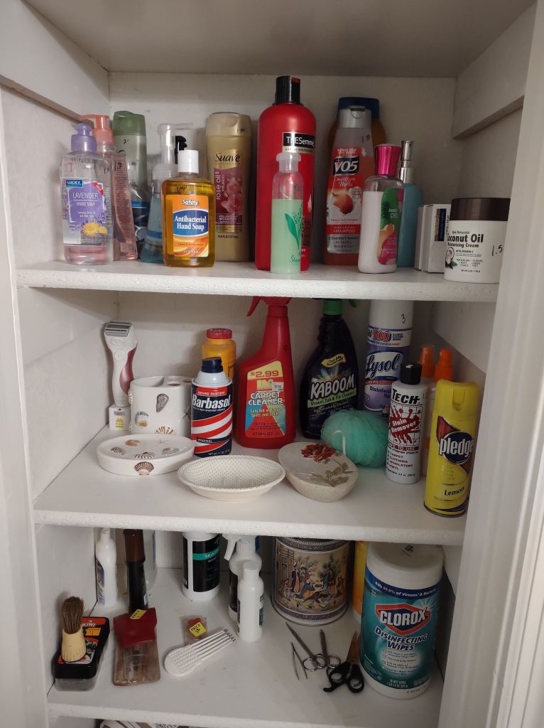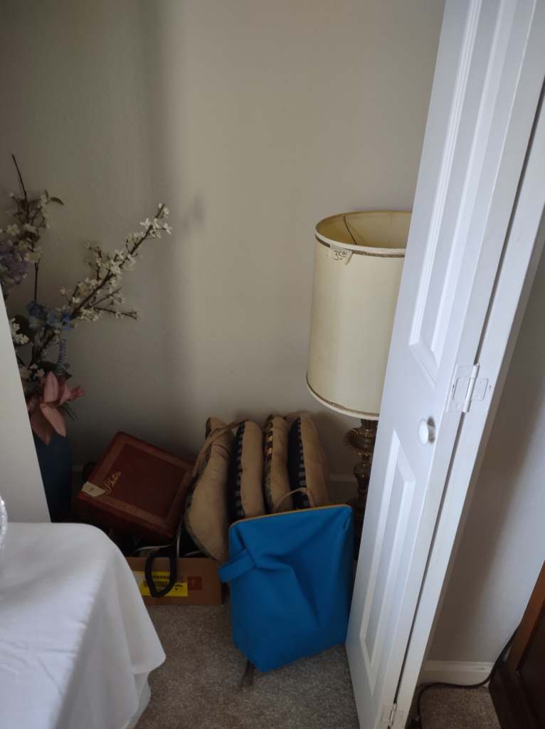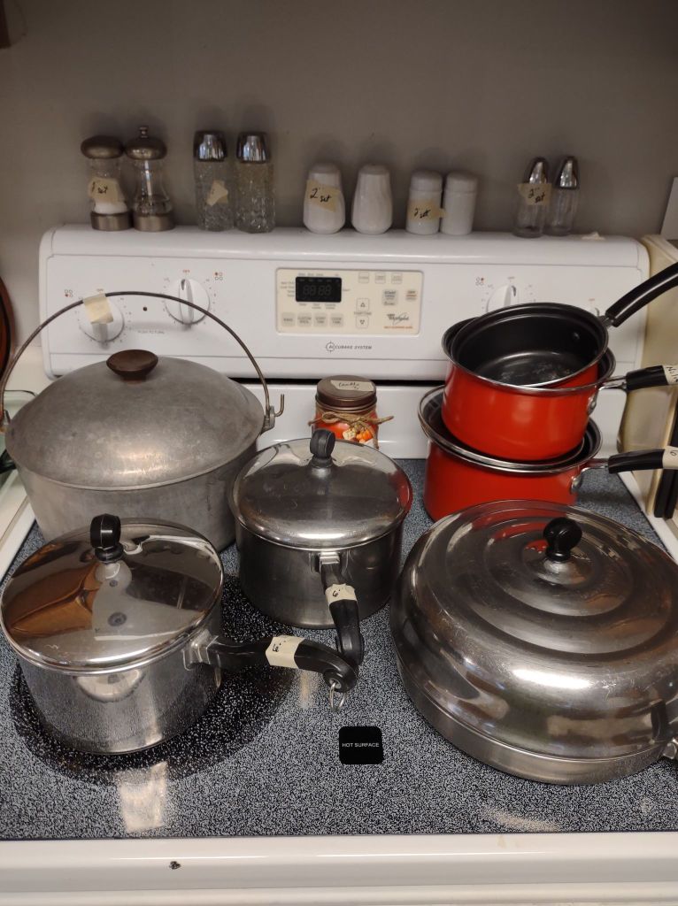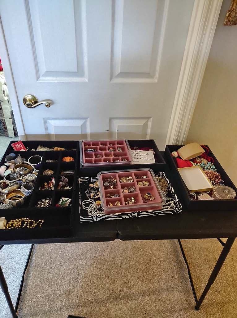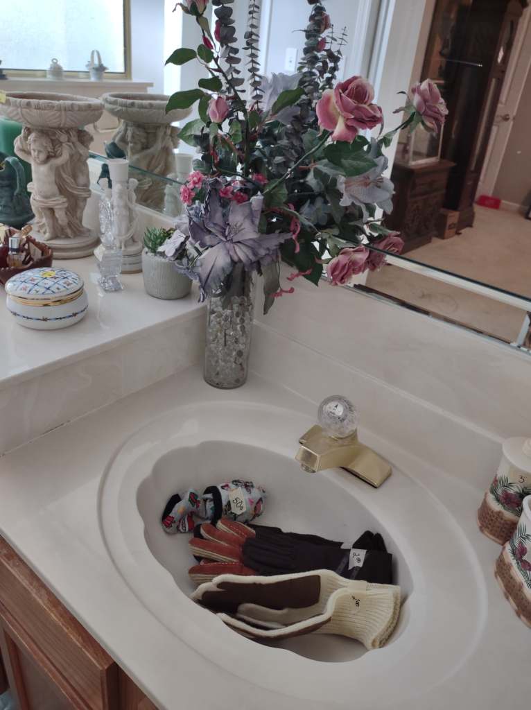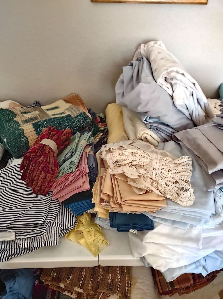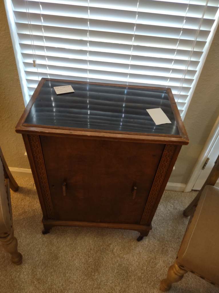 This house is full! You will find a Broyhill sofa and matching love seat, end tables, coffee table, Jacobean Dining table and 6 chairs, large buffet, server and China cabinet, bar stools, 4 Taupe colored Parsons chairs, Barrister Bookcase (2 stack), round small empire table, stocked kitchen, cast iron, small appliances, Notitake Vineyard China, few Depression glass pieces, costume jewelry, King Bedroom suite and Mattress and Box Springs, Full size bed and chest with ship on it, Antique Iron bed, oak wash stand, oak dresser, Bedding of all sizes, Christmas decor, oil paintings and prints, Antique Oak Mantle clock, Antique wall clock, Assorted lamps, small writing desk and chair, small display case and so much more! Come see us !