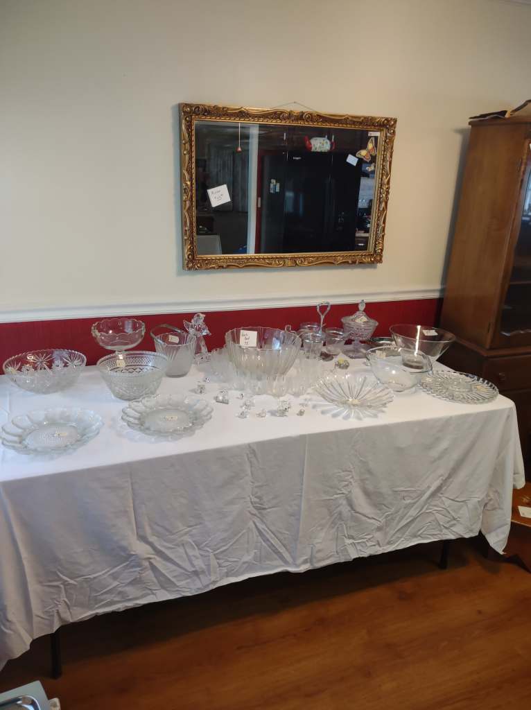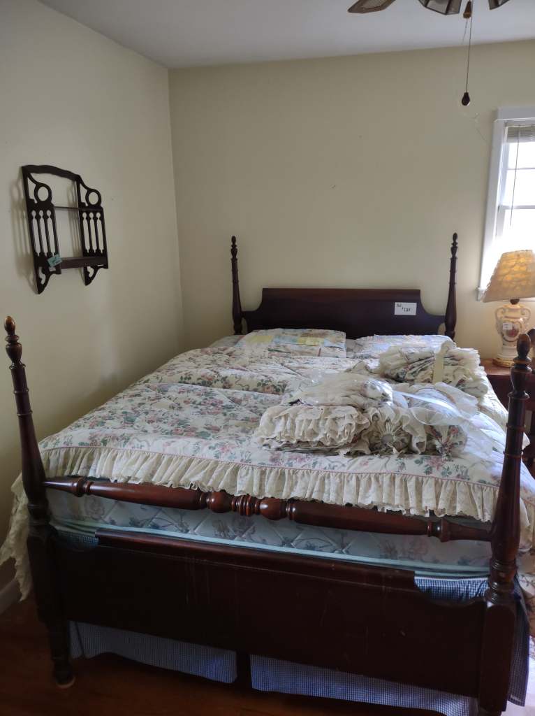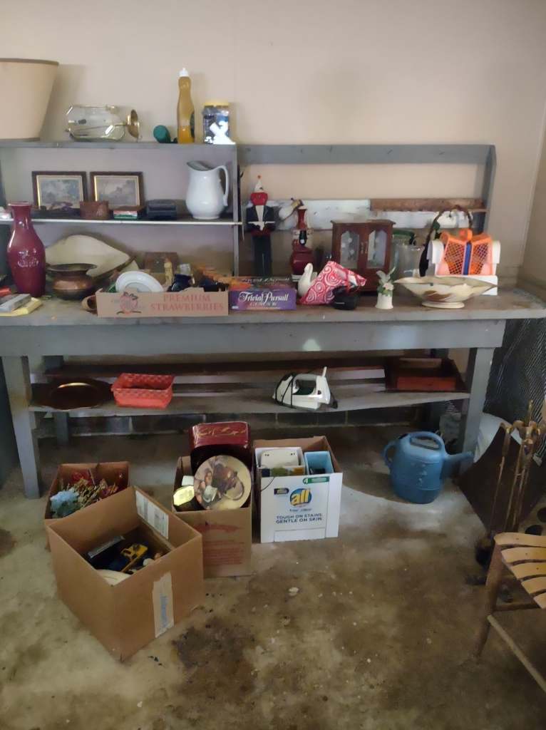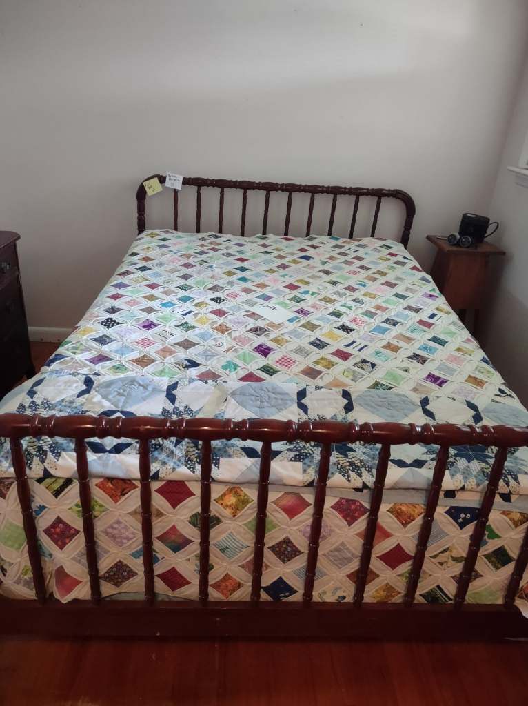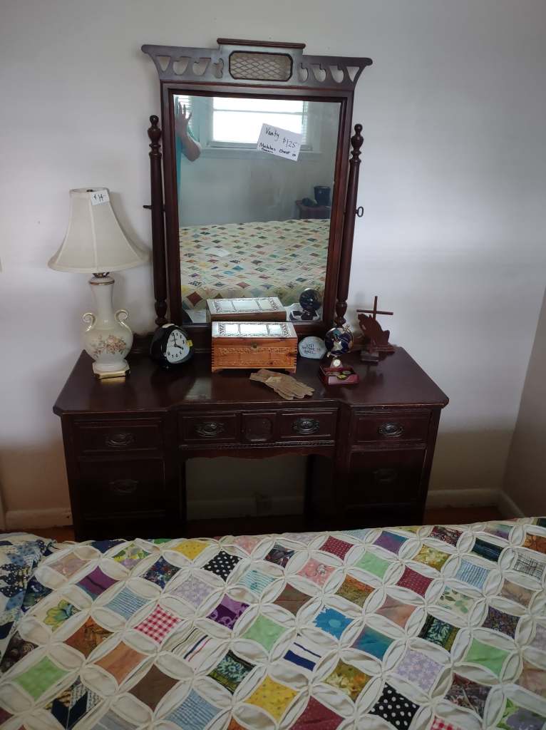 In this cute Brick house across from the High School you will find…Antique sofas, Wingback chairs, Nice Traditional sofa, Dining Room Table and chairs, Buffet, China Cabinet, Curio Cabinet, Fransician Ivy, Assorted Lamps Tables, Glassware, Pictures, Books, Linens, Chairs, Several pieces that would be great for painting, Amanda Washer(almost new), Kenmore Dryer, Small Chest Freezer, Beautiful Cathedral Windows quilt and pillow, Beautiful Black Cherry Antique Bedroom suite, Black Cherry Desk, Mahogany Bed, chest and Dresser, Vanity, another Full size Antique bed, lots of Costume Jewelry, Kitchen items, huge Bell Collection, small grill, Cast Iron Table and 2 Chairs, Cast Iron Bench, New Gime sewing Machine in a Cabinet, small appliances, exercise equipment, Hutch (2) and lots more! Come see us in Arab!