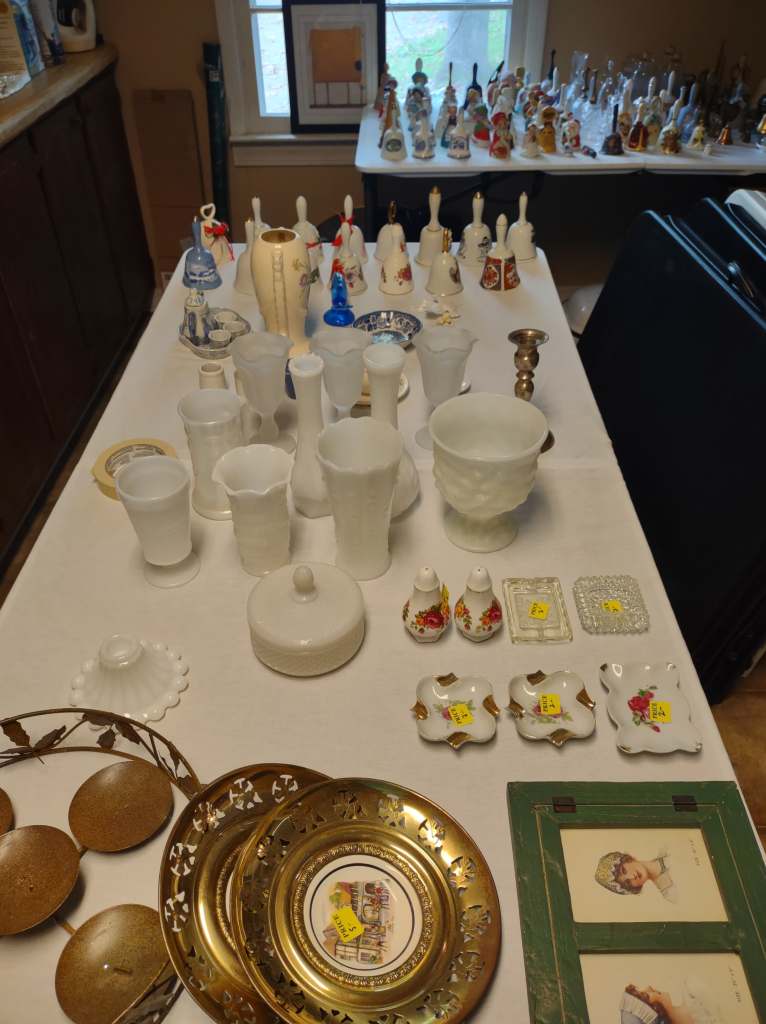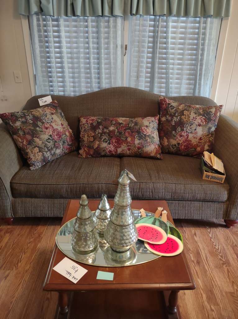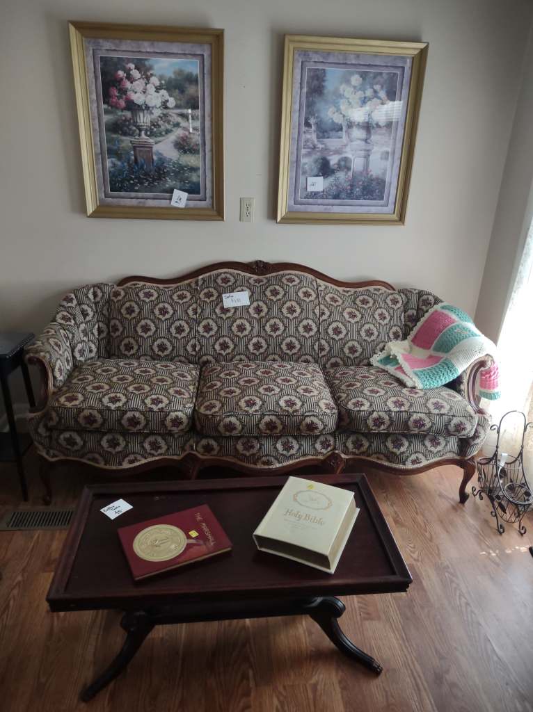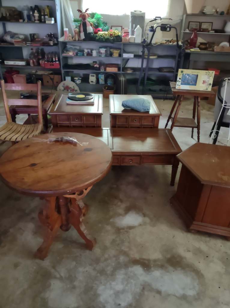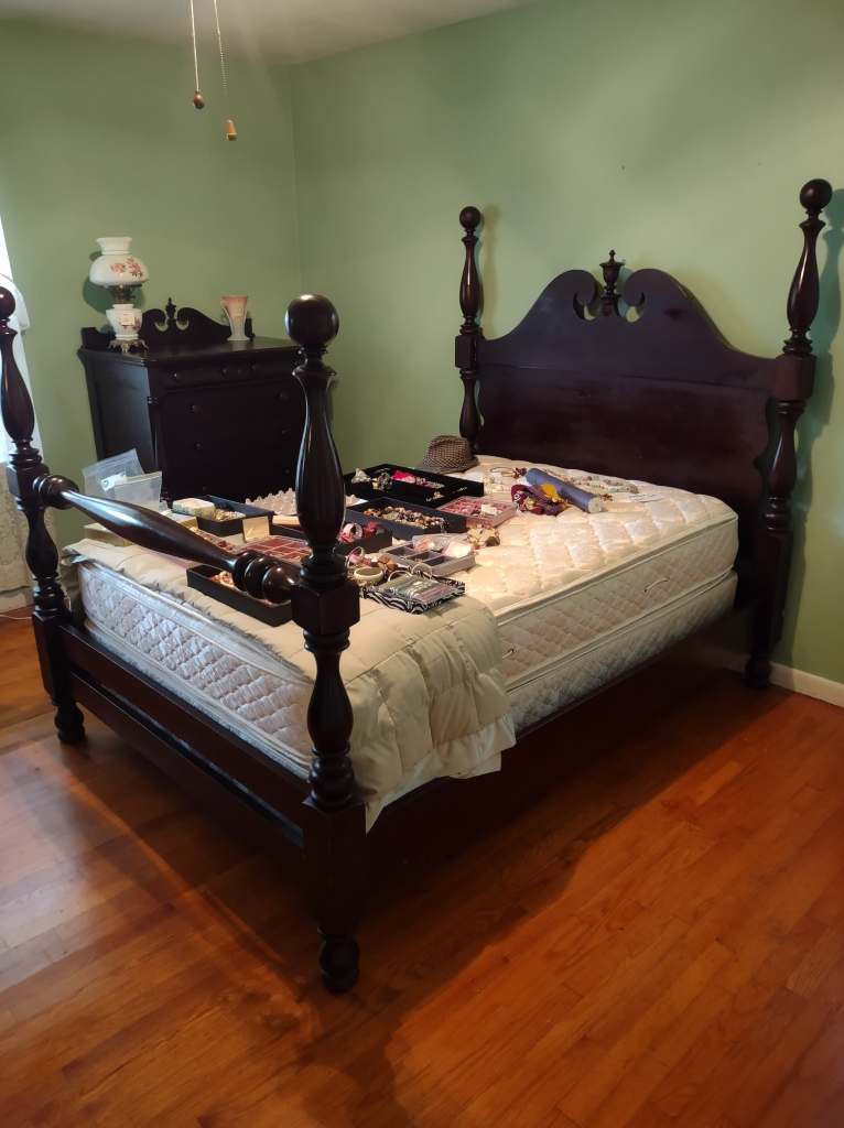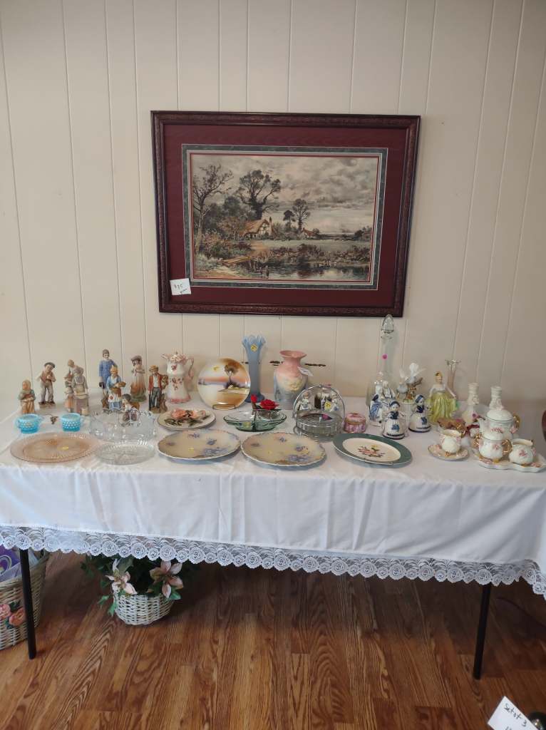 In this cute Brick house across from the High School you will find…Antique sofas, Wingback chairs, Nice Traditional sofa, Dining Room Table and chairs, Buffet, China Cabinet, Curio Cabinet, Fransician Ivy, Assorted Lamps Tables, Glassware, Pictures, Books, Linens, Chairs, Several pieces that would be great for painting, Amanda Washer(almost new), Kenmore Dryer, Small Chest Freezer, Beautiful Cathedral Windows quilt and pillow, Beautiful Black Cherry Antique Bedroom suite, Black Cherry Desk, Mahogany Bed, chest and Dresser, Vanity, another Full size Antique bed, lots of Costume Jewelry, Kitchen items, huge Bell Collection, small grill, Cast Iron Table and 2 Chairs, Cast Iron Bench, New Gime sewing Machine in a Cabinet, small appliances, exercise equipment, Hutch (2) and lots more! Come see us in Arab!