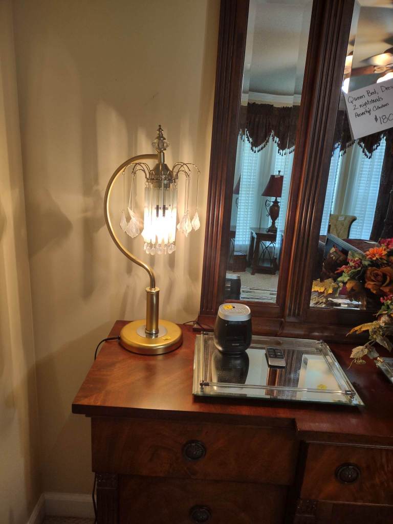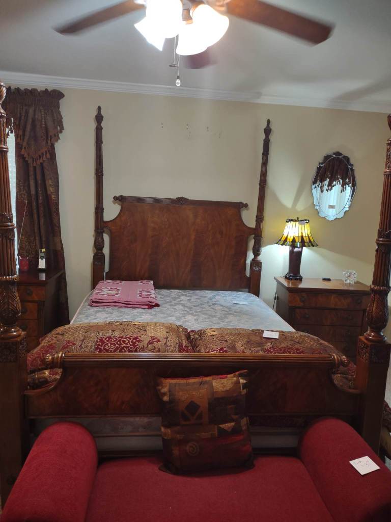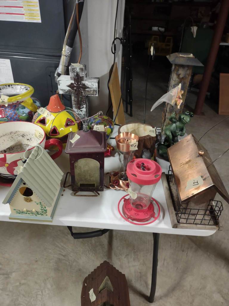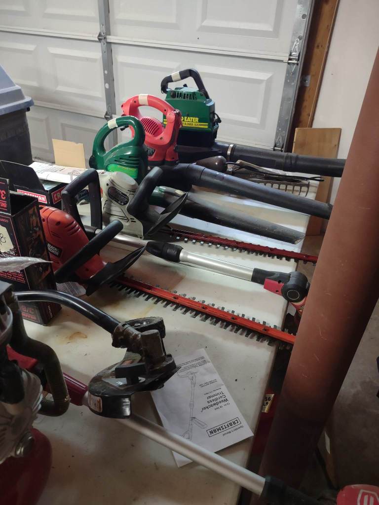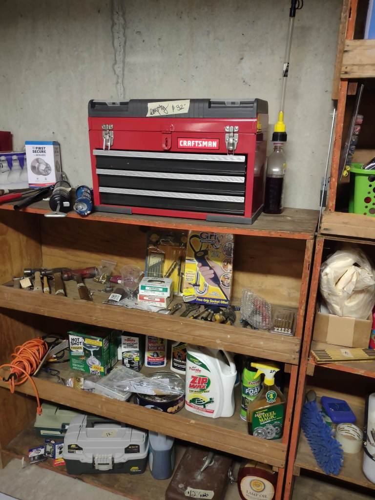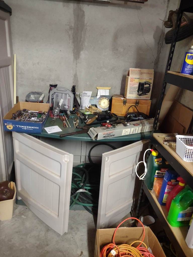 In this lovely home you will find a beautiful Havertys Queen Bedroom, upholstered bench, Sofa and matching Lazyboy recliners, matching Coffee table and end tables, large Mirror and matching sconces, Drop leaf Dining Room Table and chairs, China Cabinet, and beautiful Tea Cart, 3 Bar stools, Stocked Kitchen, great cookware by Kitchen Aid and Anolon, Corning ware, Cast Iron, Corelle, Fruit Cannisters and dishes, Small appliances, Game Table and 4 chairs, Glider rocker, Large Hutch, Queen bed and Mattress, Triple Dresser, nightstands, assorted Lamps end tables art work rugs and Floral arrangements, several radio turntable combos, portable Singer Sewing Machine, 2 Oreck vaccum cleaner and small hand held also, Luggage, Linens, good towels, Armoire, Gentleman’s Valet, Lift bed, Small Desk and chair, 2 Infrared heaters, Cds, DVDs and tapes ..lots of Gospel, 3 Wicker Settees, Wicker End Tables, porch bench, Battery charger, Jump Station charger, Welso exercise walker, Homelite chainsaw, Circular saw, Craftsman 2 gallon 1 1/2 HP air compressor, Craftsman Gas weed eater and Hedge Trimmer, Small gas grill, Vintage table and chairs, planters,bird houses, Storage cabinets tall and a short one, storage shelving, Wheelbarrow, Dorm Fridge, Pole saw, 2 Wrought iron Bouncy chairs, outdoor decor, Christmas and Halloween and Easter decor, medical equipment, and the Largest Train collection we’ve ever had!!
