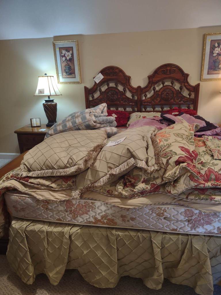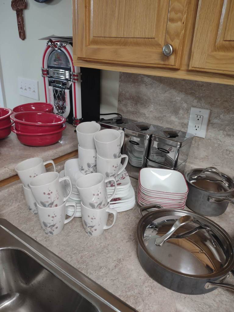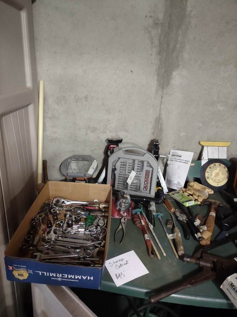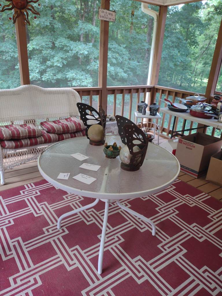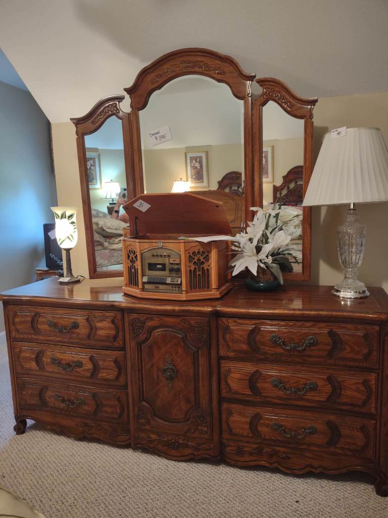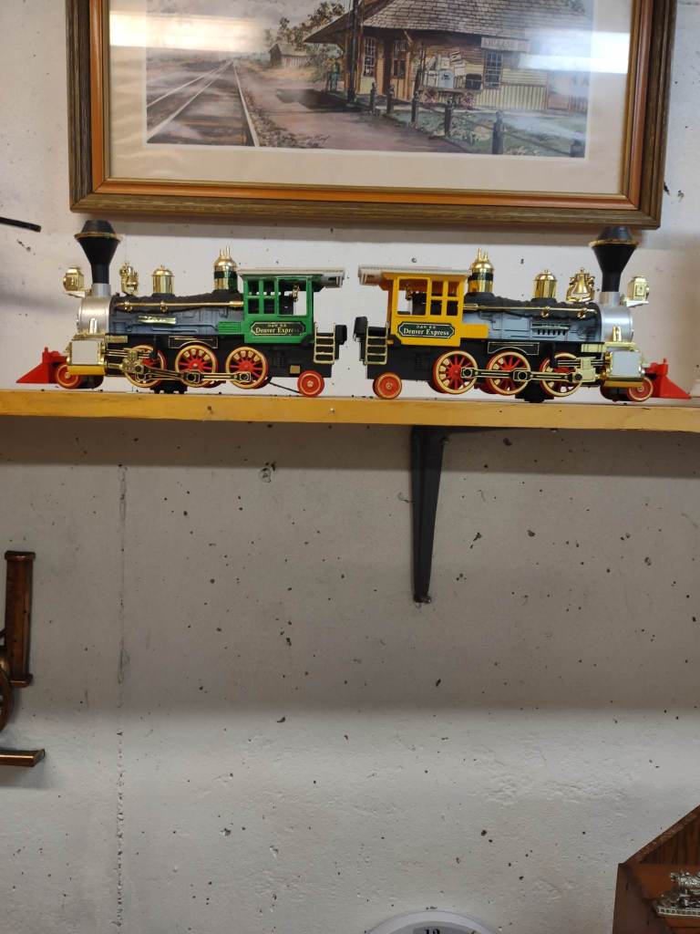 In this lovely home you will find a beautiful Havertys Queen Bedroom, upholstered bench, Sofa and matching Lazyboy recliners, matching Coffee table and end tables, large Mirror and matching sconces, Drop leaf Dining Room Table and chairs, China Cabinet, and beautiful Tea Cart, 3 Bar stools, Stocked Kitchen, great cookware by Kitchen Aid and Anolon, Corning ware, Cast Iron, Corelle, Fruit Cannisters and dishes, Small appliances, Game Table and 4 chairs, Glider rocker, Large Hutch, Queen bed and Mattress, Triple Dresser, nightstands, assorted Lamps end tables art work rugs and Floral arrangements, several radio turntable combos, portable Singer Sewing Machine, 2 Oreck vaccum cleaner and small hand held also, Luggage, Linens, good towels, Armoire, Gentleman’s Valet, Lift bed, Small Desk and chair, 2 Infrared heaters, Cds, DVDs and tapes ..lots of Gospel, 3 Wicker Settees, Wicker End Tables, porch bench, Battery charger, Jump Station charger, Welso exercise walker, Homelite chainsaw, Circular saw, Craftsman 2 gallon 1 1/2 HP air compressor, Craftsman Gas weed eater and Hedge Trimmer, Small gas grill, Vintage table and chairs, planters,bird houses, Storage cabinets tall and a short one, storage shelving, Wheelbarrow, Dorm Fridge, Pole saw, 2 Wrought iron Bouncy chairs, outdoor decor, Christmas and Halloween and Easter decor, medical equipment, and the Largest Train collection we’ve ever had!!