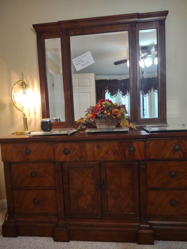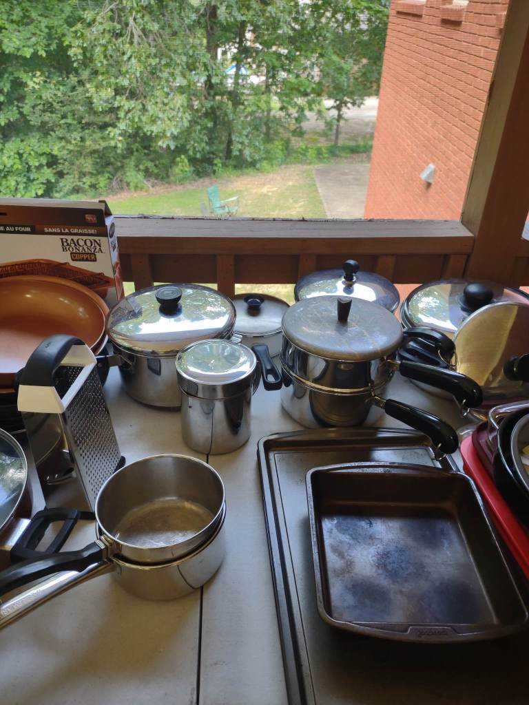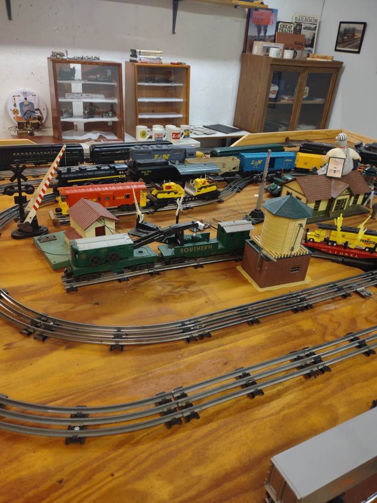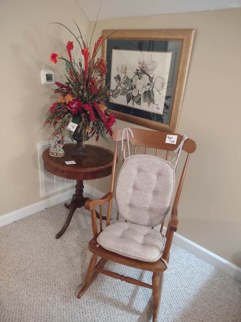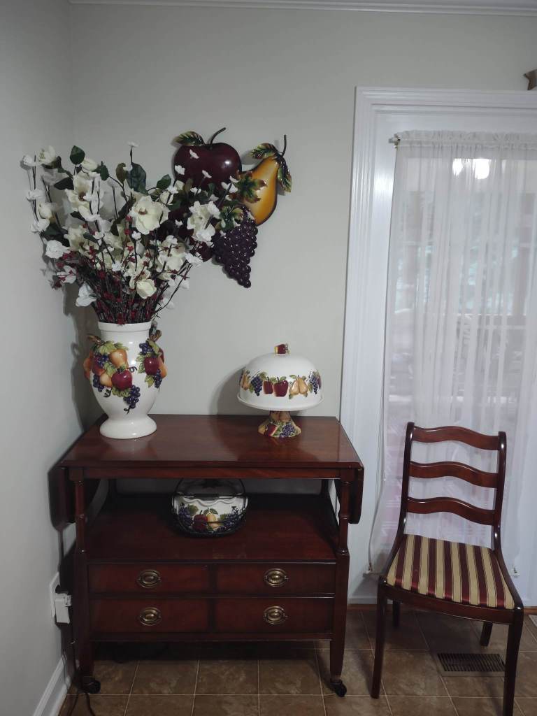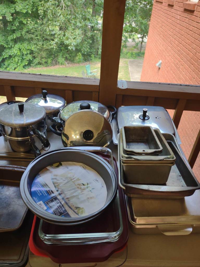 In this lovely home you will find a beautiful Havertys Queen Bedroom, upholstered bench, Sofa and matching Lazyboy recliners, matching Coffee table and end tables, large Mirror and matching sconces, Drop leaf Dining Room Table and chairs, China Cabinet, and beautiful Tea Cart, 3 Bar stools, Stocked Kitchen, great cookware by Kitchen Aid and Anolon, Corning ware, Cast Iron, Corelle, Fruit Cannisters and dishes, Small appliances, Game Table and 4 chairs, Glider rocker, Large Hutch, Queen bed and Mattress, Triple Dresser, nightstands, assorted Lamps end tables art work rugs and Floral arrangements, several radio turntable combos, portable Singer Sewing Machine, 2 Oreck vaccum cleaner and small hand held also, Luggage, Linens, good towels, Armoire, Gentleman’s Valet, Lift bed, Small Desk and chair, 2 Infrared heaters, Cds, DVDs and tapes ..lots of Gospel, 3 Wicker Settees, Wicker End Tables, porch bench, Battery charger, Jump Station charger, Welso exercise walker, Homelite chainsaw, Circular saw, Craftsman 2 gallon 1 1/2 HP air compressor, Craftsman Gas weed eater and Hedge Trimmer, Small gas grill, Vintage table and chairs, planters,bird houses, Storage cabinets tall and a short one, storage shelving, Wheelbarrow, Dorm Fridge, Pole saw, 2 Wrought iron Bouncy chairs, outdoor decor, Christmas and Halloween and Easter decor, medical equipment, and the Largest Train collection we’ve ever had!!
