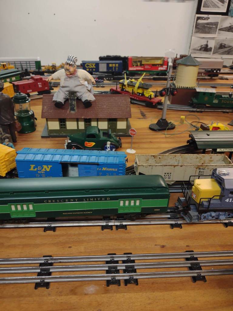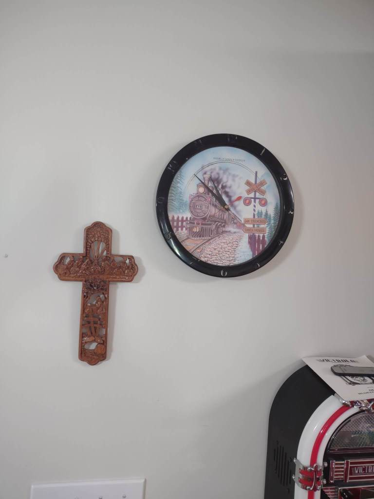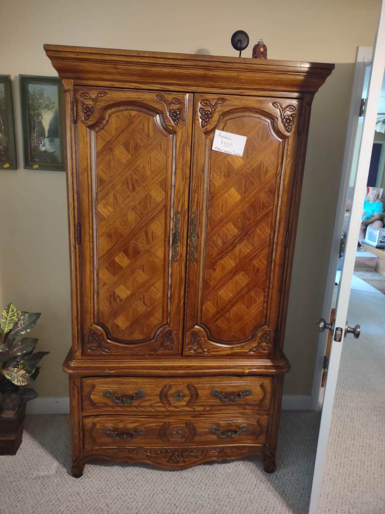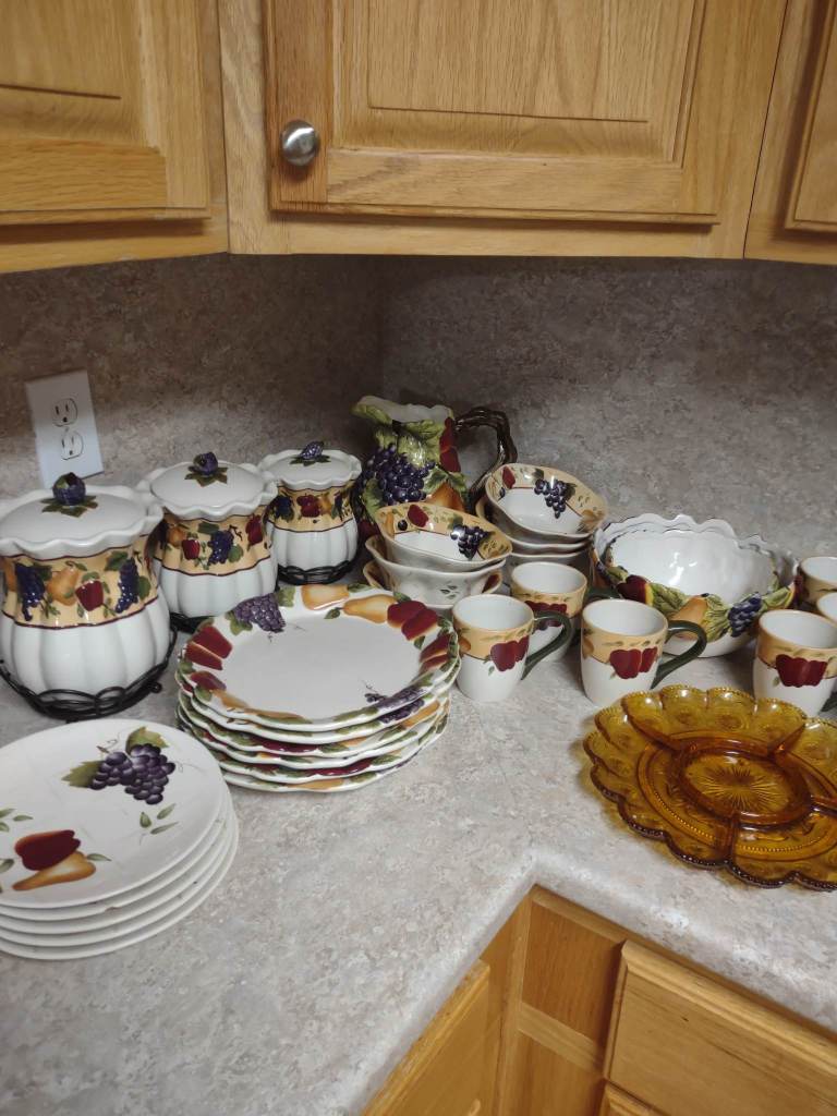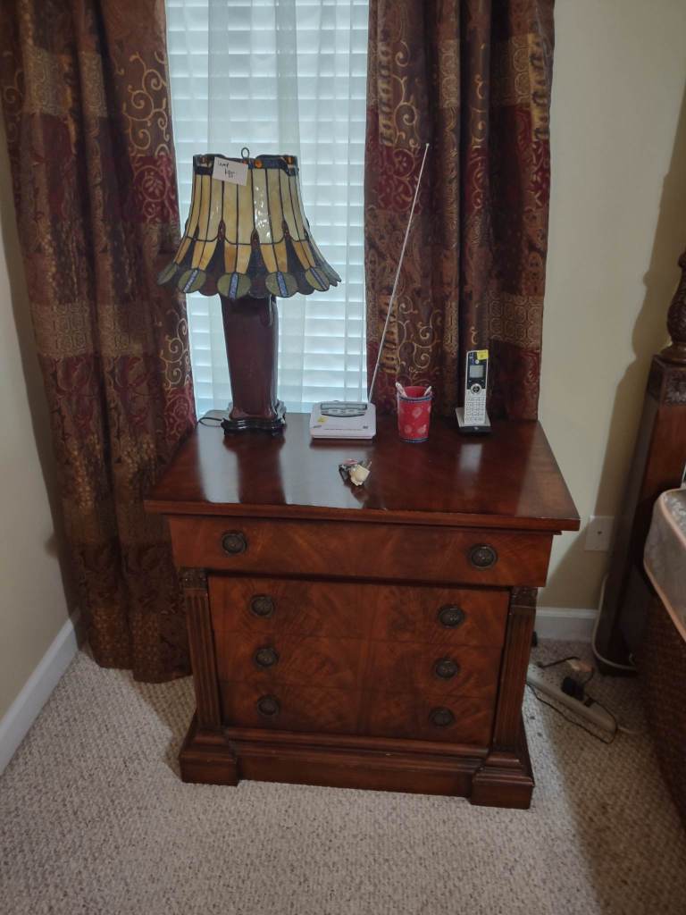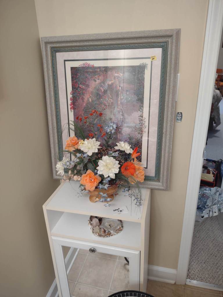 In this lovely home you will find a beautiful Havertys Queen Bedroom, upholstered bench, Sofa and matching Lazyboy recliners, matching Coffee table and end tables, large Mirror and matching sconces, Drop leaf Dining Room Table and chairs, China Cabinet, and beautiful Tea Cart, 3 Bar stools, Stocked Kitchen, great cookware by Kitchen Aid and Anolon, Corning ware, Cast Iron, Corelle, Fruit Cannisters and dishes, Small appliances, Game Table and 4 chairs, Glider rocker, Large Hutch, Queen bed and Mattress, Triple Dresser, nightstands, assorted Lamps end tables art work rugs and Floral arrangements, several radio turntable combos, portable Singer Sewing Machine, 2 Oreck vaccum cleaner and small hand held also, Luggage, Linens, good towels, Armoire, Gentleman’s Valet, Lift bed, Small Desk and chair, 2 Infrared heaters, Cds, DVDs and tapes ..lots of Gospel, 3 Wicker Settees, Wicker End Tables, porch bench, Battery charger, Jump Station charger, Welso exercise walker, Homelite chainsaw, Circular saw, Craftsman 2 gallon 1 1/2 HP air compressor, Craftsman Gas weed eater and Hedge Trimmer, Small gas grill, Vintage table and chairs, planters,bird houses, Storage cabinets tall and a short one, storage shelving, Wheelbarrow, Dorm Fridge, Pole saw, 2 Wrought iron Bouncy chairs, outdoor decor, Christmas and Halloween and Easter decor, medical equipment, and the Largest Train collection we’ve ever had!!