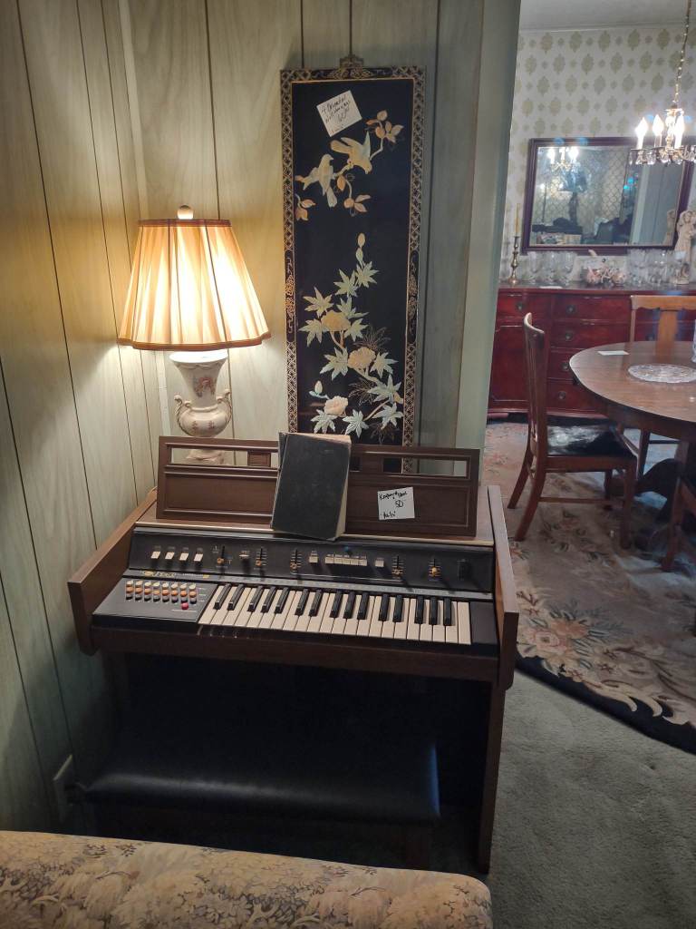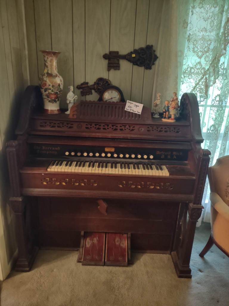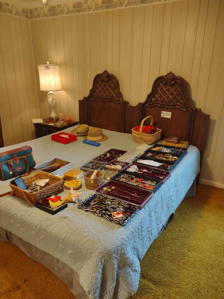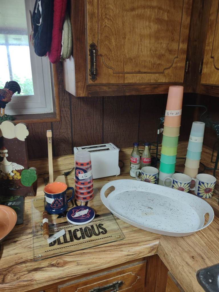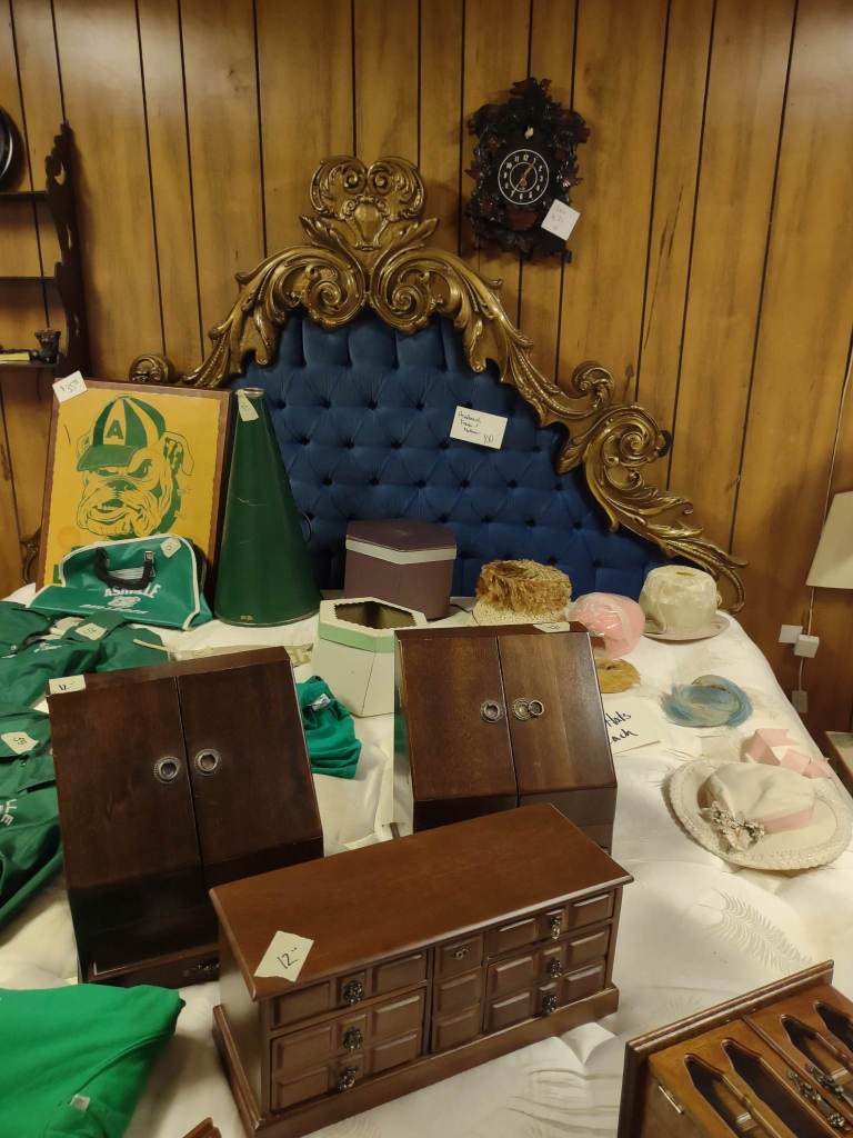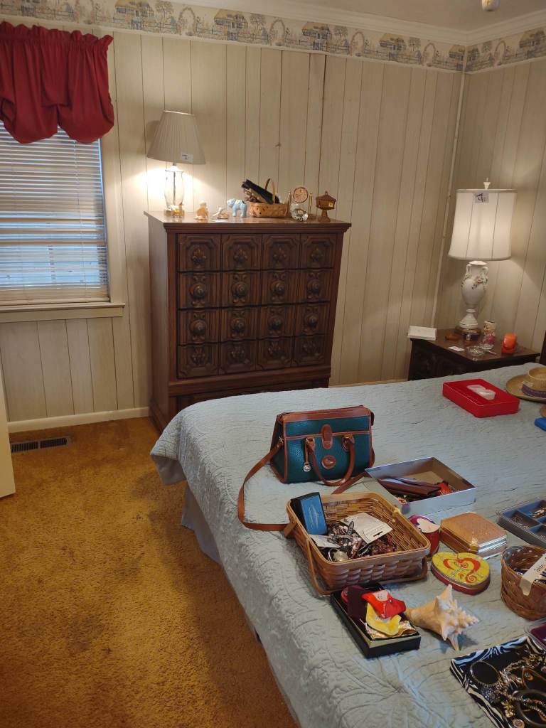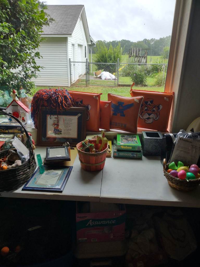 In this home you will find many antique pieces from a prominent Ashville family including an Oak Table and chairs, China Cabinet, Mahogany buffet, Glass front Bookcase, Handmade wooden bookcase, Antique Pump Organ, 2 keyboards, Antique sofas chairs and tables, matching marble top tables, Oriental vases, assorted Lamps, Ladderback chairs, rugs, Pottery bowls and churn, Kitchen table and chairs, White Refrigerator, Washer/Dryer, Cannisters sets, Wicker Sofa and Coffee Table, Oak Rocker and Stool, Lots of Christmas decor, frames galore, Wicker Bookcase, Patio Table and Chairs, Seashells of all sizes, Den Sofa and loveseat, Fender Electric Guitar, small Amps Crate and Silverstone, Ashville High School Yearbooks, knickknacks, *Ernest Mostella handmade baskets, broom, Fiddle and Bow and Guitar, churns, jugs, end tables, Vintage clothing, Vacuum, Vintage metal bed, Antique rocker and dresser, music boxes, old wooden boxes, Vintage toys and dolls, AHS memorabilia, Auburn memorabilia, Linens galore, sheets, towels, King Headboard and frame, dresser and chest, desk, TVs, Jewelry boxes, Costume Jewelry, Gunrack, Small Curio, Black Refrigerator, Lift chairs, Lazyboy recliner, Chair and Ottoman, Oak Antique Piano, Oak Dresser, Chifforobe, huge storage shelf and huge desk, 6 drawer chest, Books, Vintage hats, Velvet Headboard and frame, Singer black sewing machine and sewing items, yellow armoire, medical supplies, Freezer, Rokenbok Building system, DVDs, CDs, Wii games, puzzles, Bakers Rack, Wooden Picnic table, small band saw, grinder, fishing poles, hunting clothes and so much more!!
