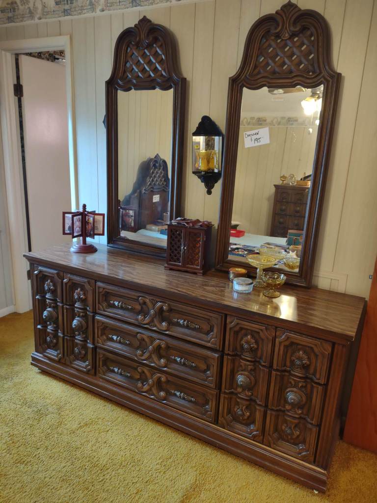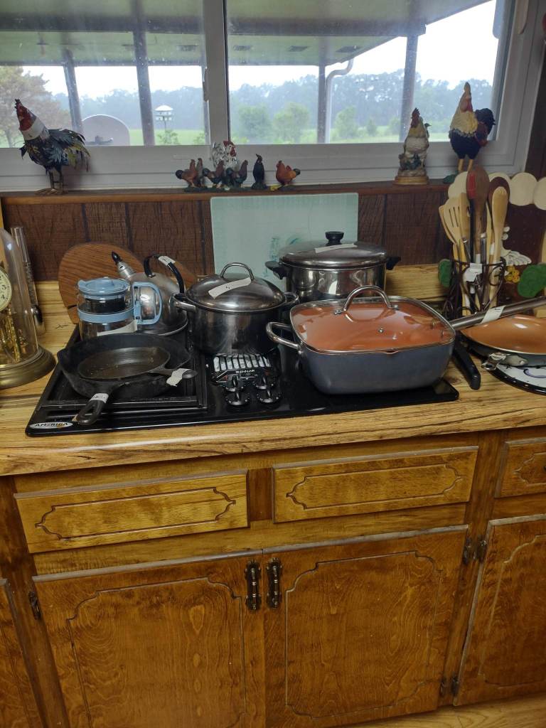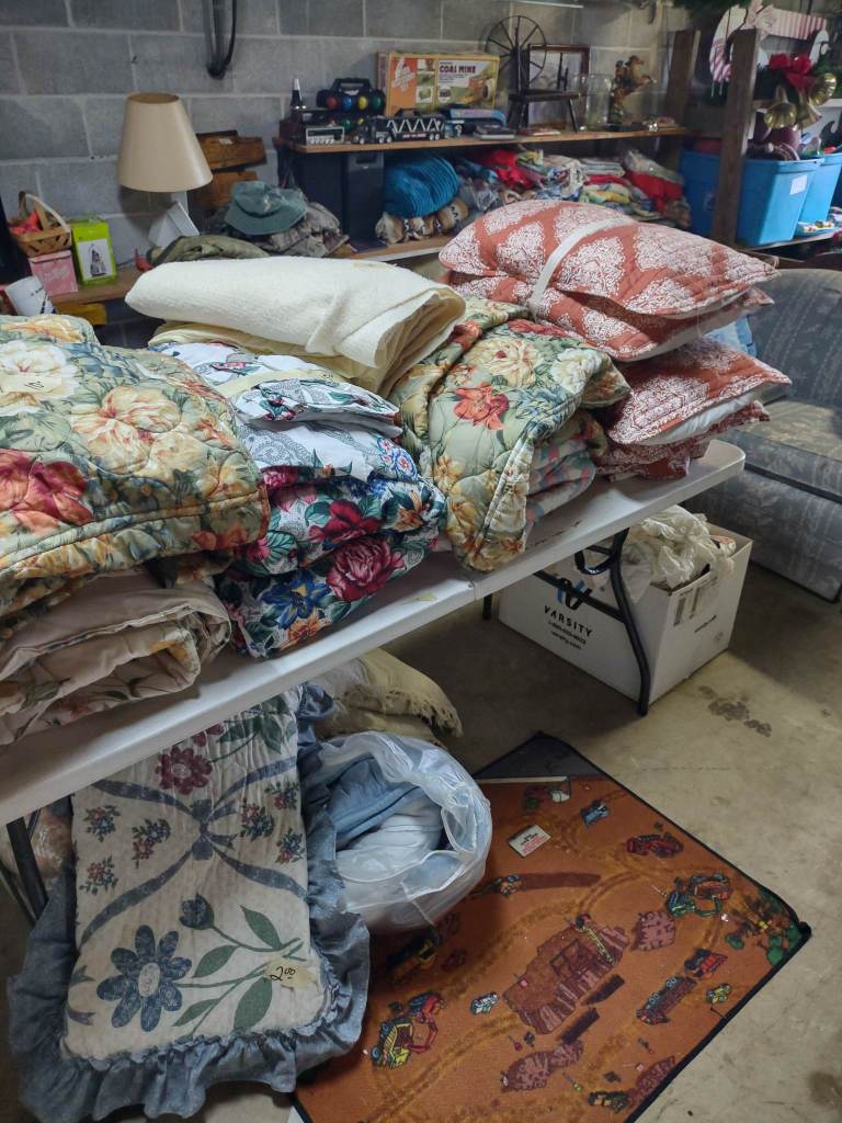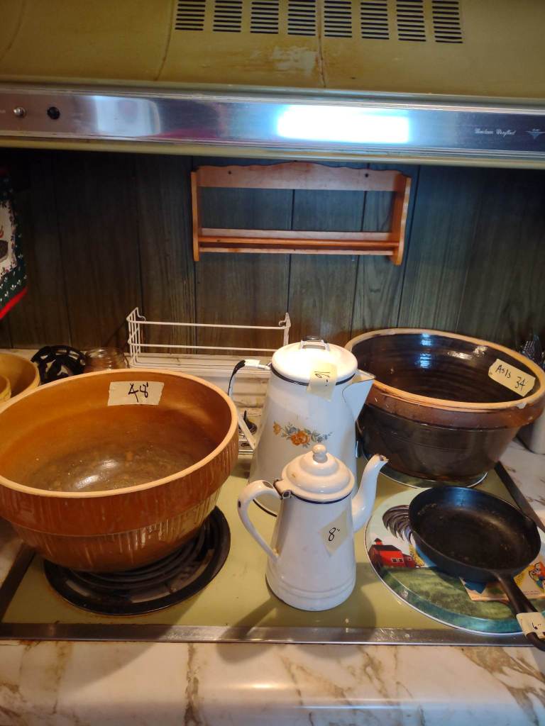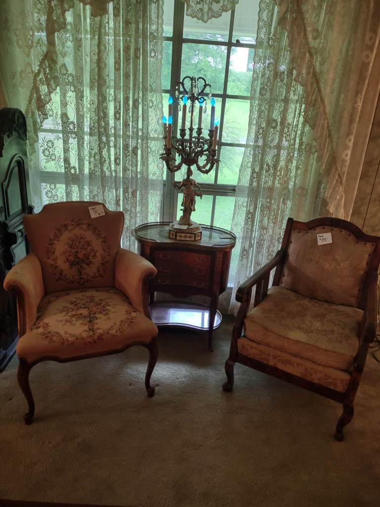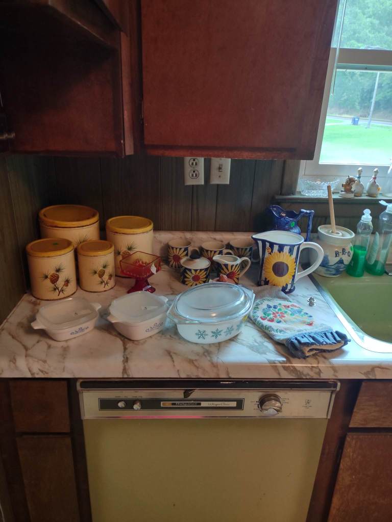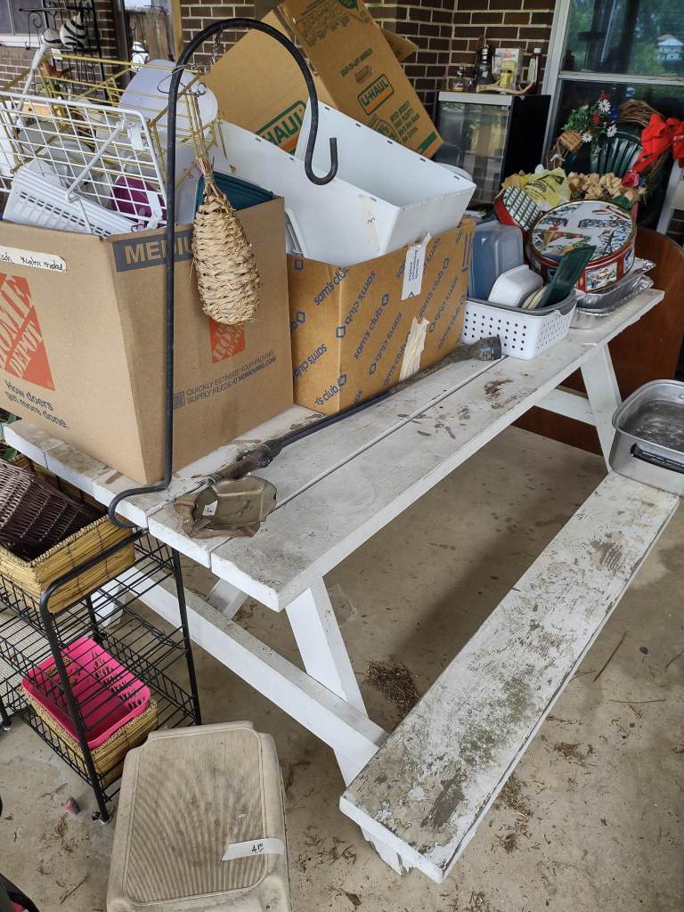 In this home you will find many antique pieces from a prominent Ashville family including an Oak Table and chairs, China Cabinet, Mahogany buffet, Glass front Bookcase, Handmade wooden bookcase, Antique Pump Organ, 2 keyboards, Antique sofas chairs and tables, matching marble top tables, Oriental vases, assorted Lamps, Ladderback chairs, rugs, Pottery bowls and churn, Kitchen table and chairs, White Refrigerator, Washer/Dryer, Cannisters sets, Wicker Sofa and Coffee Table, Oak Rocker and Stool, Lots of Christmas decor, frames galore, Wicker Bookcase, Patio Table and Chairs, Seashells of all sizes, Den Sofa and loveseat, Fender Electric Guitar, small Amps Crate and Silverstone, Ashville High School Yearbooks, knickknacks, *Ernest Mostella handmade baskets, broom, Fiddle and Bow and Guitar, churns, jugs, end tables, Vintage clothing, Vacuum, Vintage metal bed, Antique rocker and dresser, music boxes, old wooden boxes, Vintage toys and dolls, AHS memorabilia, Auburn memorabilia, Linens galore, sheets, towels, King Headboard and frame, dresser and chest, desk, TVs, Jewelry boxes, Costume Jewelry, Gunrack, Small Curio, Black Refrigerator, Lift chairs, Lazyboy recliner, Chair and Ottoman, Oak Antique Piano, Oak Dresser, Chifforobe, huge storage shelf and huge desk, 6 drawer chest, Books, Vintage hats, Velvet Headboard and frame, Singer black sewing machine and sewing items, yellow armoire, medical supplies, Freezer, Rokenbok Building system, DVDs, CDs, Wii games, puzzles, Bakers Rack, Wooden Picnic table, small band saw, grinder, fishing poles, hunting clothes and so much more!!