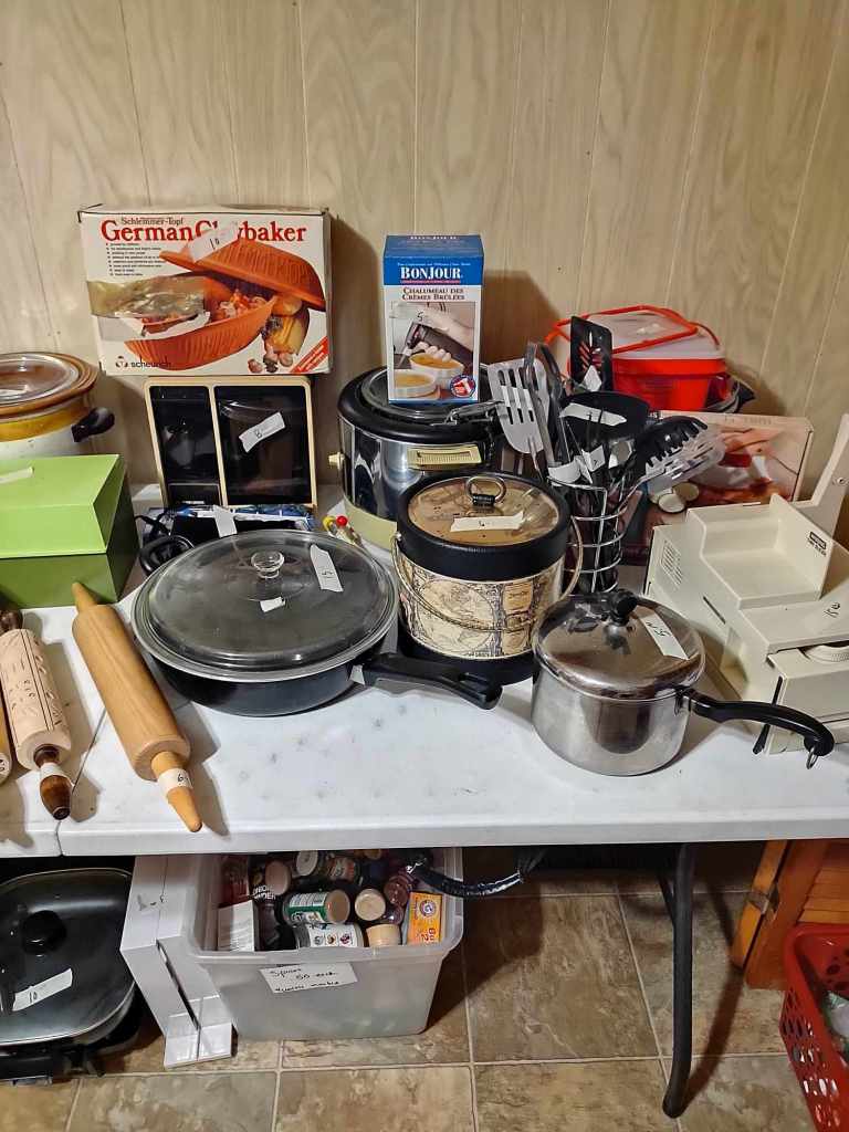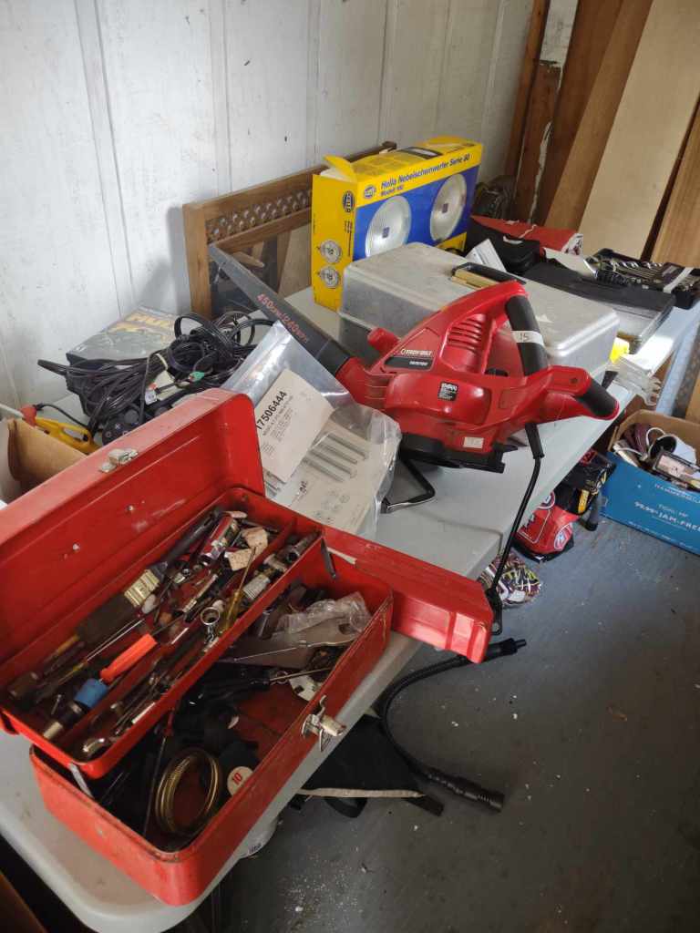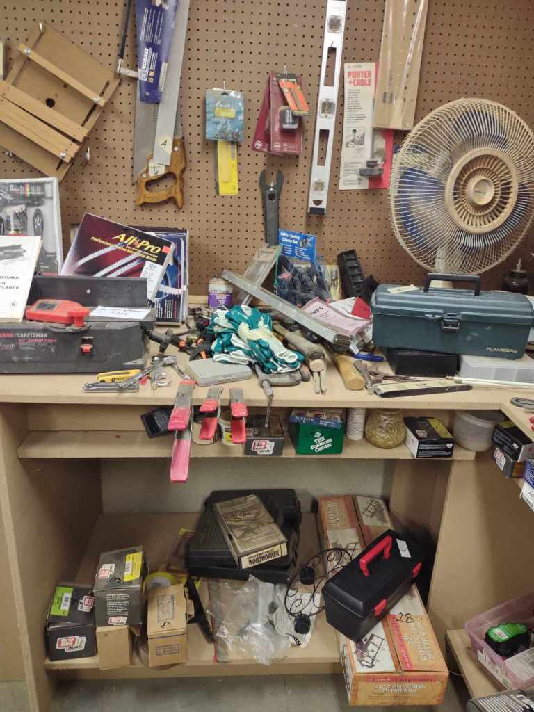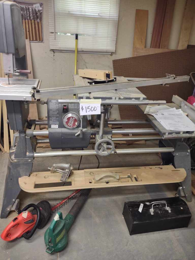 In this home you find a reclining leather loveseat, bar height table and 4 chairs, Kohler HD-30 Digital piano, Dining Room table and 6 chairs, China cabinet and small server, Stocked kitchen, Rebel Program Elliptical Crosstrainer, Bowflex, Skier machine, Rowing machine, Man size Recliner, White Frigidaire Fridge, freezer, Small appliances, lots of electronic equipment including Sony Digital control center and set of speakers, Teac X200R reel to reel, Sansui audio including the cabinet, Whirlpool Washer and dryer, Christmas, Clothes, purses, shoes, women’s hats, bookcases, large office desk, office supplies, office chairs, filing cabinets, printers, small Canon copier, Lamps, assorted speakers, TVs, Q mattress and frame, K mattress and frame, Dresser, Chest, Bedding, lots of books, Singer sewing machine, travel memorabilia, Kitchenade Stand Mixer, cast iron and more. In the shop you will find great wood working tools including Craftsman 3.0 Tablesaw..planer ..10 in. Radial saw..Super router..4 1/8 joiner/planer..Belt And Disc sander and a Laser compound mitre saw, Shop Smith Lathe and Shop Smith DC 3300 Vac, Leigh Dovetail jig, Dremel Scroll saw, Biscuit joiner, Compound mitre box, assorted tools of all kinds, jigs of all sizes, large see storage cabinet, Generac Pressure washer, Bridgestone Men’s bike, ladders, smokers, hand tools, red wagon and so much more!!