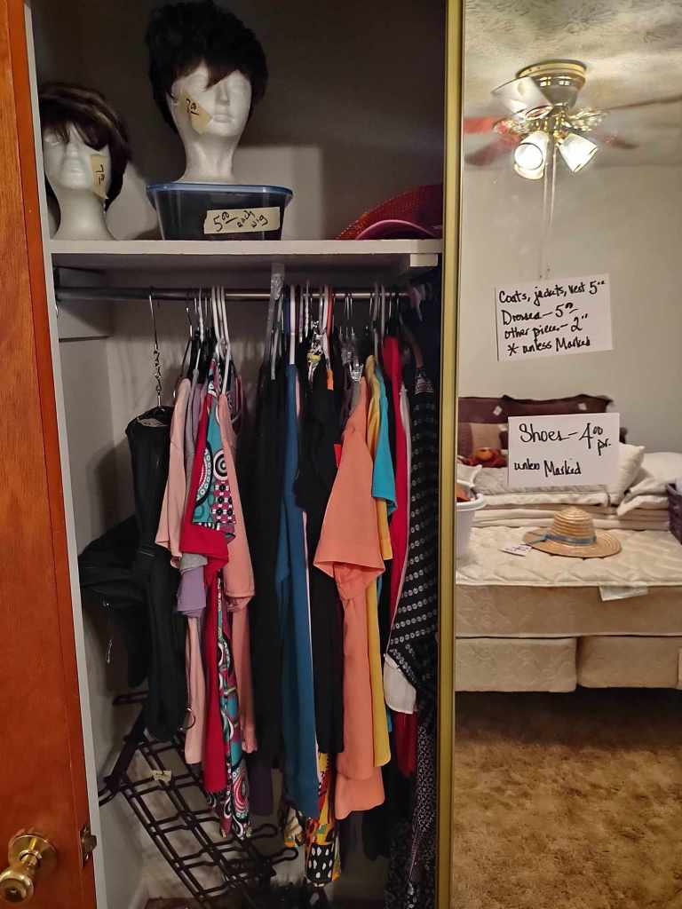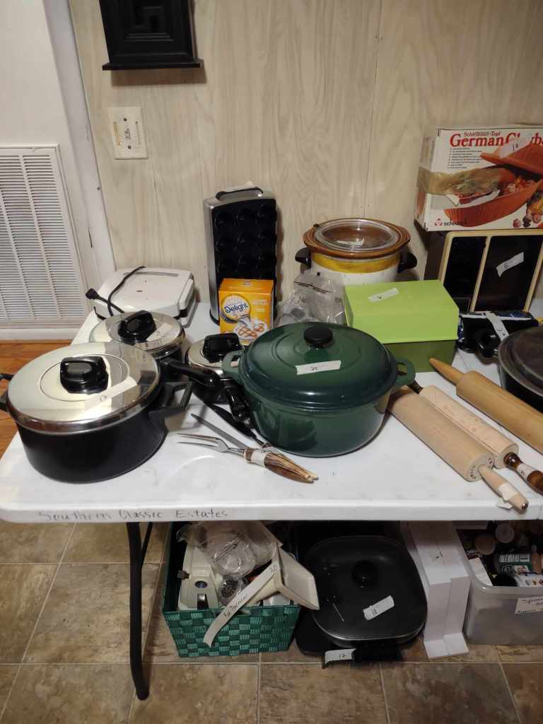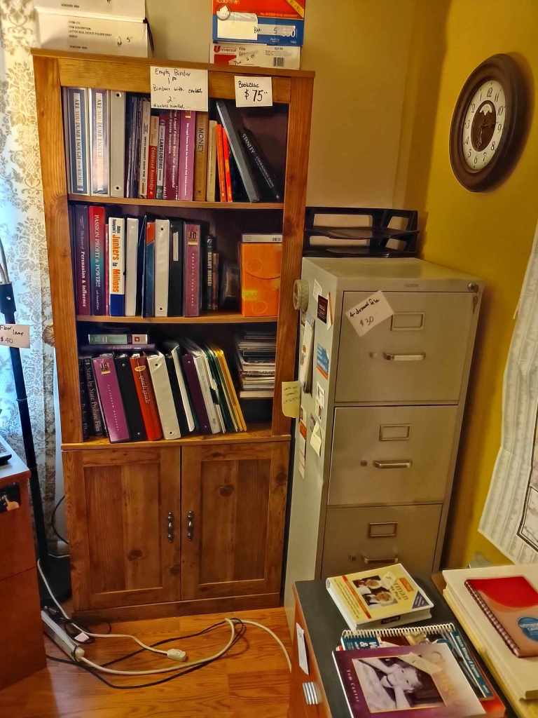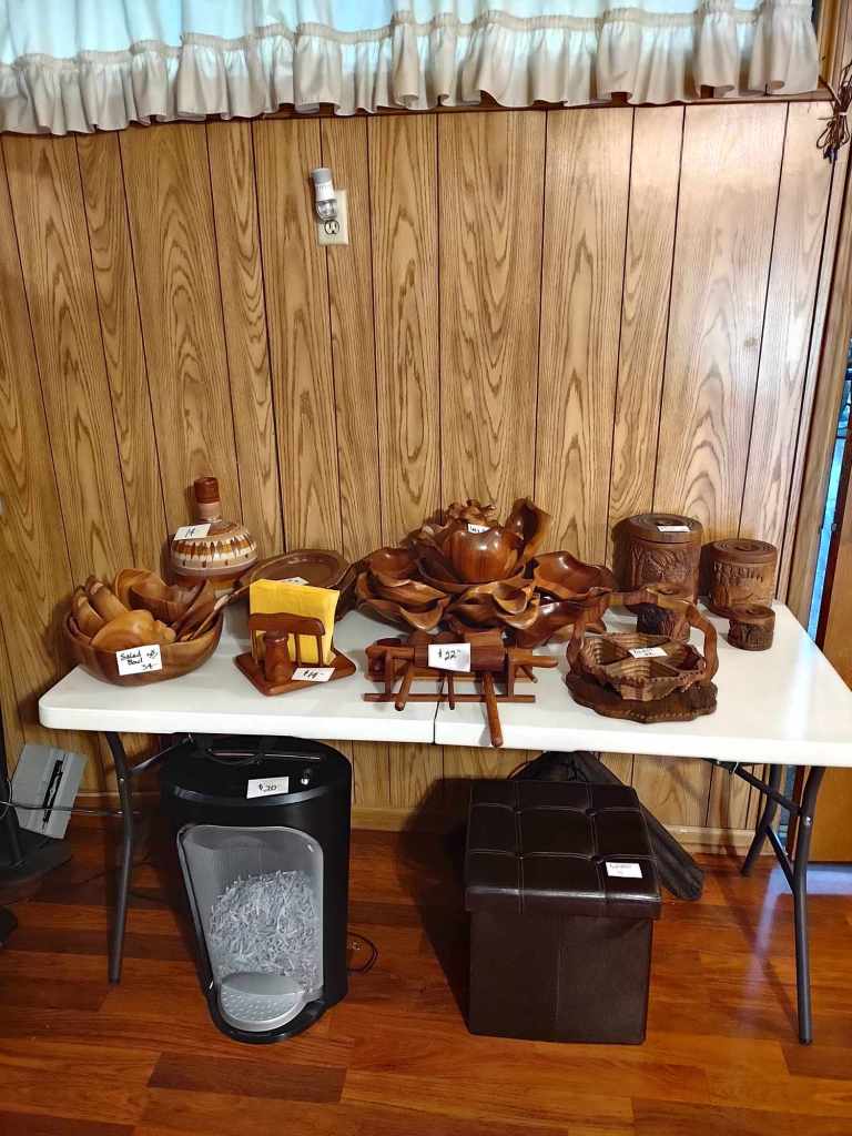 In this home you find a reclining leather loveseat, bar height table and 4 chairs, Kohler HD-30 Digital piano, Dining Room table and 6 chairs, China cabinet and small server, Stocked kitchen, Rebel Program Elliptical Crosstrainer, Bowflex, Skier machine, Rowing machine, Man size Recliner, White Frigidaire Fridge, freezer, Small appliances, lots of electronic equipment including Sony Digital control center and set of speakers, Teac X200R reel to reel, Sansui audio including the cabinet, Whirlpool Washer and dryer, Christmas, Clothes, purses, shoes, women’s hats, bookcases, large office desk, office supplies, office chairs, filing cabinets, printers, small Canon copier, Lamps, assorted speakers, TVs, Q mattress and frame, K mattress and frame, Dresser, Chest, Bedding, lots of books, Singer sewing machine, travel memorabilia, Kitchenade Stand Mixer, cast iron and more. In the shop you will find great wood working tools including Craftsman 3.0 Tablesaw..planer ..10 in. Radial saw..Super router..4 1/8 joiner/planer..Belt And Disc sander and a Laser compound mitre saw, Shop Smith Lathe and Shop Smith DC 3300 Vac, Leigh Dovetail jig, Dremel Scroll saw, Biscuit joiner, Compound mitre box, assorted tools of all kinds, jigs of all sizes, large see storage cabinet, Generac Pressure washer, Bridgestone Men’s bike, ladders, smokers, hand tools, red wagon and so much more!!
