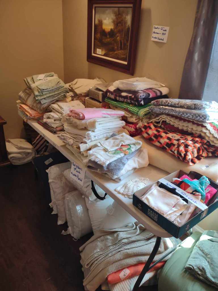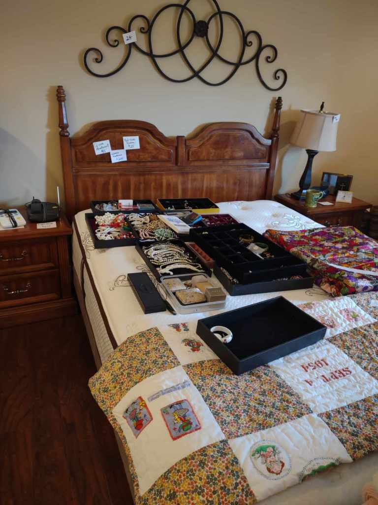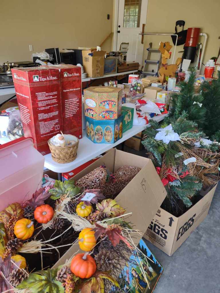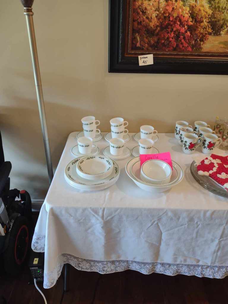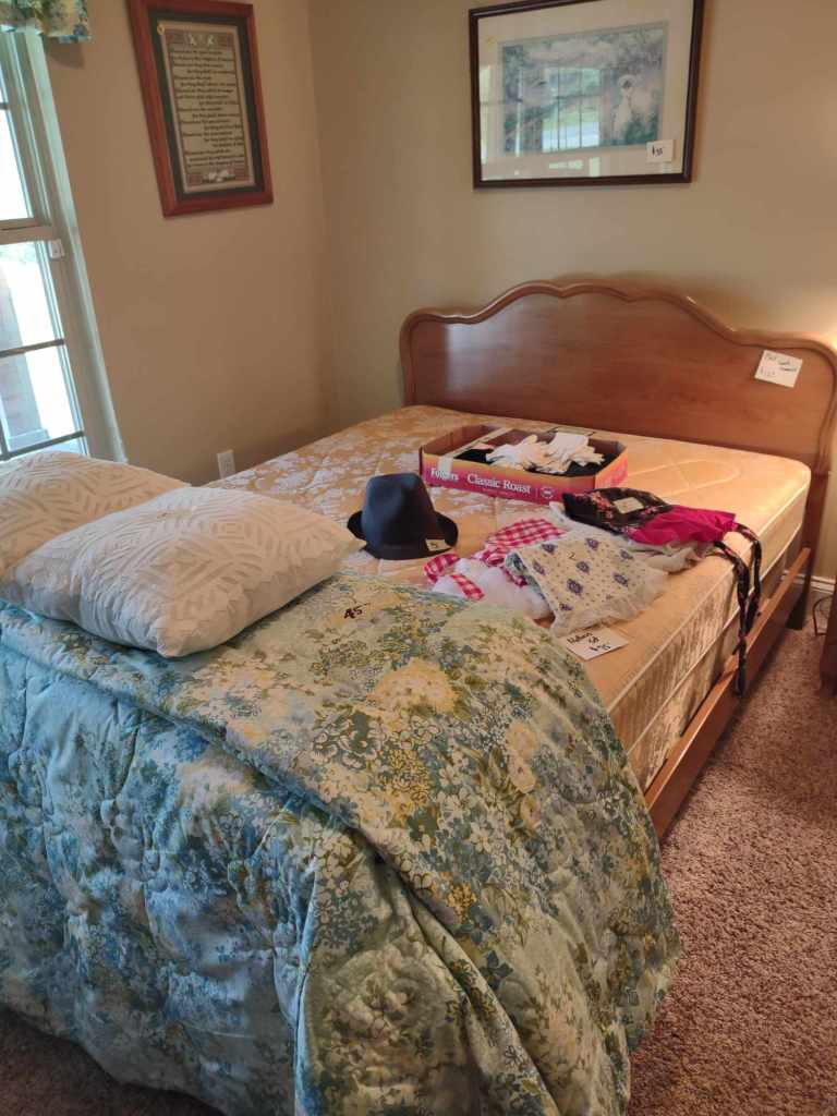 This is a cozy, neat and clean home! You will find matching lift chairs, Grey sofa, end tables and coffee table, Hisense large TV, Lazyboy Rocker recliner, Rugs, lamps, Corelle Christmas, and 2 other sets of Corelle, Lefton Christmas, Almost new Powered Wheelchair, Sunrise Medical equipment for Lymphoedema, Dining Room Table and chairs, Kitchen Table and chairs, China Cabinet, Princess House Crystal, Black Porch Rocking Chairs, Harmony House China, Corning Ware, lots of Whitehall glasses, Pyrex, Jadite, lots of nice small appliances , Ninja Air fryer, Air Fryer Toaster Oven combo, sets of Flatware, Good cookware, Cast iron, Vintage Captain Kangaroo cups, Bose Radio/CD player, Darling Vintage Cookie Jar, 2 glider rockers, bookcase, Tupperware, lots of plastic, cleaning supplies, small grill, French Provincial Bedroom Suite, full size mattress and box spring, linens, Alabama Memorabilia, and Prints, office supplies, Sofa, Erwin High School Yearbooks, CDs, DVDs, Queen Headboard, Night stands and triple dresser and chest, clothing for men and women, assorted tools, paint sprayer, small air compressor, Mitre Saw, Radio Flyer wagon, Vintage Singer sewing machine, Eden Pure heaters, Oreck Air purifier, Christmas, Costco ladder, gas heaters, toaster ovens, folding chairs and lots more! Come see us!