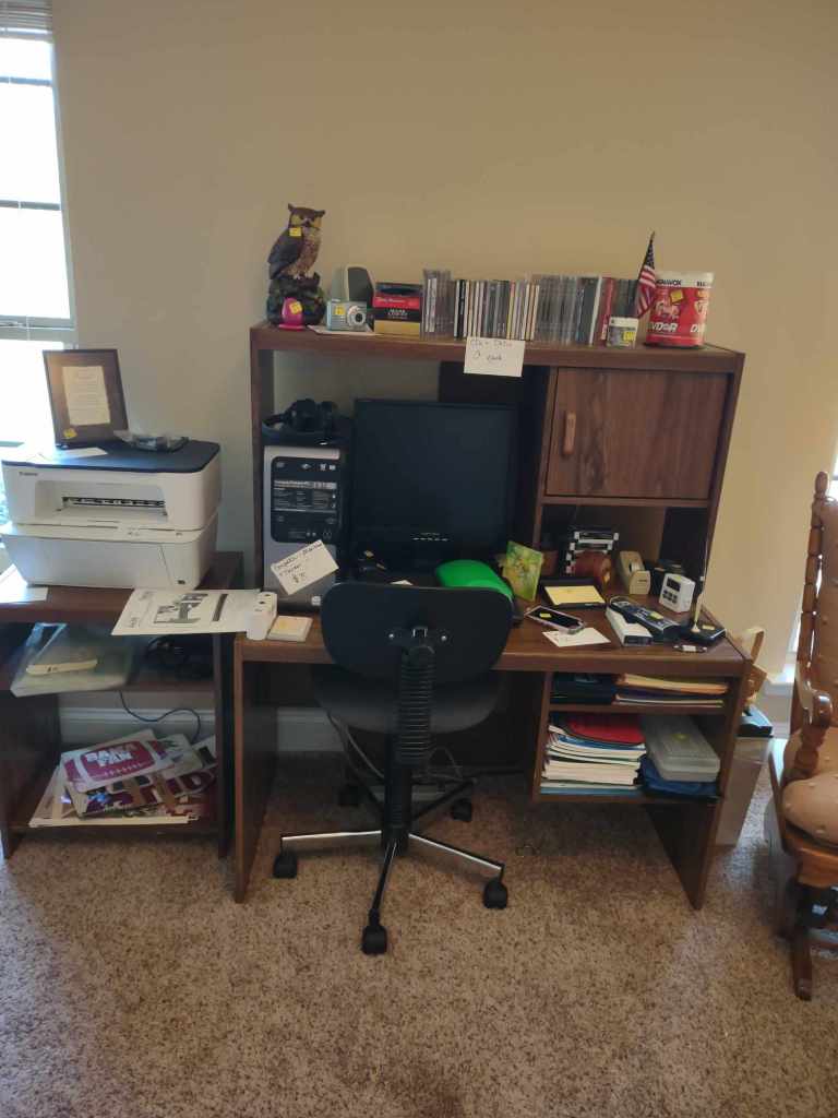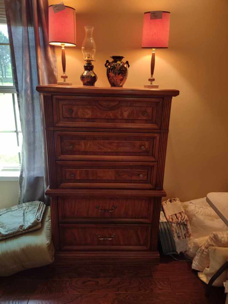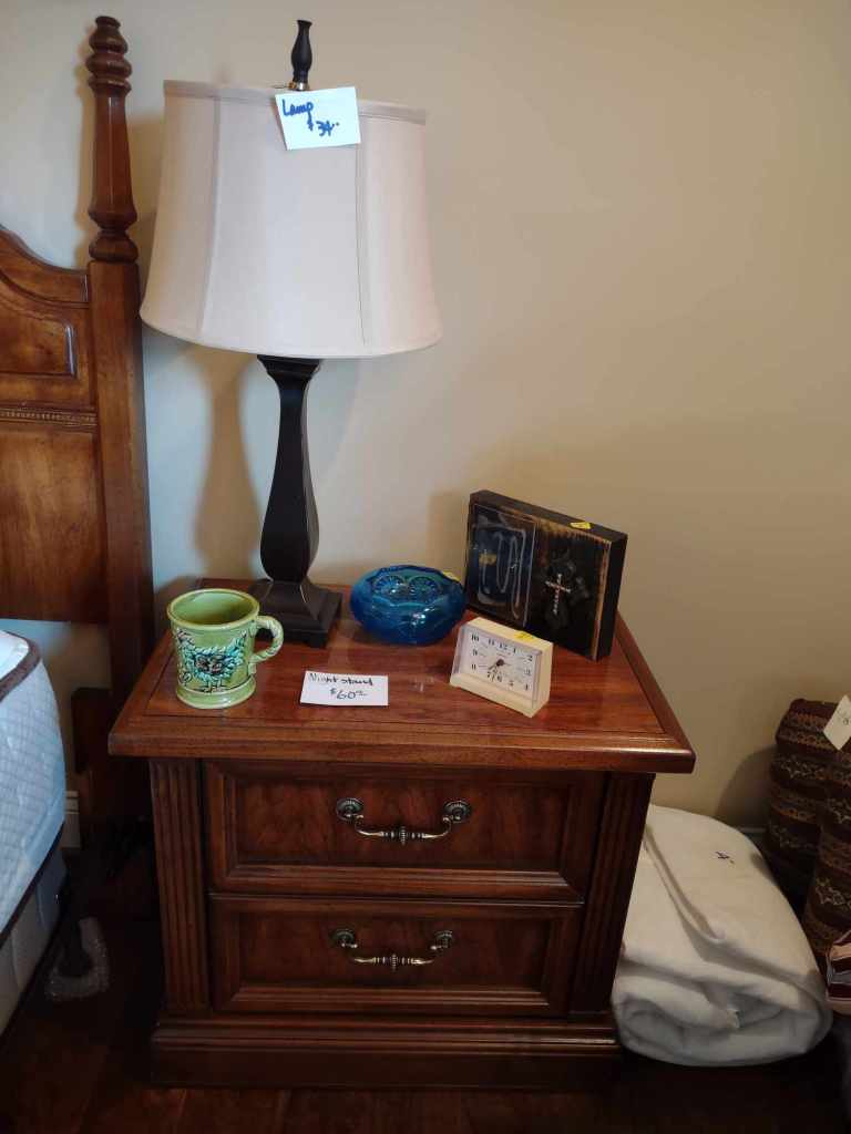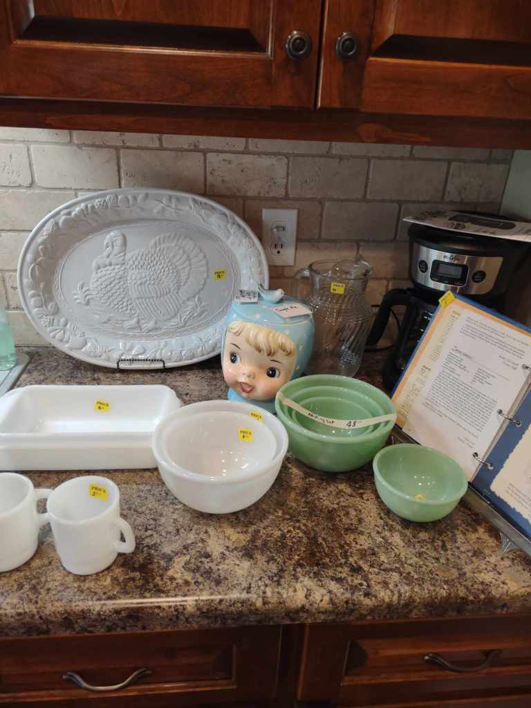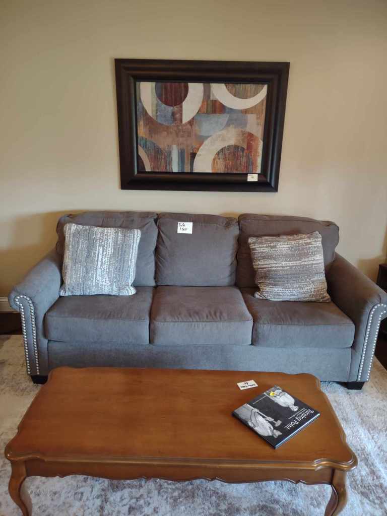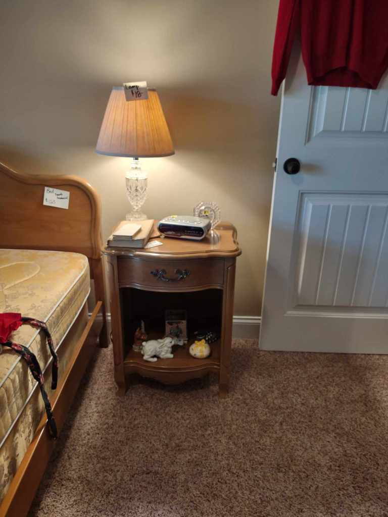 This is a cozy, neat and clean home! You will find matching lift chairs, Grey sofa, end tables and coffee table, Hisense large TV, Lazyboy Rocker recliner, Rugs, lamps, Corelle Christmas, and 2 other sets of Corelle, Lefton Christmas, Almost new Powered Wheelchair, Sunrise Medical equipment for Lymphoedema, Dining Room Table and chairs, Kitchen Table and chairs, China Cabinet, Princess House Crystal, Black Porch Rocking Chairs, Harmony House China, Corning Ware, lots of Whitehall glasses, Pyrex, Jadite, lots of nice small appliances , Ninja Air fryer, Air Fryer Toaster Oven combo, sets of Flatware, Good cookware, Cast iron, Vintage Captain Kangaroo cups, Bose Radio/CD player, Darling Vintage Cookie Jar, 2 glider rockers, bookcase, Tupperware, lots of plastic, cleaning supplies, small grill, French Provincial Bedroom Suite, full size mattress and box spring, linens, Alabama Memorabilia, and Prints, office supplies, Sofa, Erwin High School Yearbooks, CDs, DVDs, Queen Headboard, Night stands and triple dresser and chest, clothing for men and women, assorted tools, paint sprayer, small air compressor, Mitre Saw, Radio Flyer wagon, Vintage Singer sewing machine, Eden Pure heaters, Oreck Air purifier, Christmas, Costco ladder, gas heaters, toaster ovens, folding chairs and lots more! Come see us!