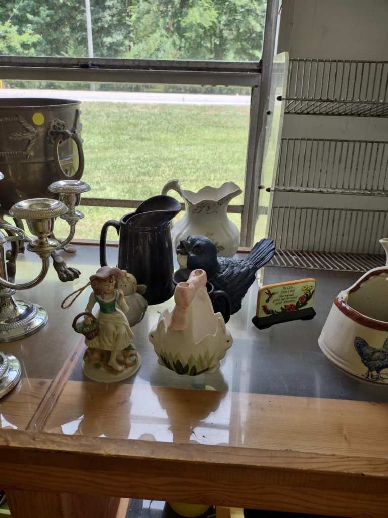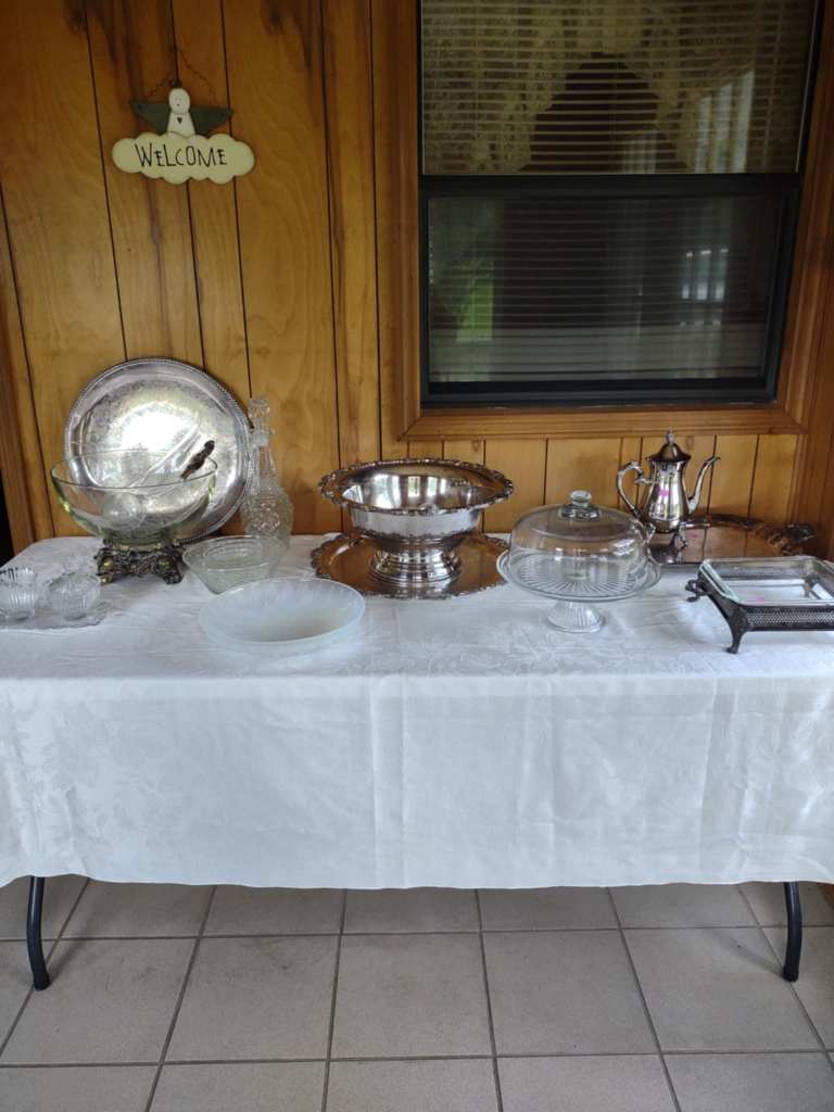 The Thomas family owned businesses in the Ashville area. Mrs. Thomas owned a Bakery and Mr. Thomas a service station for many years. You will find some things left from the Bakery a KitchenAid mixer, catering plates, cups, Punch Bowls, tablecloths, pans, and a large display cabinet. From the service station you’ll find tools, mostly small tools, signs, some tool boxes, and assorted equipment. In the house you’ll find Sofas, Loveseat, round Oak table and 4 chairs, 60s Table and 6 chairs and China Cabinet, 2 metal 60s tables 1 grey 1 red ..no chairs though, Assorted beds , chests, tables and lamps, leather recliner, Tvs, huge Salt and Pepper shaker collection, Blue Willow, silver plated Punch Bowls, Blue Carnival glass punch bowl, Wringer Washer that is in great shape, stocked kitchen, cast iron, Corning Ware, Microwave, Huskie riding mower Lt 4200…needs a battery and work, several push mowers, Troy built tiller, grinder, pressure canners, pretty Wardrobe, Armoire, Empire Style server, Christmas, Torpedo go cart, battery medical equipment, power chair that needs a battery and more!!