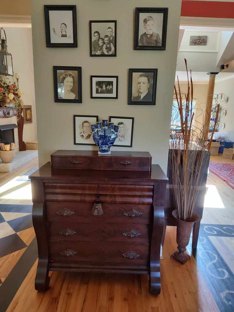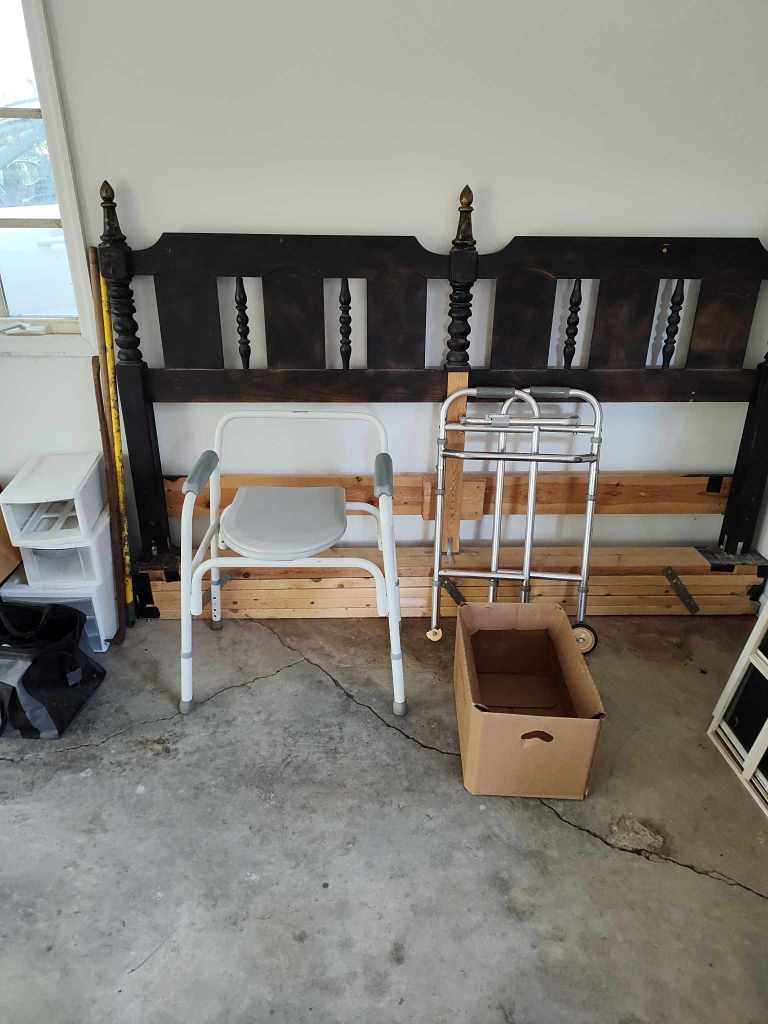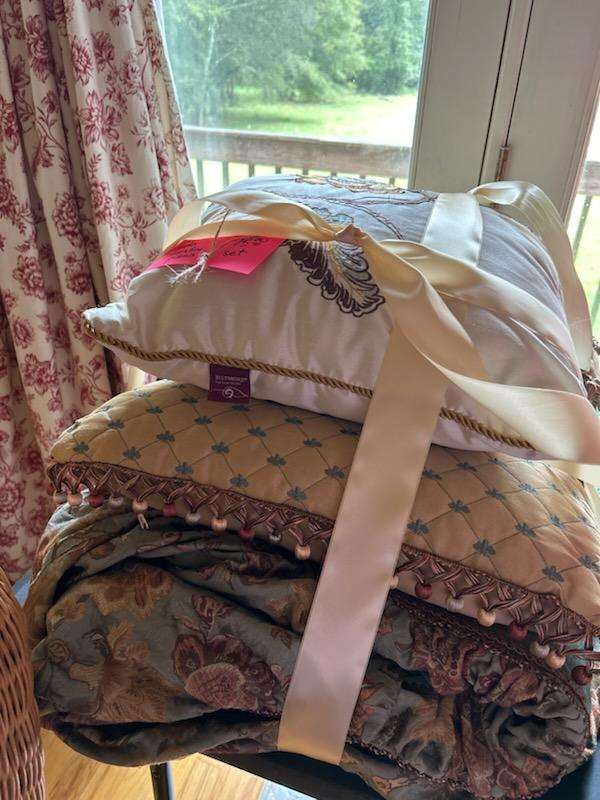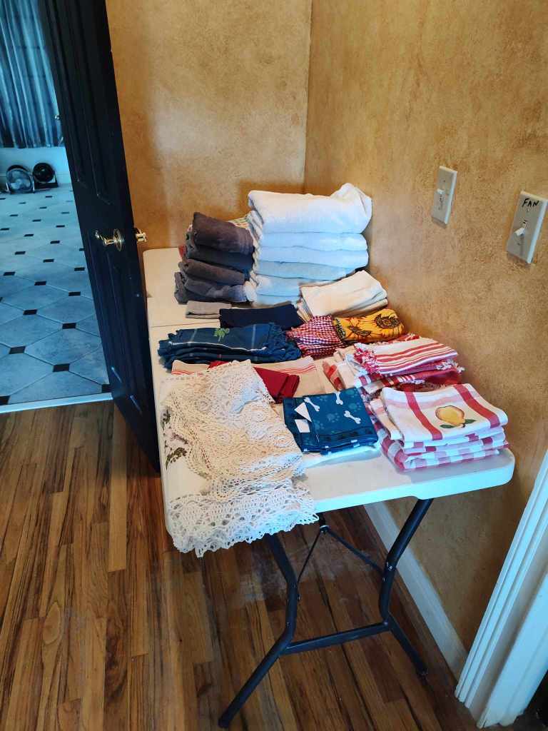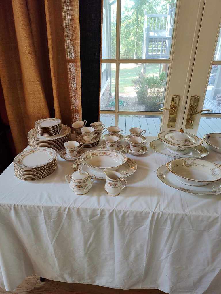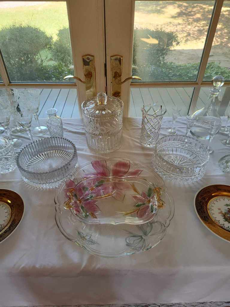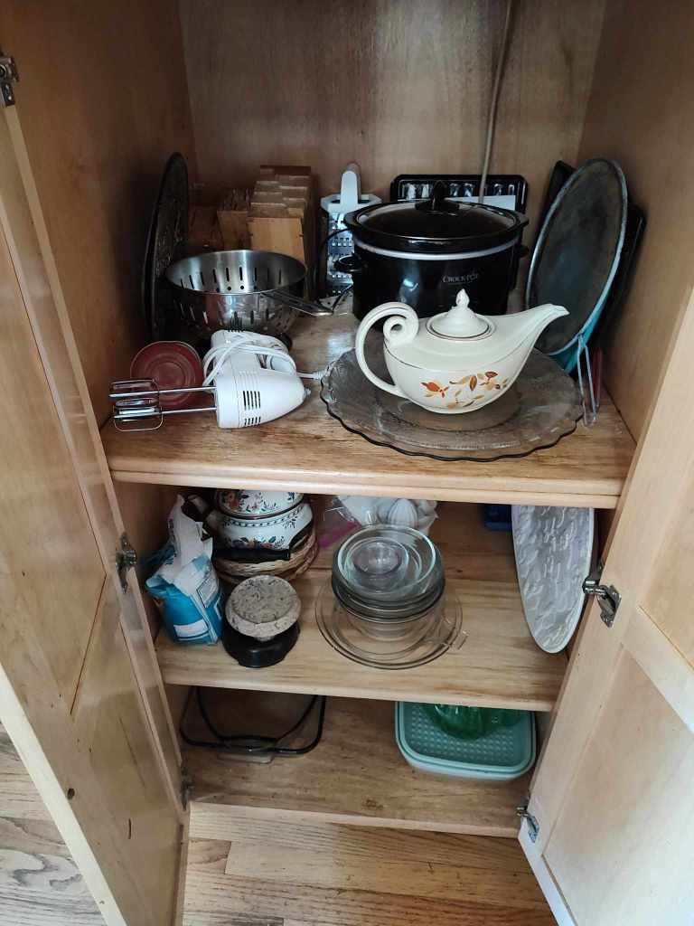 In this beautiful country home you will find many unusual and unique treasures. The Dining Room has a nice Table and 6 chairs, China Cabinet, Library Card Cabinet, Noritake Ivory Homage in excellent condition, Meito China, Etched Stemware, Empire Style Chest, lots of old Photos, interesting tables artwork lamps and rugs, Sofa, 2 Coffee tables, Japanese style Low table and stools, large assortment Pottery, Painted Screen, table and 4 Chairs, Bakers Rack, unusual storage and display cabinet, Buffett /server, Old Farm table and 4 chairs..really cute, Black bar stools, Stocked kitchen, good cookware, almost new Maytag Washer, Microwave, Caption Call phone, Fiestaware, Books, Linens, marble top chest, Shark Vacuum, Luggage, office supplies, Computer Desk, Monitor and keyboard, Printer, Metal 4 post bed, Mahogany bed and dresser, Antique baby or youth bed, lots of needlework, 3 Porch Rockers, Wrought Iron Furniture, Yard tools, Skillsaw, Small Air compressor, Bose CD/Radio, Christmas dishes and decor, 2 Large Desks, File Cabinets, Fabric, In the barn there’s some old doors and windows also wheel barrows and watering trough, wicker chair, King headboard.
