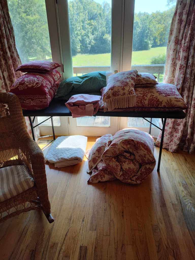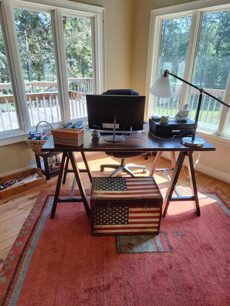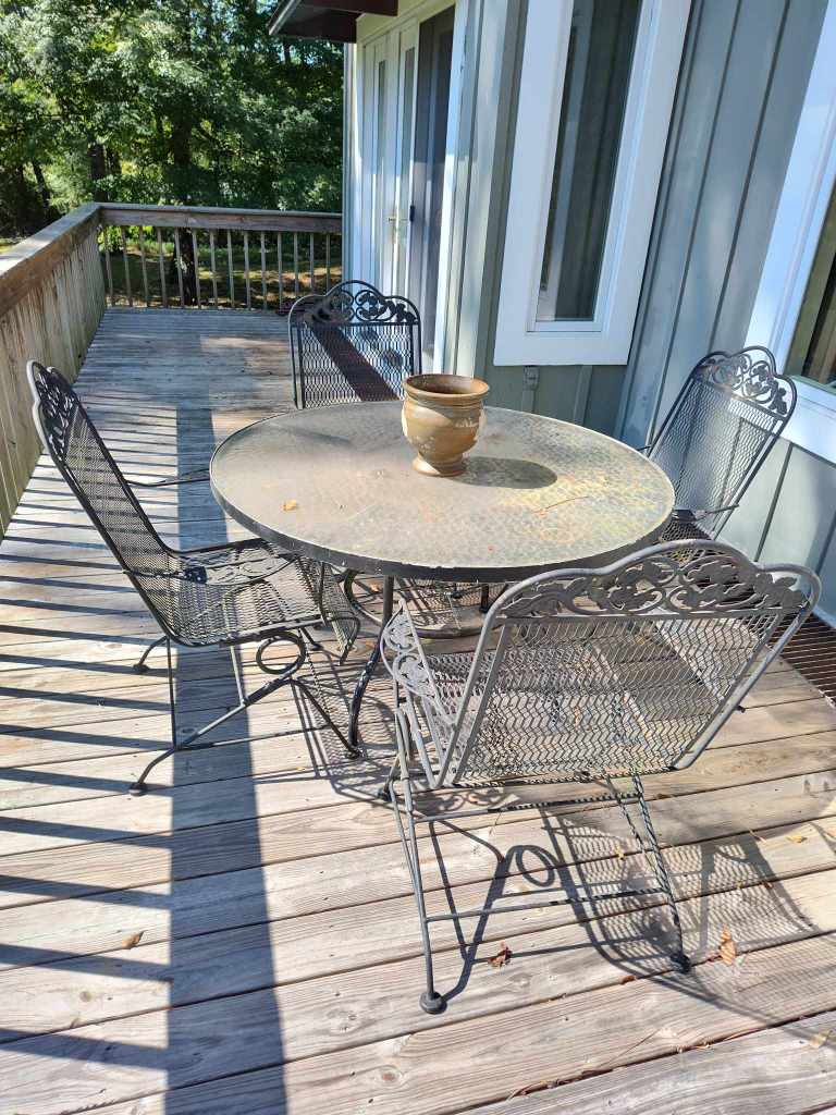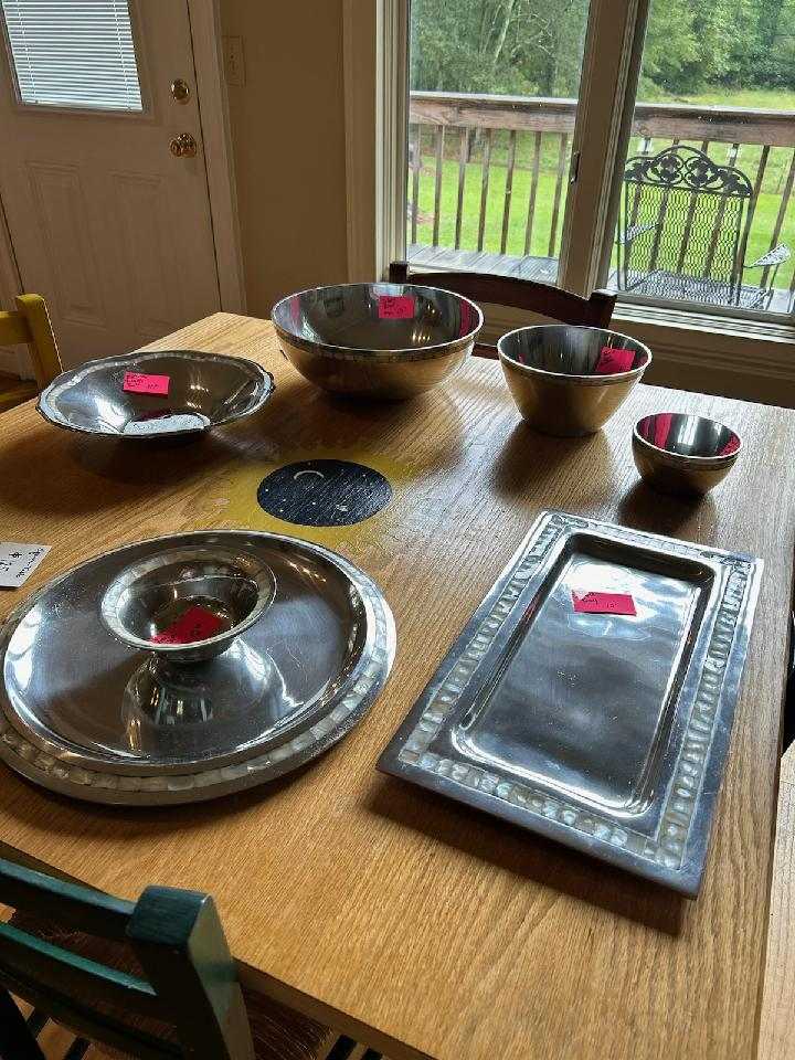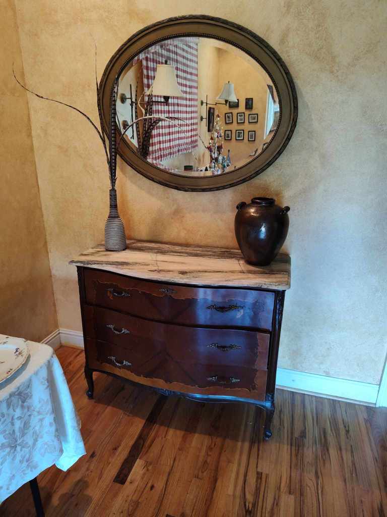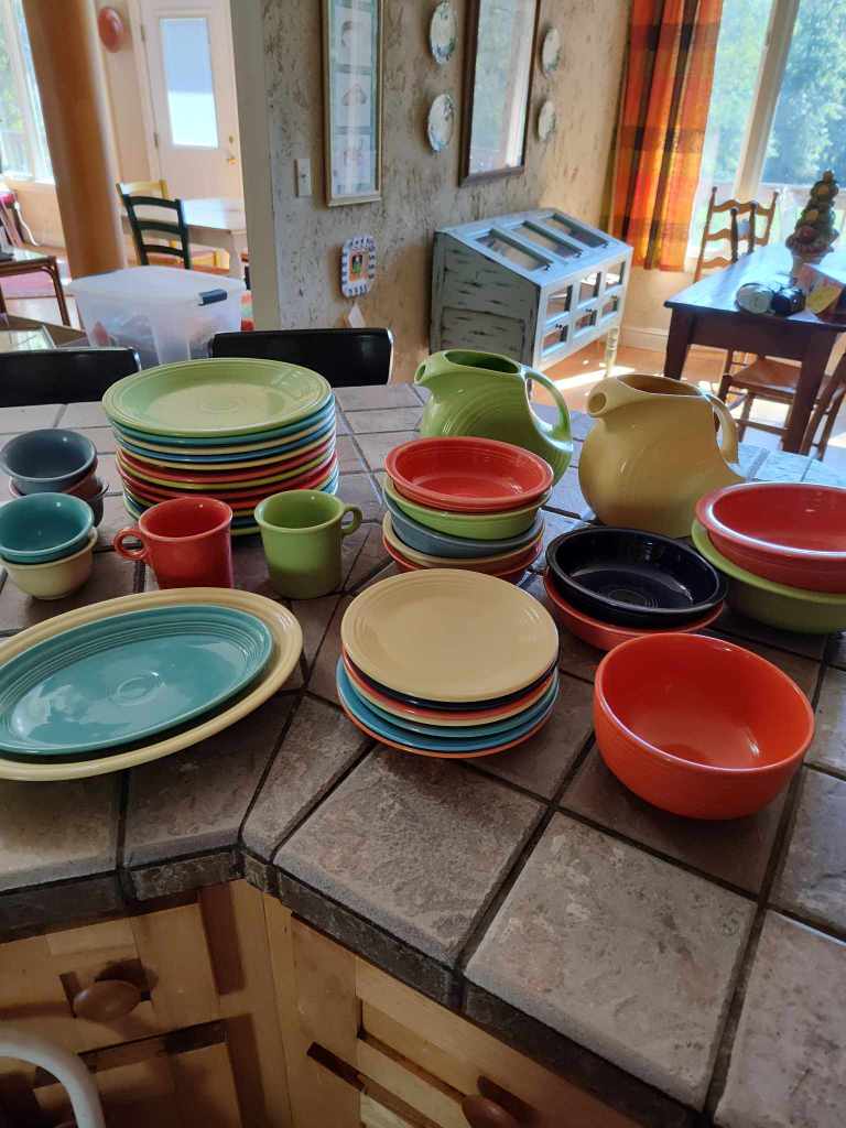 In this beautiful country home you will find many unusual and unique treasures. The Dining Room has a nice Table and 6 chairs, China Cabinet, Library Card Cabinet, Noritake Ivory Homage in excellent condition, Meito China, Etched Stemware, Empire Style Chest, lots of old Photos, interesting tables artwork lamps and rugs, Sofa, 2 Coffee tables, Japanese style Low table and stools, large assortment Pottery, Painted Screen, table and 4 Chairs, Bakers Rack, unusual storage and display cabinet, Buffett /server, Old Farm table and 4 chairs..really cute, Black bar stools, Stocked kitchen, good cookware, almost new Maytag Washer, Microwave, Caption Call phone, Fiestaware, Books, Linens, marble top chest, Shark Vacuum, Luggage, office supplies, Computer Desk, Monitor and keyboard, Printer, Metal 4 post bed, Mahogany bed and dresser, Antique baby or youth bed, lots of needlework, 3 Porch Rockers, Wrought Iron Furniture, Yard tools, Skillsaw, Small Air compressor, Bose CD/Radio, Christmas dishes and decor, 2 Large Desks, File Cabinets, Fabric, In the barn there’s some old doors and windows also wheel barrows and watering trough, wicker chair, King headboard.