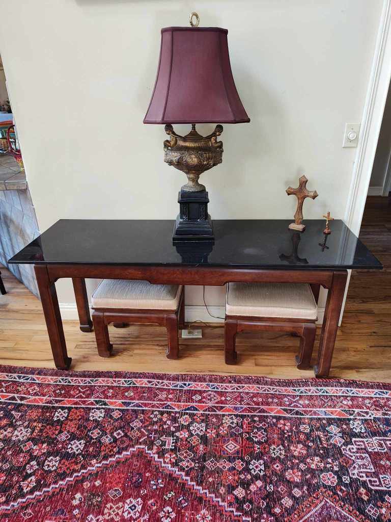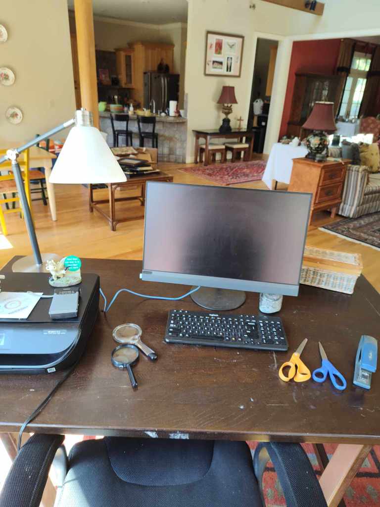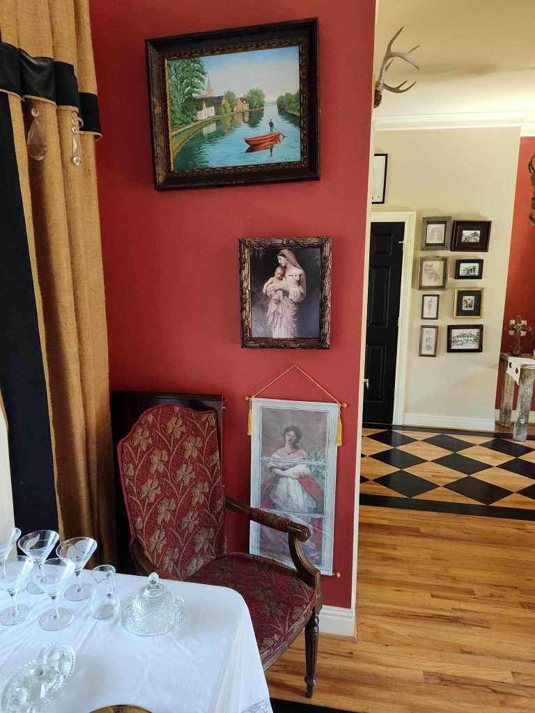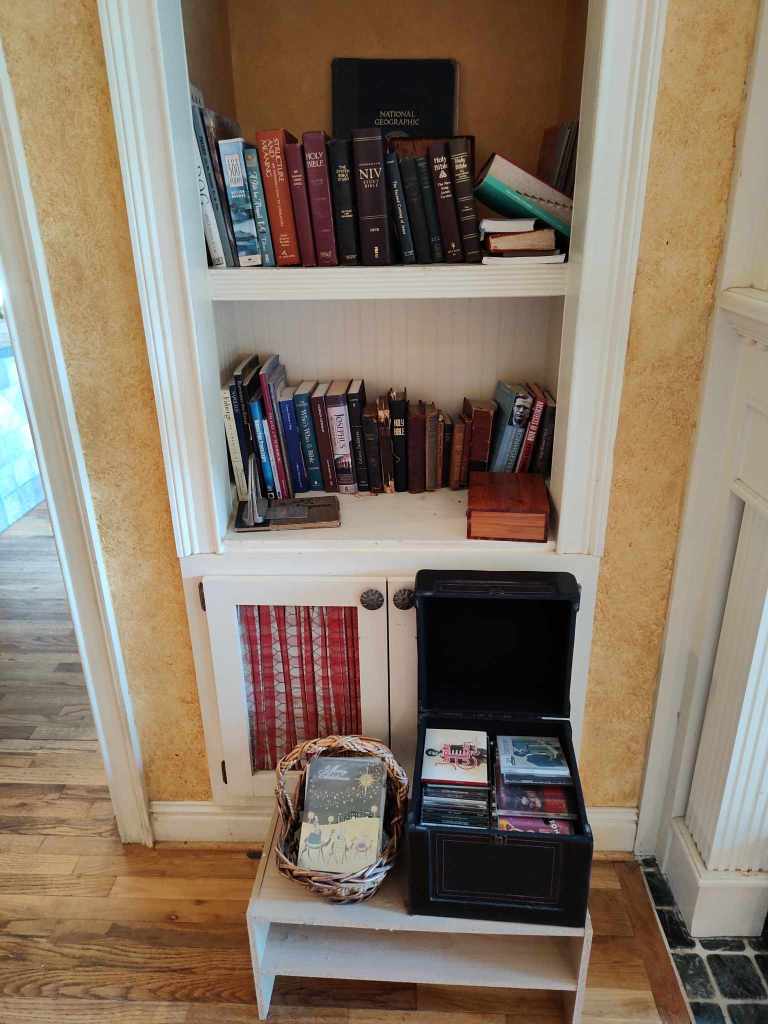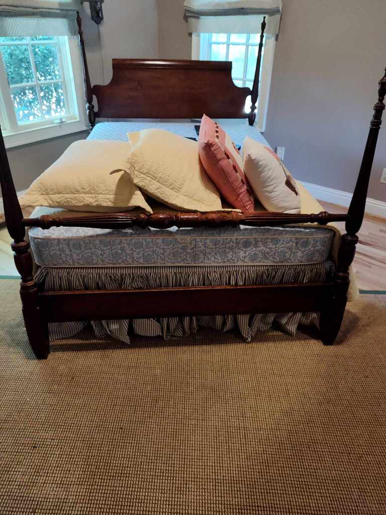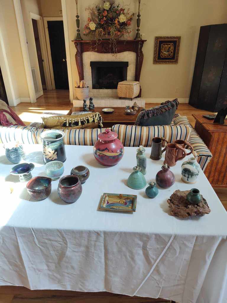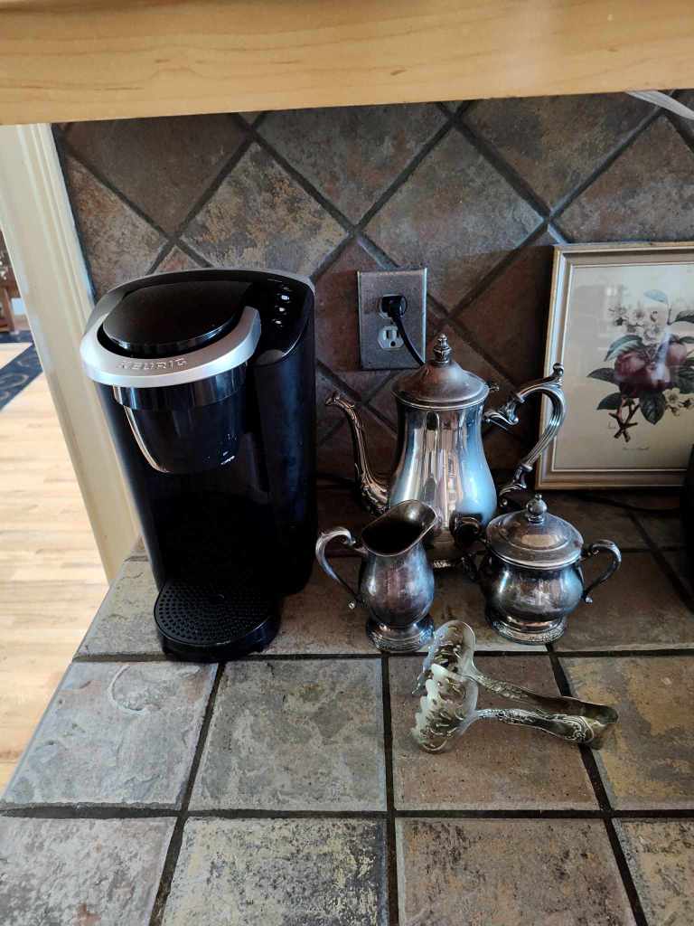 In this beautiful country home you will find many unusual and unique treasures. The Dining Room has a nice Table and 6 chairs, China Cabinet, Library Card Cabinet, Noritake Ivory Homage in excellent condition, Meito China, Etched Stemware, Empire Style Chest, lots of old Photos, interesting tables artwork lamps and rugs, Sofa, 2 Coffee tables, Japanese style Low table and stools, large assortment Pottery, Painted Screen, table and 4 Chairs, Bakers Rack, unusual storage and display cabinet, Buffett /server, Old Farm table and 4 chairs..really cute, Black bar stools, Stocked kitchen, good cookware, almost new Maytag Washer, Microwave, Caption Call phone, Fiestaware, Books, Linens, marble top chest, Shark Vacuum, Luggage, office supplies, Computer Desk, Monitor and keyboard, Printer, Metal 4 post bed, Mahogany bed and dresser, Antique baby or youth bed, lots of needlework, 3 Porch Rockers, Wrought Iron Furniture, Yard tools, Skillsaw, Small Air compressor, Bose CD/Radio, Christmas dishes and decor, 2 Large Desks, File Cabinets, Fabric, In the barn there’s some old doors and windows also wheel barrows and watering trough, wicker chair, King headboard.