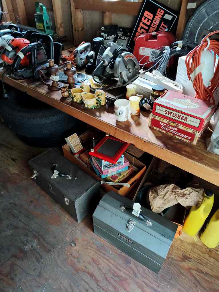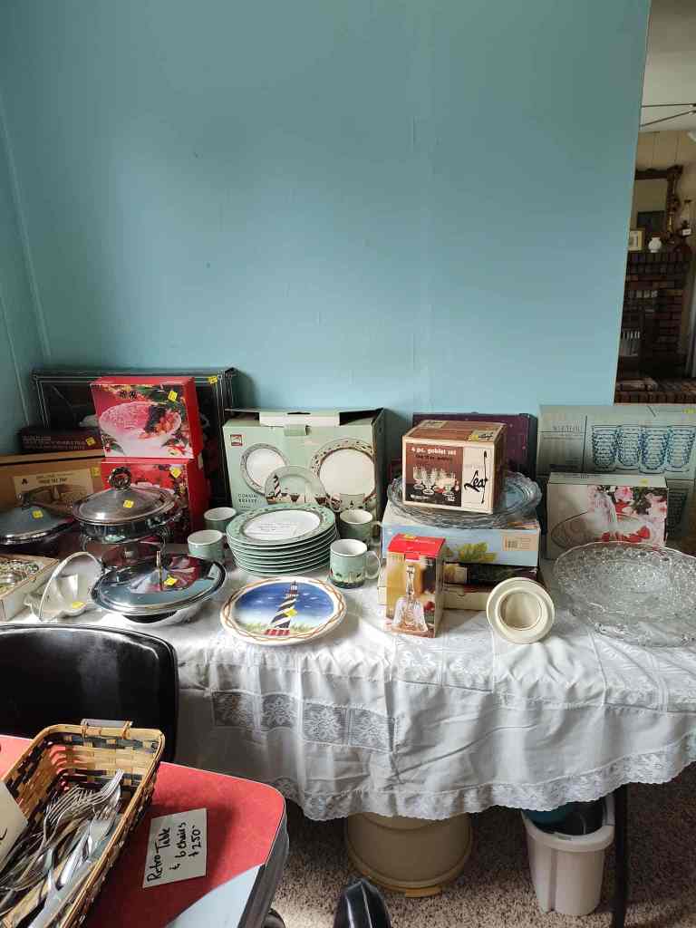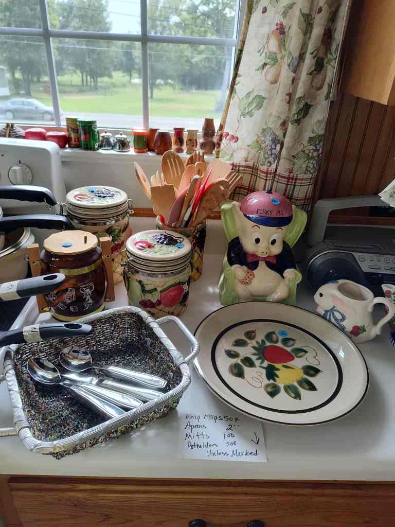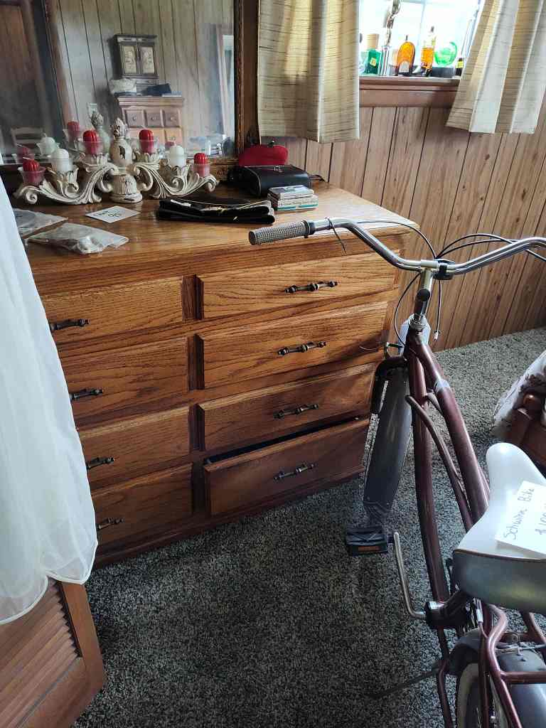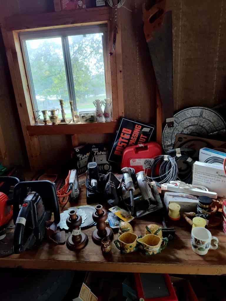 In this home you will find an assortment of good items including a stocked kitchen with Corning Ware, Pioneer Woman, Temptations, Mikasa Christmas Story, Nikko Winter Wonderland, green Boopie glasses, good cookware, Cast Iron, Brown Hull, Toaster Oven, White Fridge, Microwave, Schwinn Mens Bike, Full and Queen size beds, Cedar Chest, standing Cedar 2 door chests, 5 drawer cedar chest, Maple Bed and chest and night stand, Lingerie Chest, Jewelry Chest, Porch rockers, Fitz and Floyd, old AHS yearbooks, Glider Rocker, Churn, portable Sewing machine, Metal Square tub, portable electric wench, push mower, all kinds of tools..a lot of Craftsman including a gas pole saw, a 7.8 HSP 4200 watt Generator, assorted hedge clippers, Multi Purpose Air compressor, Black and Decker High performance Blower/Vac, old Christmas, 1972 Buick Skylark and much more! Come see us!!
