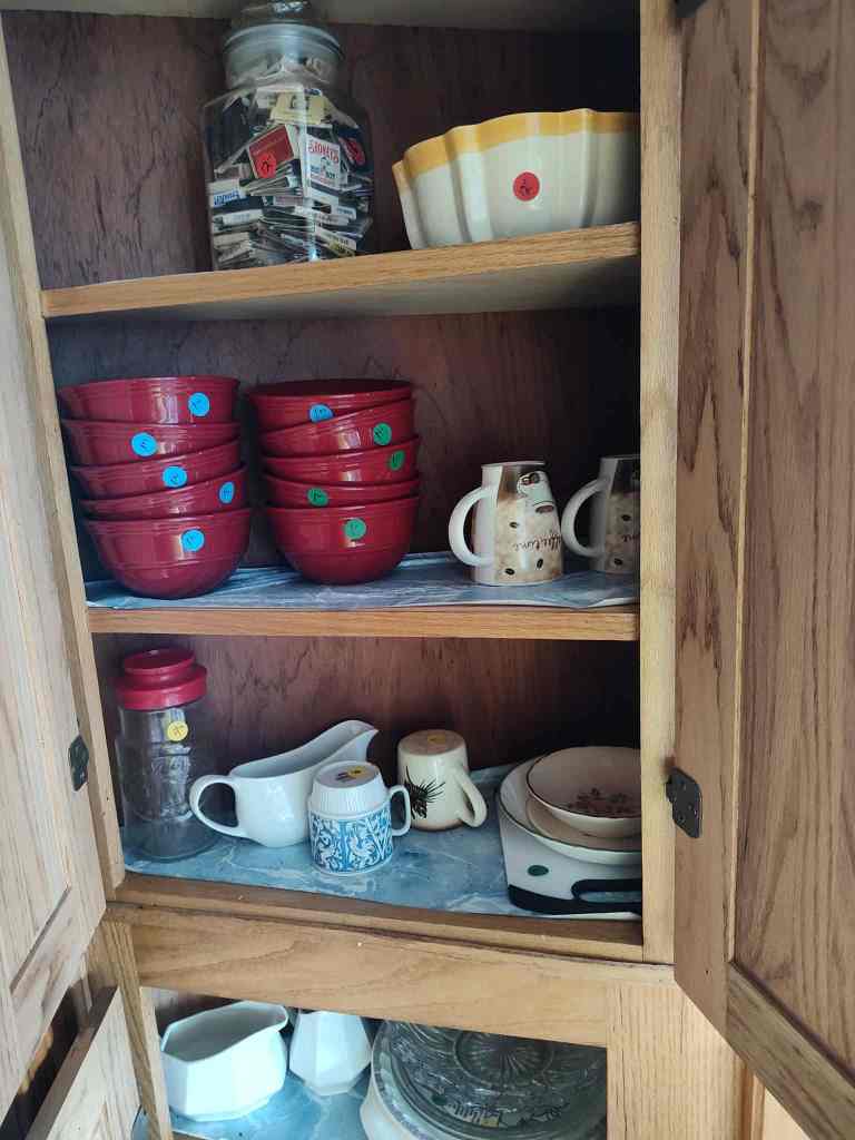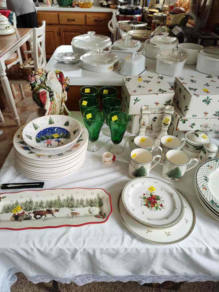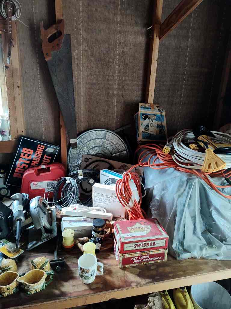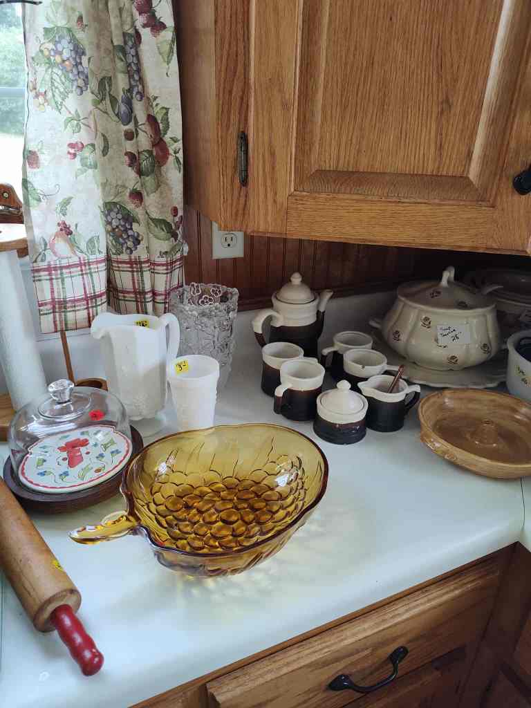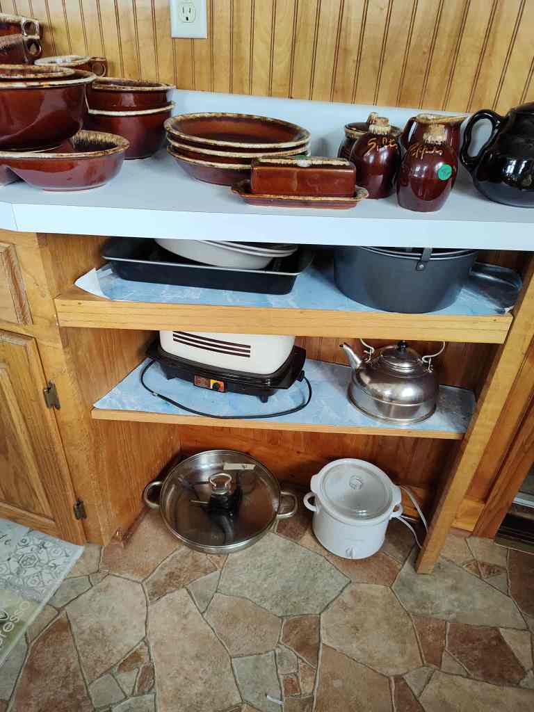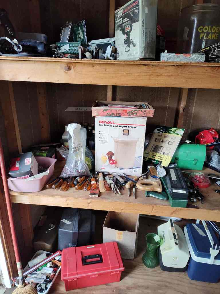In this home you will find an assortment of good items including a stocked kitchen with Corning Ware, Pioneer Woman, Temptations, Mikasa Christmas Story, Nikko Winter Wonderland, green Boopie glasses, good cookware, Cast Iron, Brown Hull, Toaster Oven, White Fridge, Microwave, Schwinn Mens Bike, Full and Queen size beds, Cedar Chest, standing Cedar 2 door chests, 5 drawer cedar chest, Maple Bed and chest and night stand, Lingerie Chest, Jewelry Chest, Porch rockers, Fitz and Floyd, old AHS yearbooks, Glider Rocker, Churn, portable Sewing machine, Metal Square tub, portable electric wench, push mower, all kinds of tools..a lot of Craftsman including a gas pole saw, a 7.8 HSP 4200 watt Generator, assorted hedge clippers, Multi Purpose Air compressor, Black and Decker High performance Blower/Vac, old Christmas, 1972 Buick Skylark and much more! Come see us!!