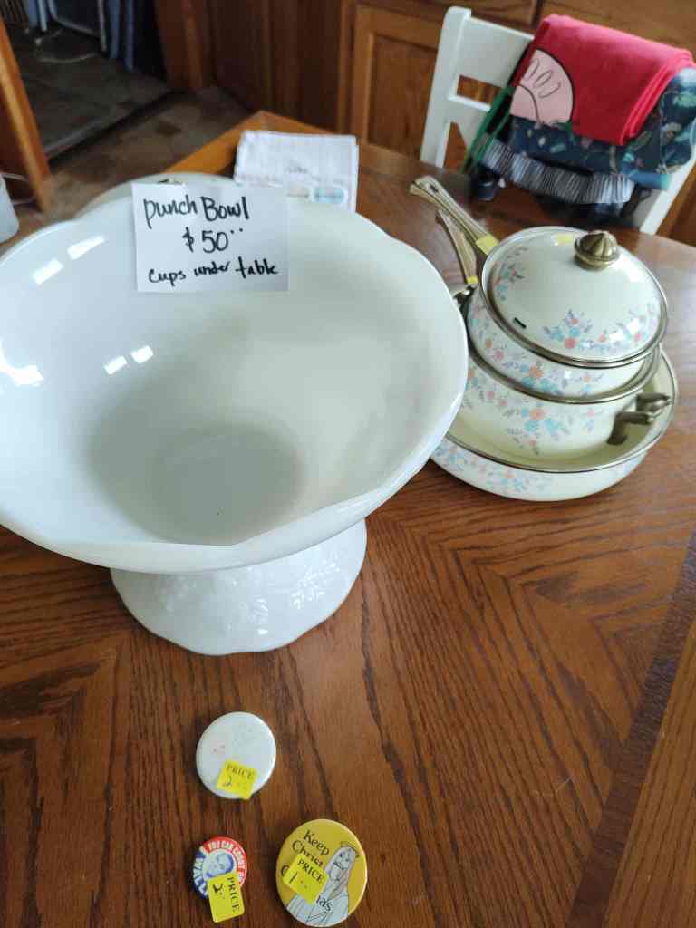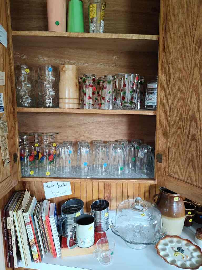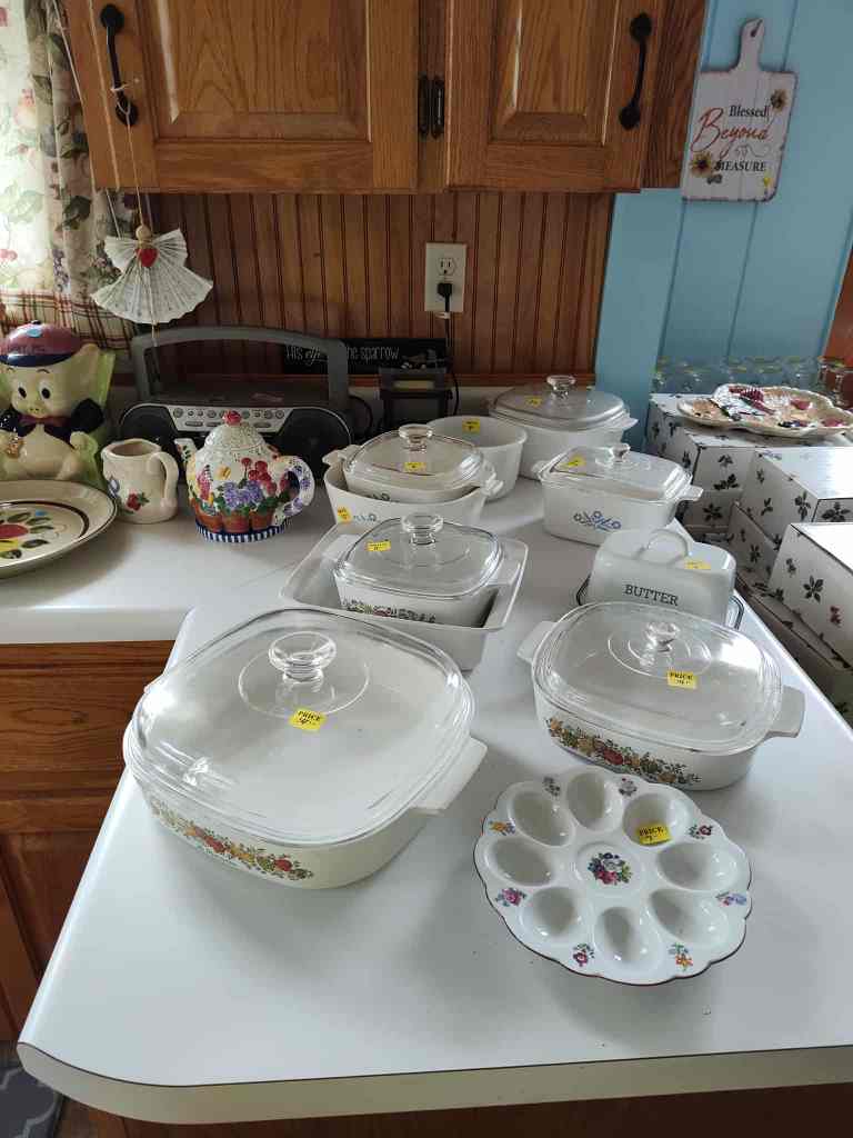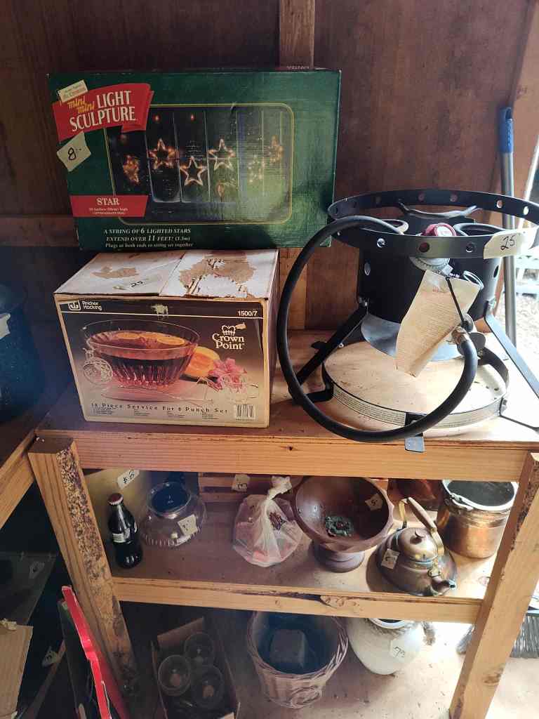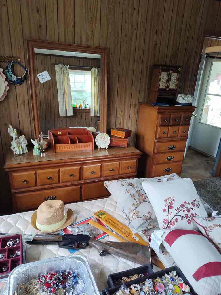 In this home you will find an assortment of good items including a stocked kitchen with Corning Ware, Pioneer Woman, Temptations, Mikasa Christmas Story, Nikko Winter Wonderland, green Boopie glasses, good cookware, Cast Iron, Brown Hull, Toaster Oven, White Fridge, Microwave, Schwinn Mens Bike, Full and Queen size beds, Cedar Chest, standing Cedar 2 door chests, 5 drawer cedar chest, Maple Bed and chest and night stand, Lingerie Chest, Jewelry Chest, Porch rockers, Fitz and Floyd, old AHS yearbooks, Glider Rocker, Churn, portable Sewing machine, Metal Square tub, portable electric wench, push mower, all kinds of tools..a lot of Craftsman including a gas pole saw, a 7.8 HSP 4200 watt Generator, assorted hedge clippers, Multi Purpose Air compressor, Black and Decker High performance Blower/Vac, old Christmas, 1972 Buick Skylark and much more! Come see us!!