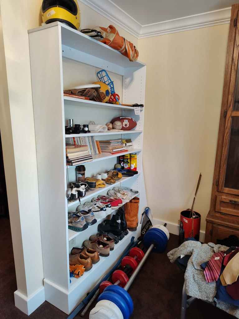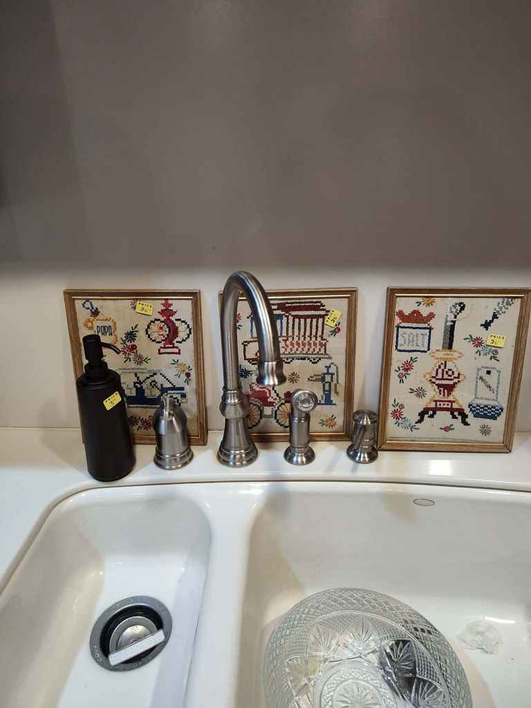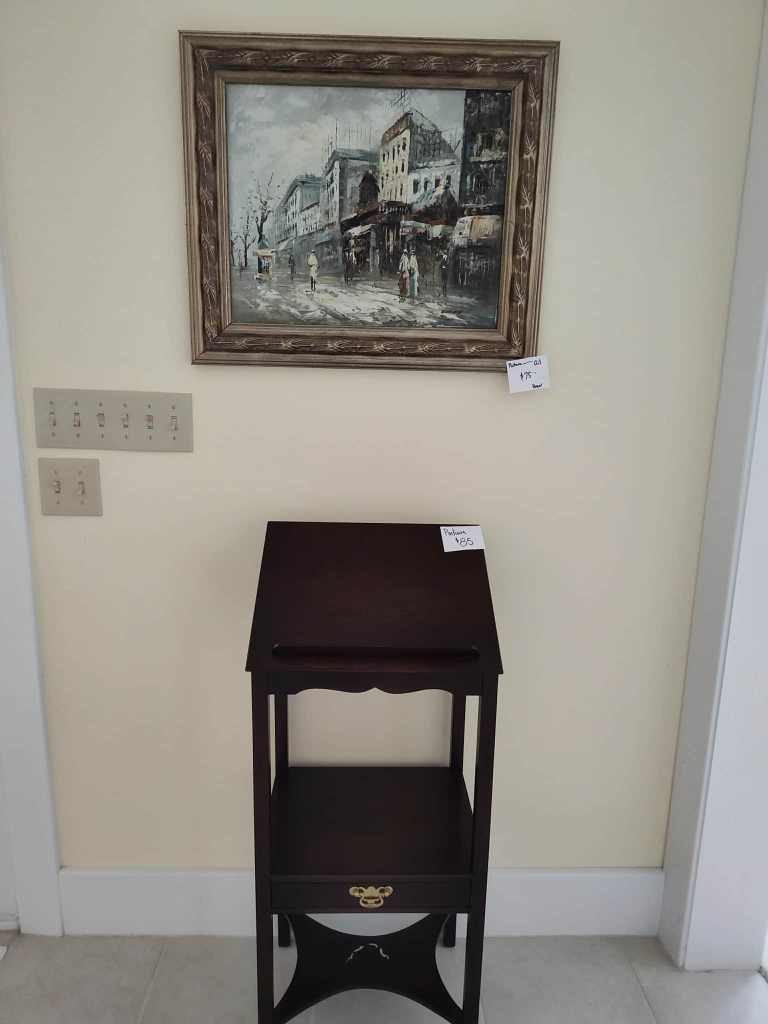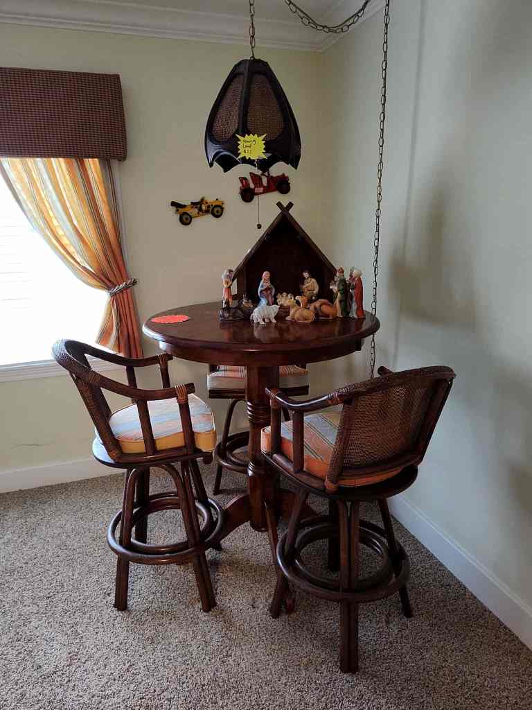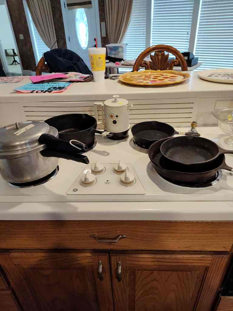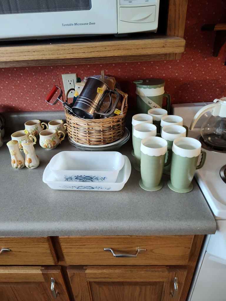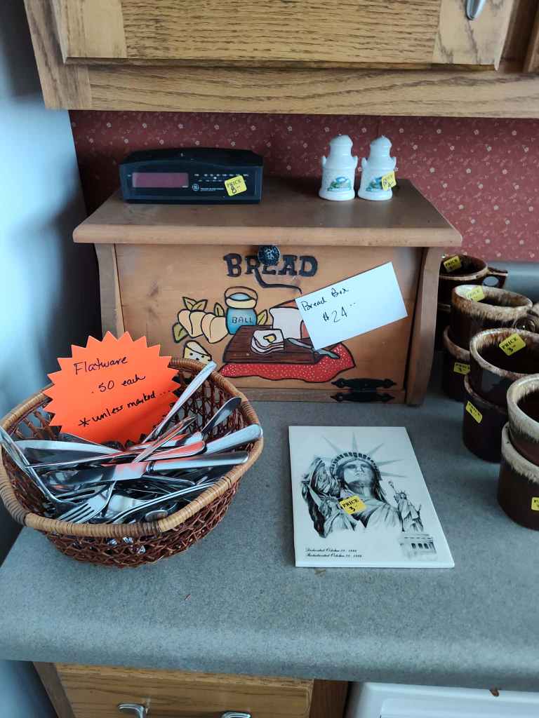 Chandelier, Porter/Cable 6 gal air compressor, Black and Decker battery chain saw, hand tools, Kirby Vacuum, small pressure washer, DeWalt mitre saw and DeWalt table, several shop vacs, small vice, L-Tec welding and cutting system, grass/leaf sweeper, assorted small hand tools, metal sawhorses, 4ft Werner ladder ..6ft Werner ladder, rolling metal storage cabinet, left over trim and wood.. leftover tile and tile trim pieces, 32 ft extension ladder, several other ladders, Mid Century modern White leather sofa..chair and ottoman, 2 matching leather chairs and an ottoman, large metal and glass table, end tables, assorted lamps, combination stereo and TV, overstuffed sofa, leather recliner, antique spinning wheel, Nice pool table, pub table and 3 chairs, art work, Christmas, Bell and Howell old projectors, vintage hanging lamps, golf clubs, lots of treasures, yellow sofa and chair, padded headboard and bedding, Matching Gone with the Wind lamps, brass and glass end table, glass topped end tables, Mirrors, sewing chest, striped chair and ottoman, chest, vintage games and toys, vintage nursery items,vintage wrought iron table and 6 chairs, Flexsteel sofa table, wooden ducks, vintage gold sofa, French Provincial end tables, wooden carved horse, vintage kitchen items, Brown Hull dishes, 70’s Canister set, fruit pitcher and glasses, Pyrex, Bedroom Suite, vintage posters…Farah Faucett..Phonzie..etc..,Quilts, Auburn memorabilia, Telescope, several Nativity sets, luggage, desk..
