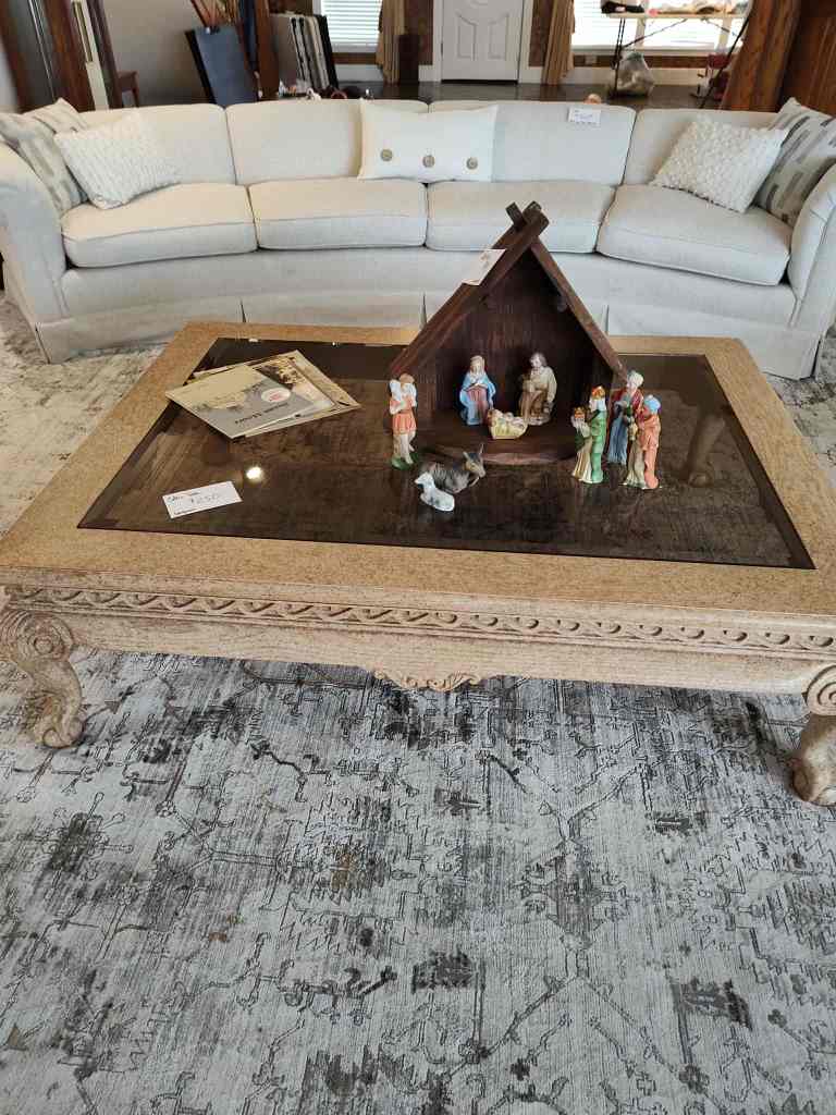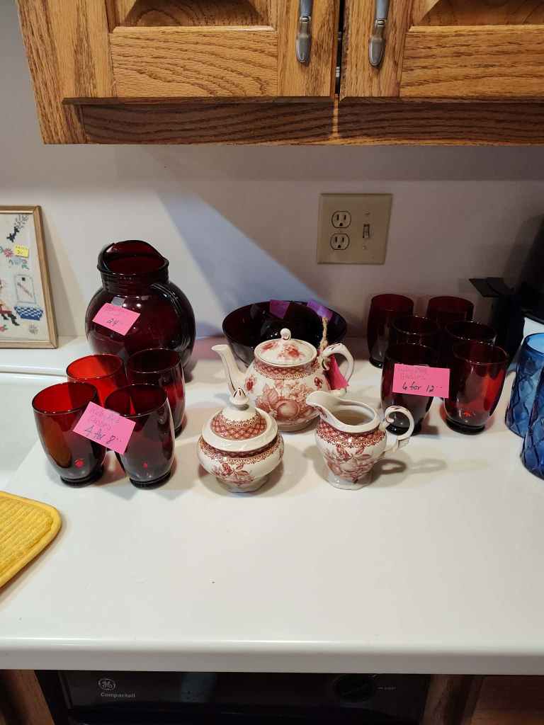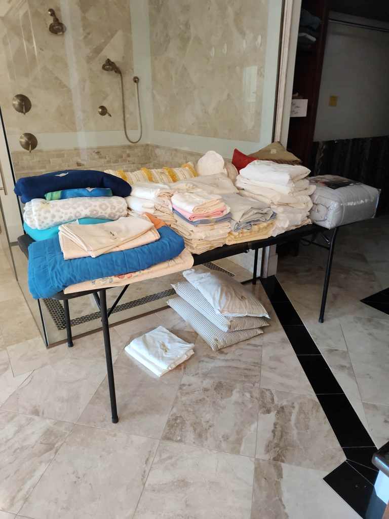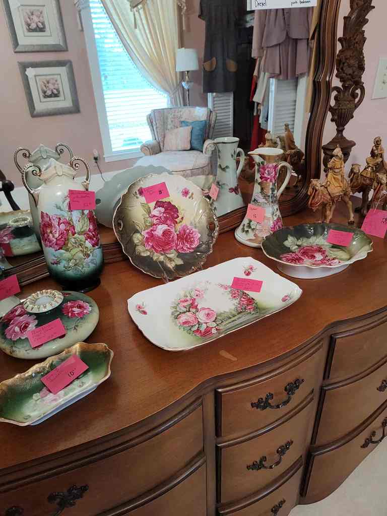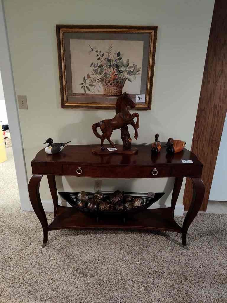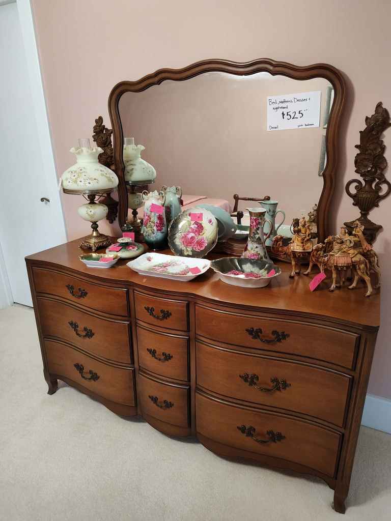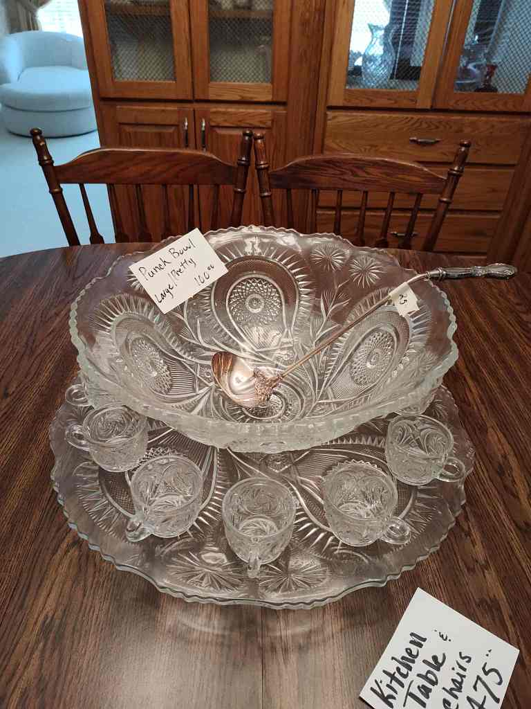 Oh my goodness…what beautiful home..in this fabulous.. approximately 7000 sq ft. home you will find a treasure trove of high end furniture..some custom made from Birmingham Wholesale…and other quality makers including a 13 ft curvy sofa in a beautiful neutral fabric, a black leather French Bergere’ Chair and ottoman, custom chaise in a neutral fabric, very large coffee table, pair of matching chairs in animal print, chair and ottoman in a neutral fabric, large TV and surround sound, beautiful rugs, lamps and assorted tables, Red French Country sofa and chair, end tables, podium, standing globe, Silver plate serving pieces, Hutschen Germany service for 8, Fostoria American plates, cups saucers, stems and serving pieces, Red Coin glass, large Silverplate Punch bowl and cups, large Punch bowl with under plate and cups, Silverplate ladle, old cameras, Pair of Victorian chairs, Antique Waterfall bedroom suite, nice drapes, Porcelain Rose pieces, Drexel French Provincial Bed ..dresser and night stand, beautiful bedding, floral chair and ottoman, nice bench, Vintage clothing.. adult and children, Lenox Winter Garden..service for 6, small appliances, cast iron, Vitromaster service for 8, Johnson Brothers Portland(blue), blue serving pieces and glassware, Lenox Christmas serving pieces, Ruby red Pitcher and glasses..fruit bowl, Vintage needlework, Forrest green Punch bowl and cups, Vintage Egg Nog bowl, Holiday serving pieces, Howard Miller Grandfather Clock, twin bed ..frame and mattress and box springs, Brass serving cart, Large bust, assorted hats, Singer vintage 99K portable sewing Machine, fabric, patterns, assorted trim, Whirlpool washer and dryer, large..desk style wooden file cabinet, Fax machine, copier and printer cabinet,